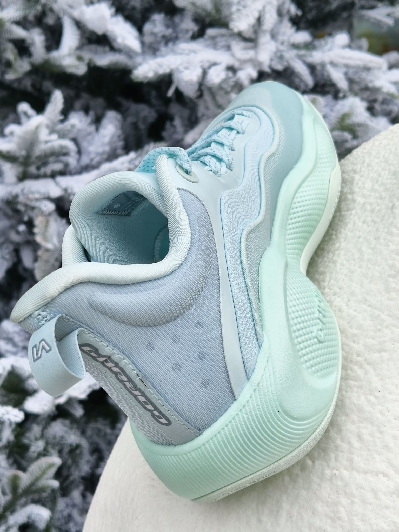 本赛季戈登的表现也是蛮不错的,同样AG系列的最新一弹签名鞋AG6也是如约而至,据说本人也参与了设计 鞋楦稍微偏宽,宽脚试穿包裹到位,全掌c_flow回弹足,侧墙水晶支撑到位,值得一提的是这个水晶支撑外观真的有一种玉石的既视感,相当清新漂亮