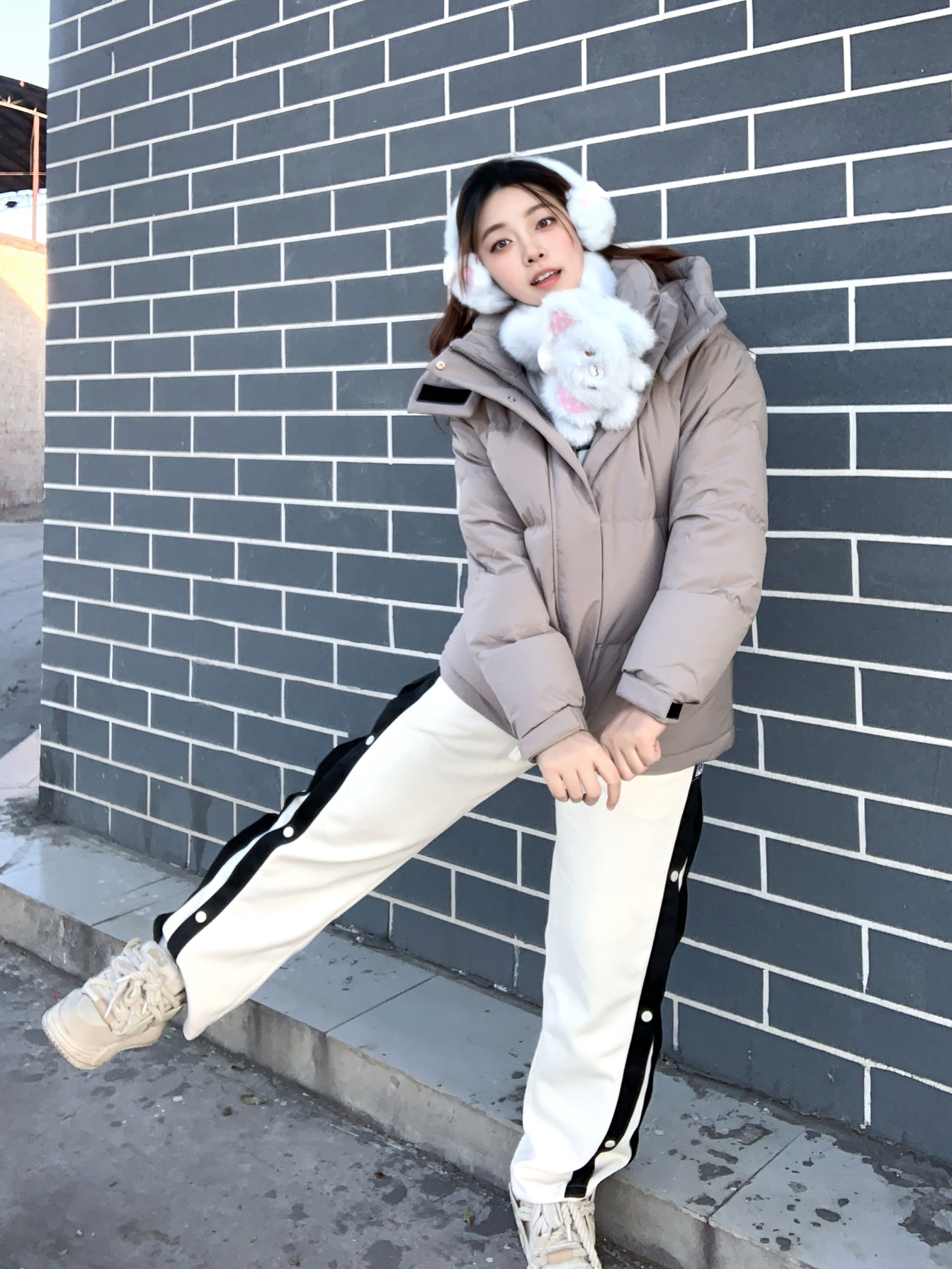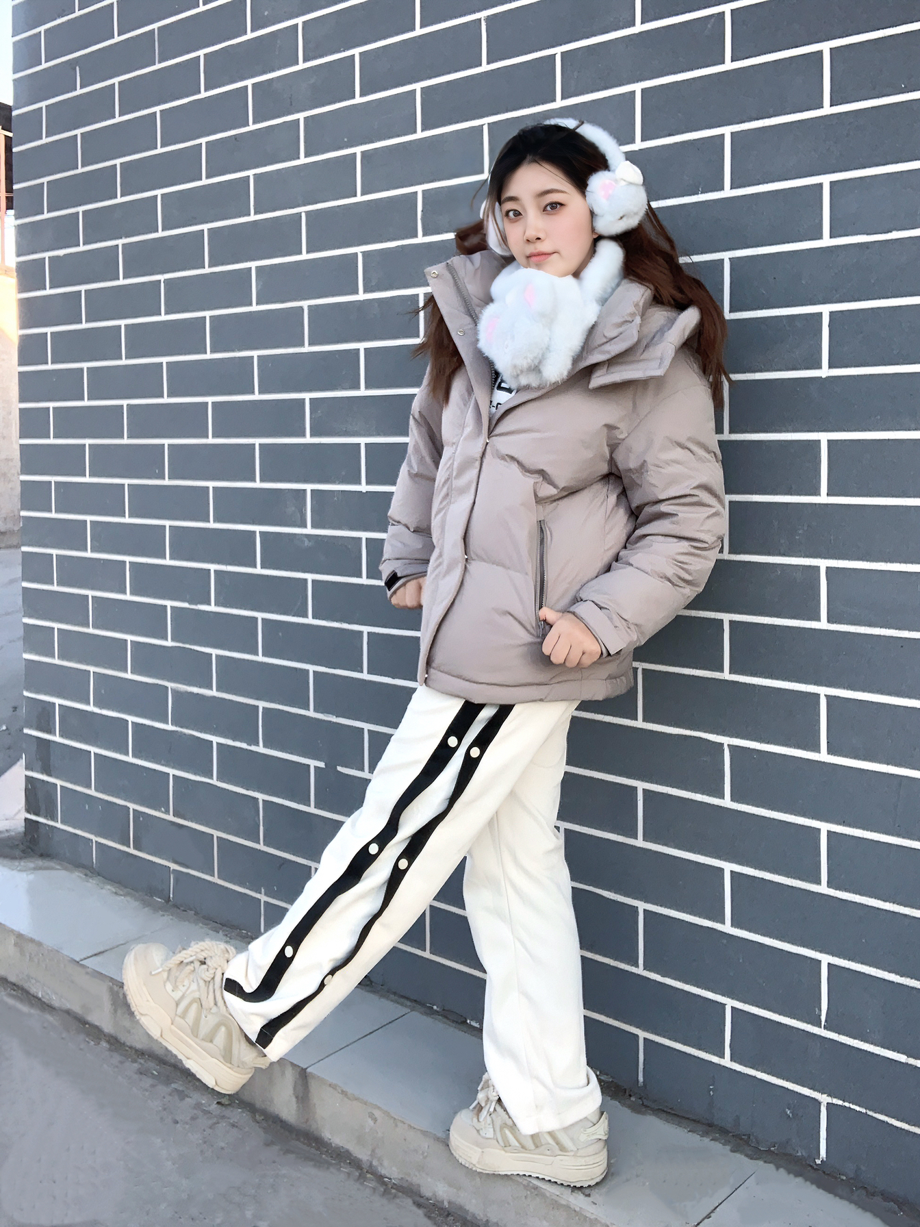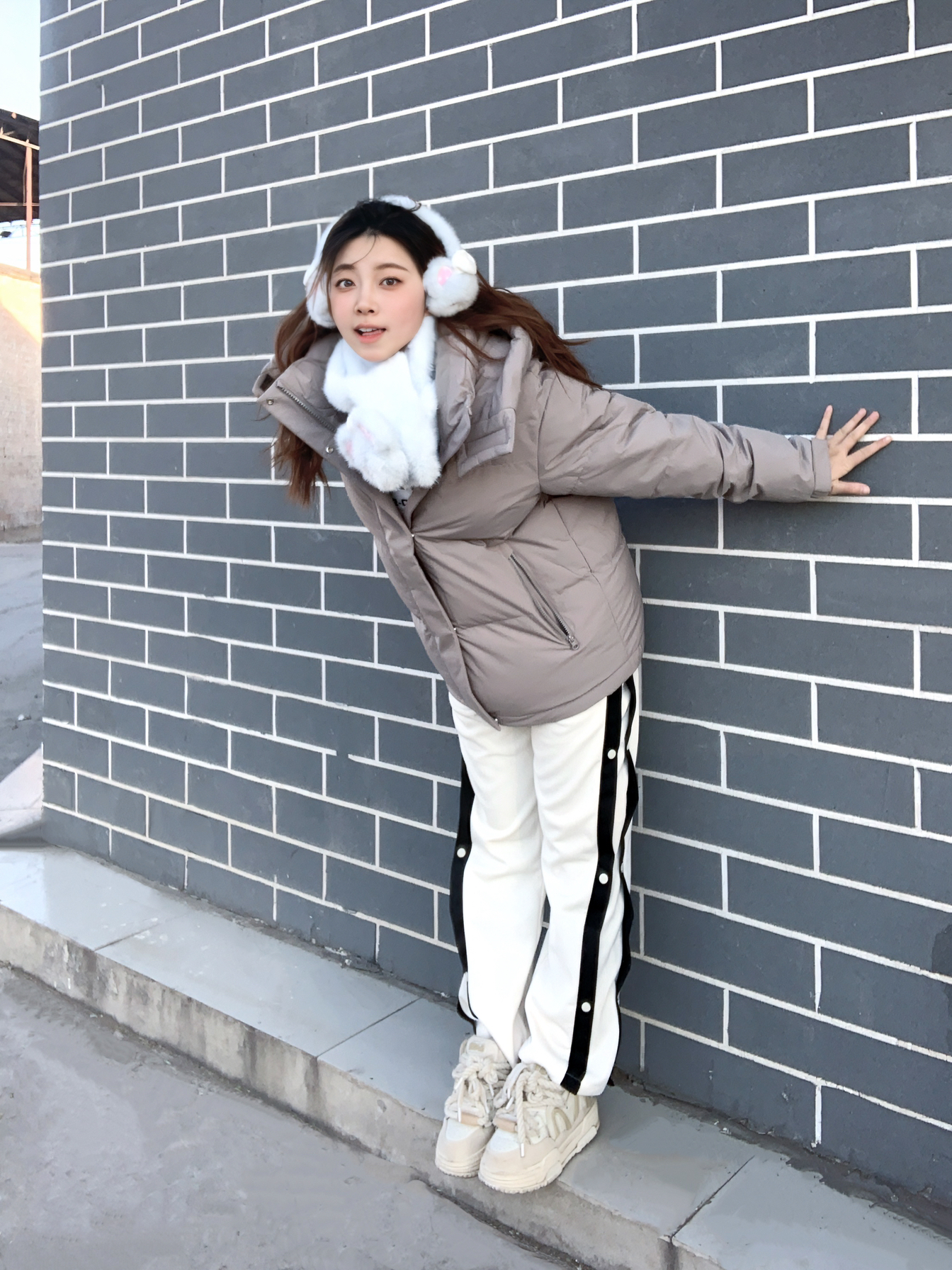 干干净净灰白蓝🩶🤍🩵,低饱和素浅灰 这套暖乎点燃冬日活泼耶 ▫️宽松 #坦博尔 羽绒外套,90鸭绒茸茸,贴服保温,脖颈魔术贴一粘一撕,u弧帽子裹额头,来风不凉头 ▫️条纹排扣裤,宽宽版里面套保暖裤也是妥滴 ▫️白底鞋👟