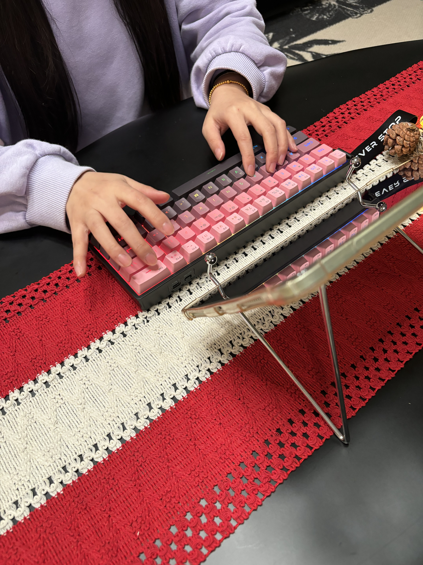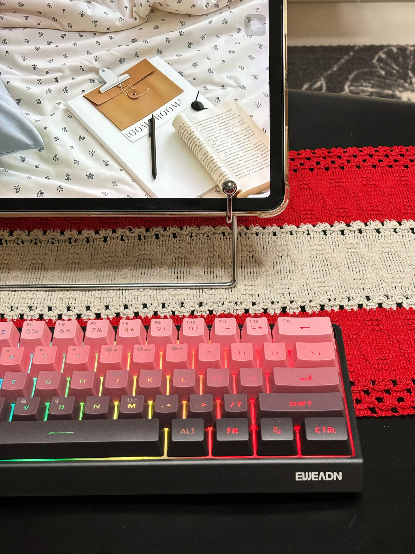 我挑了好久才选到这个键盘,粉黑渐变键帽又甜又酷,RGB灯效模式超多,氛围感直接拉满✨!61键很小巧,带出门放包里不占地~有线和蓝牙切换顺畅,连mac、手机都没延迟,薄膜键盘却有机械手感,打字打游戏都舒服!就是配件只有充电线,略简单~双旦送朋友很合适呀🥰! 图源网络,侵删