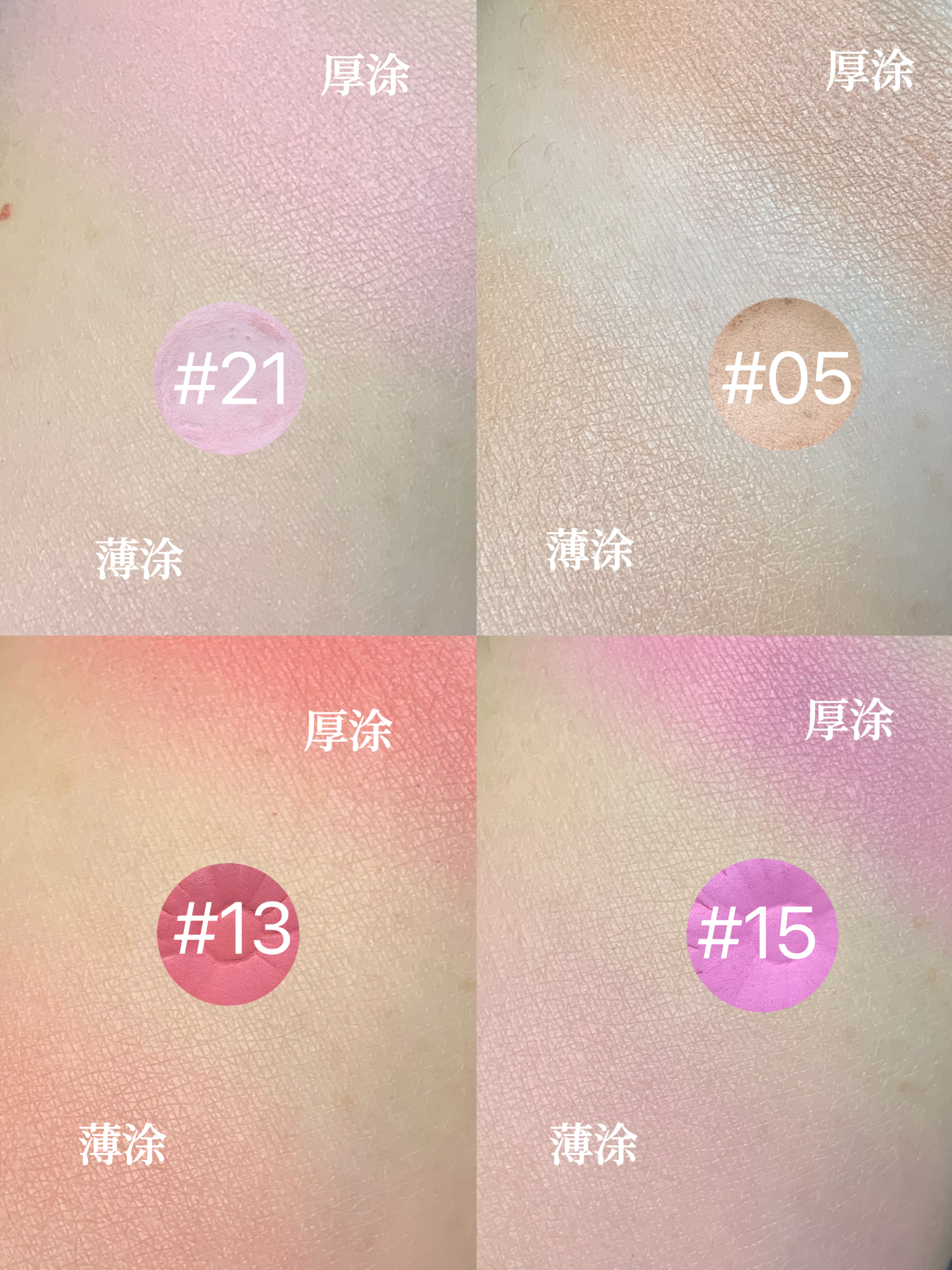 倩碧小雏菊试色哦 🔹#15 丁香紫 冷紫调 去黄气提亮亮 薄涂清冷 厚涂 冷艳 黄皮想显白闭眼入 🔹#21 仙女粉 单涂白开水妆 叠涂打底 脸部会有自然粉嫩的光泽感 属于膨胀色 和皮肤融合的很自然 有种浑然天成的饱满感 🔹#13 玫瑰色 比较冷门的颜色 爱的人会很爱 不爱的人会觉得村 薄涂是淡淡的偏红的粉色 厚涂比较显气色 总体来说属于比较亮色 明显的正粉红色 🔹#05 裸色阳光 ...
