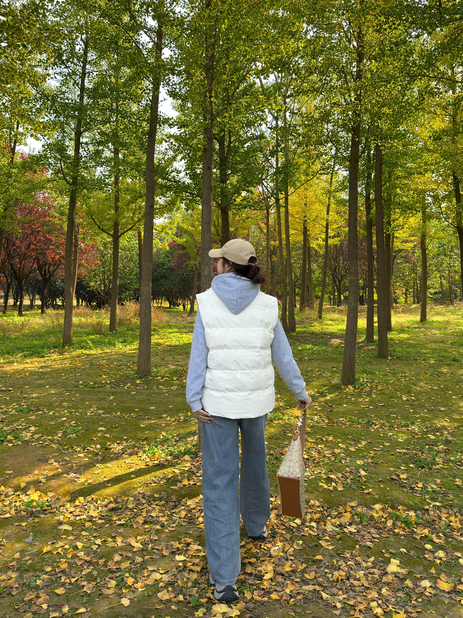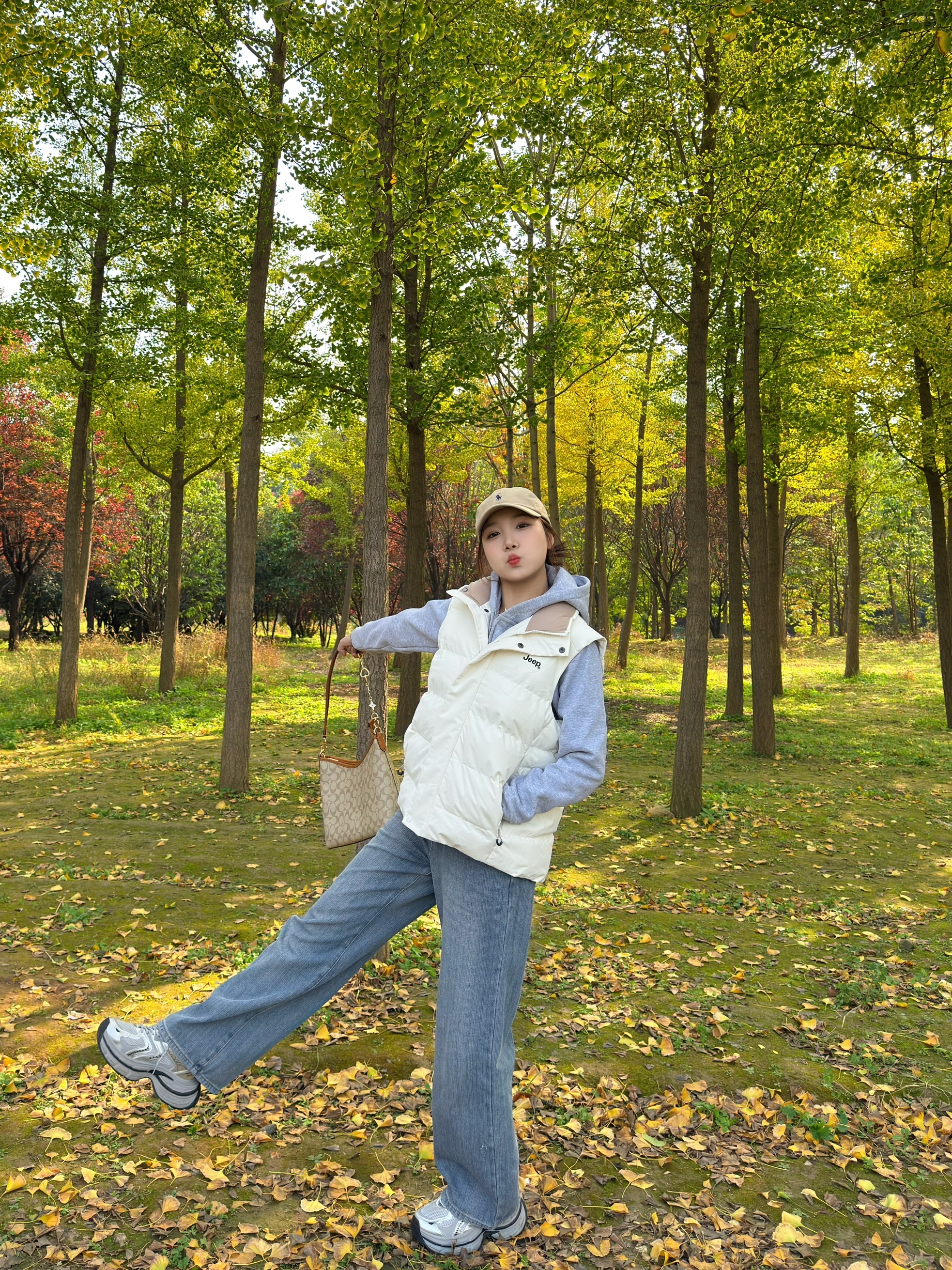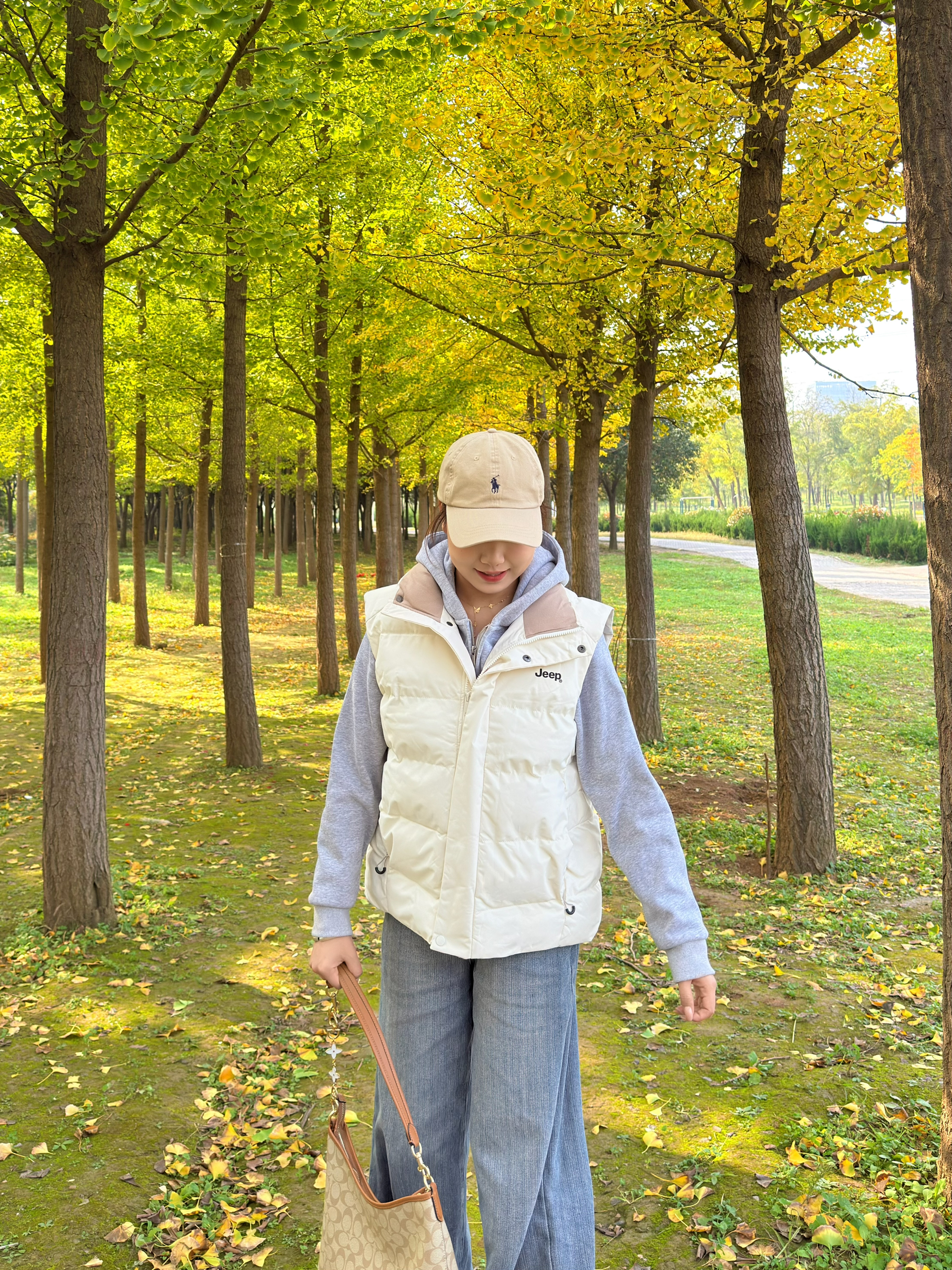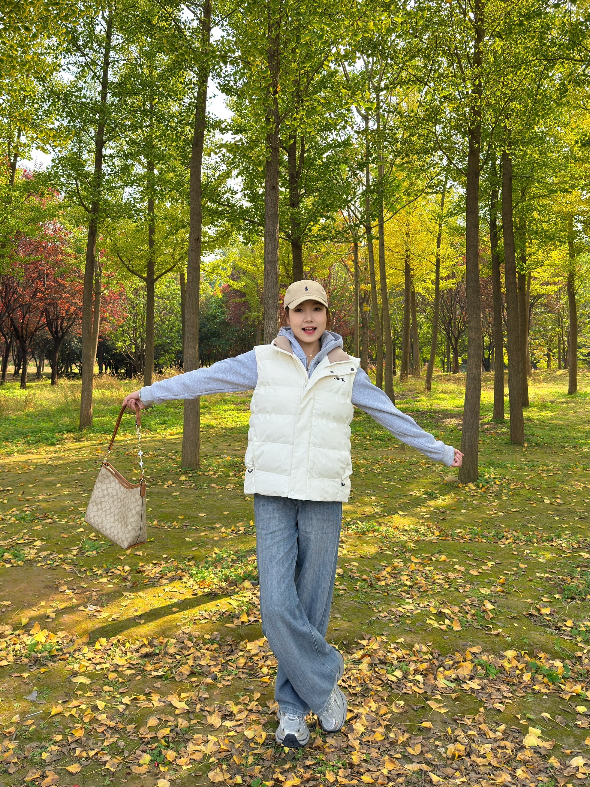 白色羽绒马甲搭浅灰色连帽卫衣,软糯又保暖,马甲的版型还很藏肉,对各种身材都友好~ 下装选了阔腿牛仔裤,慵懒松弛感拉满,再踩一双老爹鞋~ 搭配经典老花托特包,细节处提升精致感,整套look休闲又不失格调,不管是逛公园还是日常出街都超合适,冬日氛围感直接拉满💛