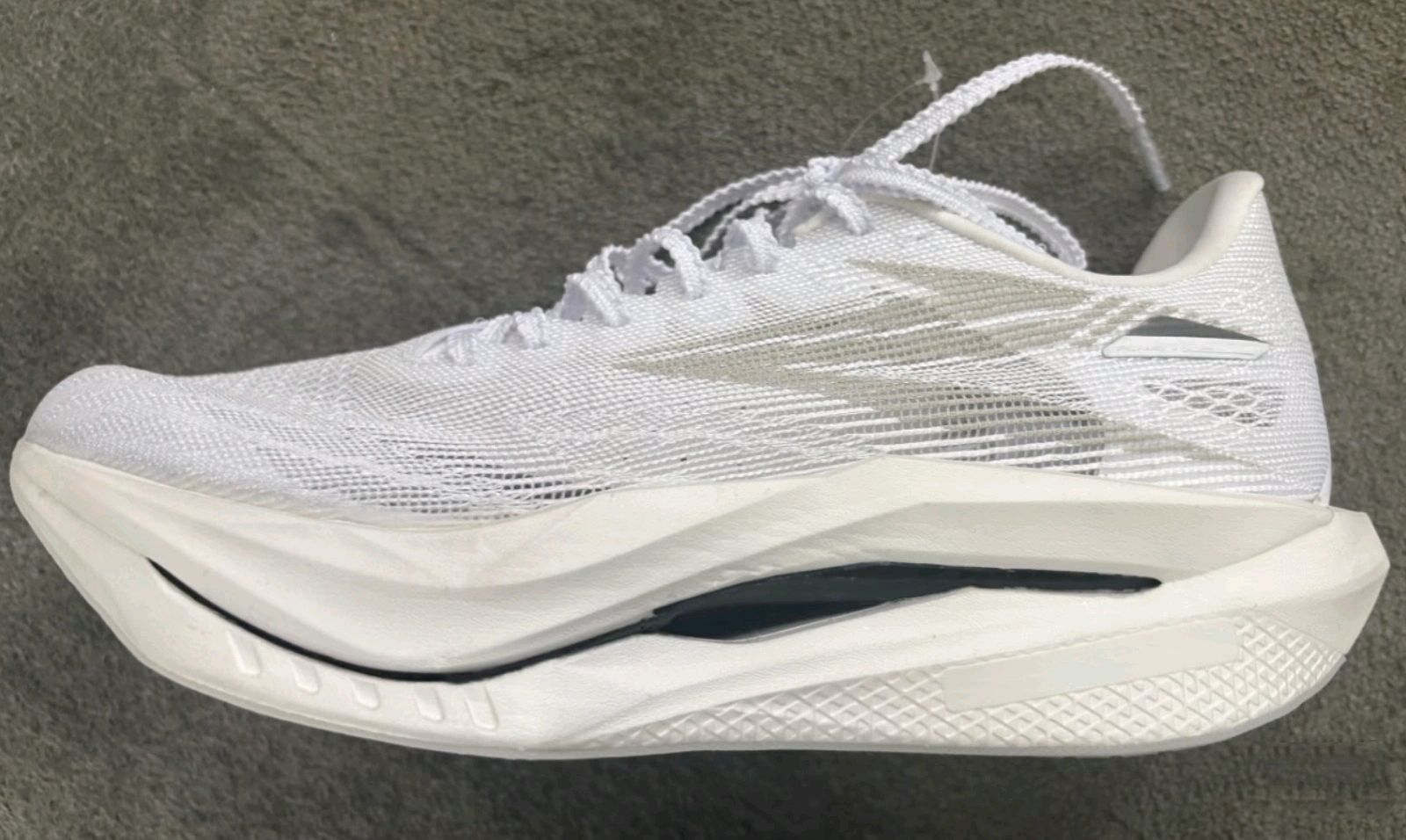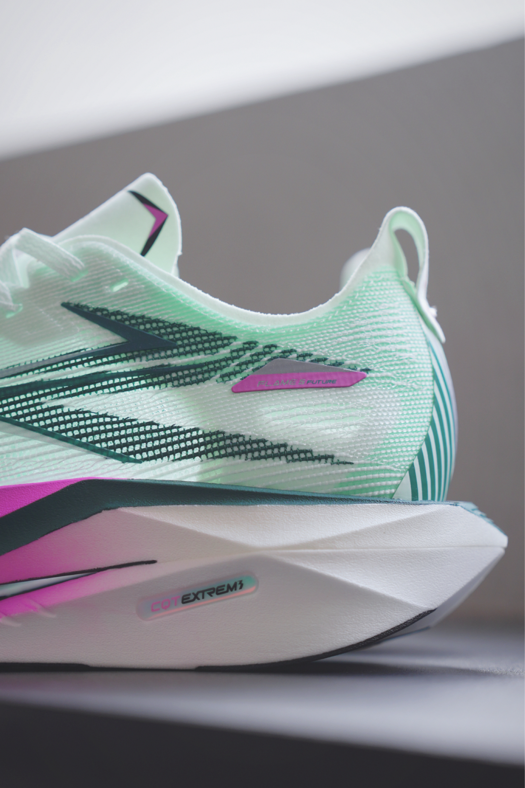 这是度子听劝后果,粗胚版本的的飞燃向你招手啦~命名为飞燃5FUTURE,更轻更弹,是目前为止最快的飞燃。 性能数据: 中底:CQT EXTREME高性能弹性体,升级粗胚发泡工艺; 碳板:QUIKBONE-DYN,全掌多维动态碳板; 鞋面:金刚碳丝科技,采用超韧铂笼丝; 外底:RPU防滑耐磨大底 厚度:前掌30mm,后掌36mm,6mm落差(不含4mm模压鞋垫); 鞋重:42码单只重量为:左204...