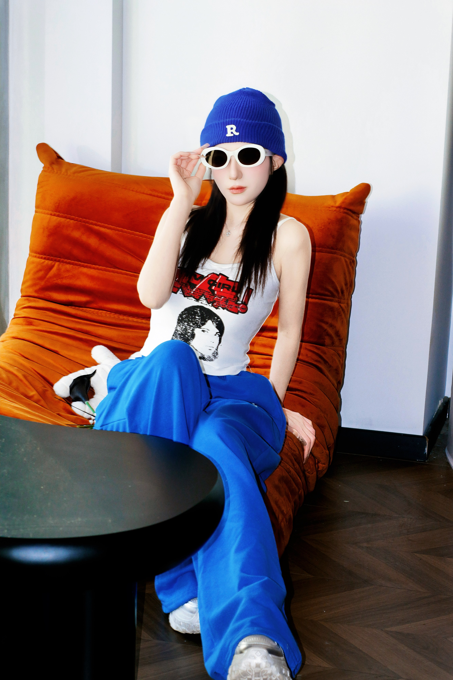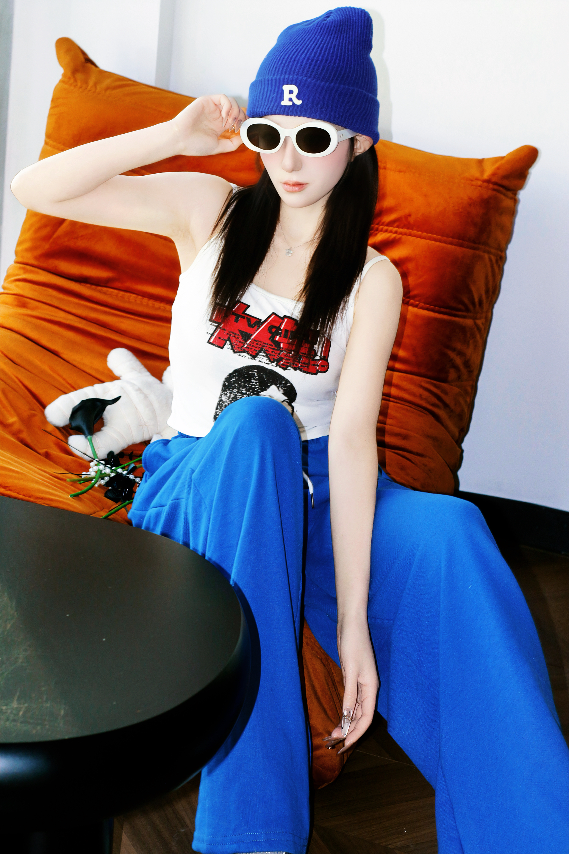 街头风穿搭的灵魂,是克莱因蓝帽裤给的! 软乎乎的针织帽自带潮范,阔腿蓝裤走起路来带风 简单搭件白背心,随性又亮眼的造型就成了~
