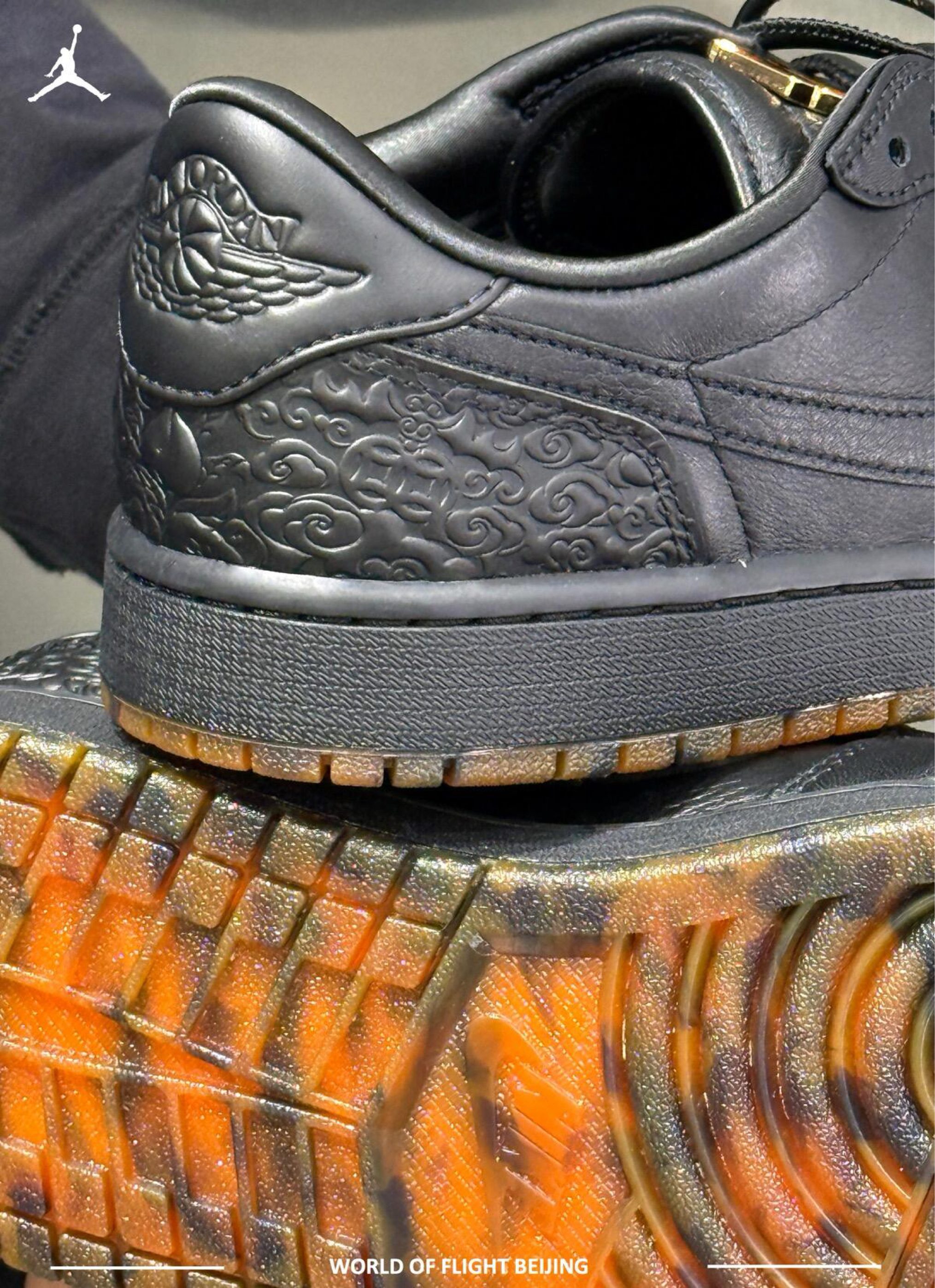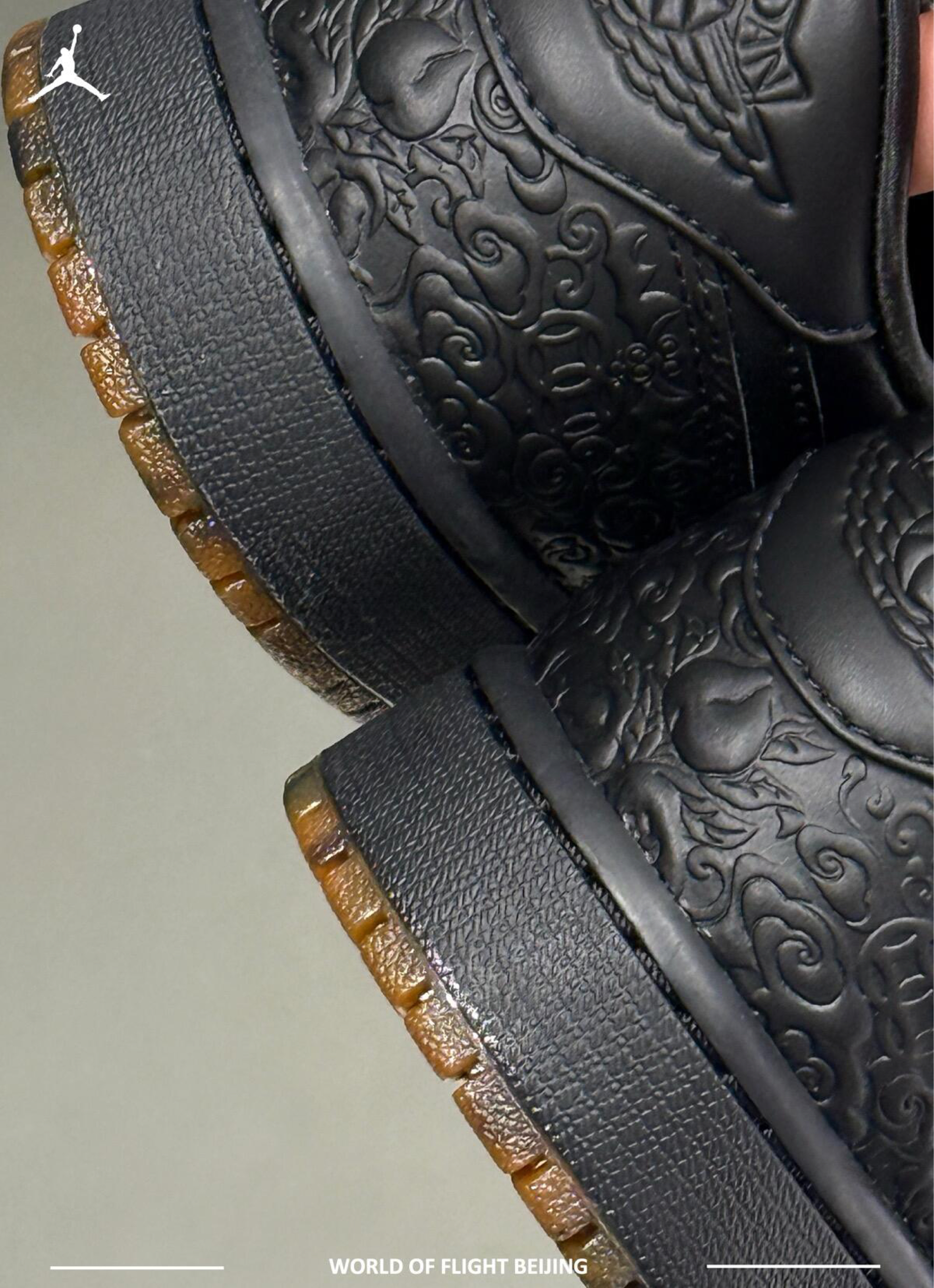 黑色之后,自有光芒盛放。 凝结了中国传统文化与街头潮流风格的 AIR JORDAN 1 LOW OG'玄武'球鞋,用崭新的视角向你传递光明未来的祝福。新年街头仪式感,从「玄武」上脚开始。 以内敛的黑色头层牛皮打造鞋身,配合精巧的传统纹样浮雕细节,呈现球鞋制作的匠心工艺。低调而不乏典雅奢华,并包含吉祥寓意,蝙蝠象征着福运吉祥,钱币寓意财富与收获,寿桃期许健康旺盛的生命力,祥云内含对如意与姻缘...