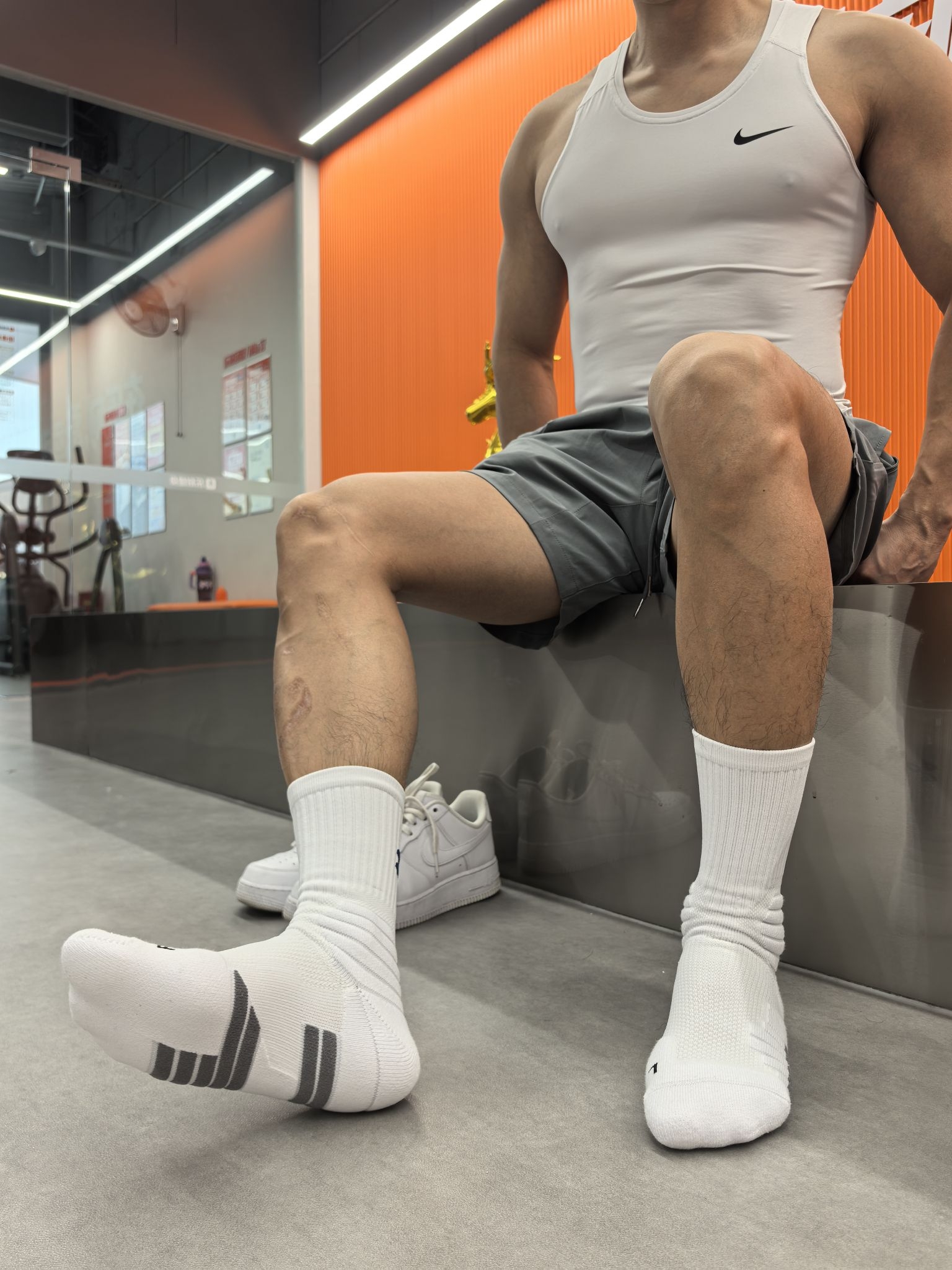 今天健身穿着这双袜子,袜底是那种加厚的毛巾底,整体很厚实,但是一点不闷脚,脚背处还做了大面积透气网,吸汗和透气效果很明显,在健身房练完腿,脚还是干干爽爽的。袜筒的弹性也刚好,不会勒腿,也不会滑下去,运动穿它真的太合适了!