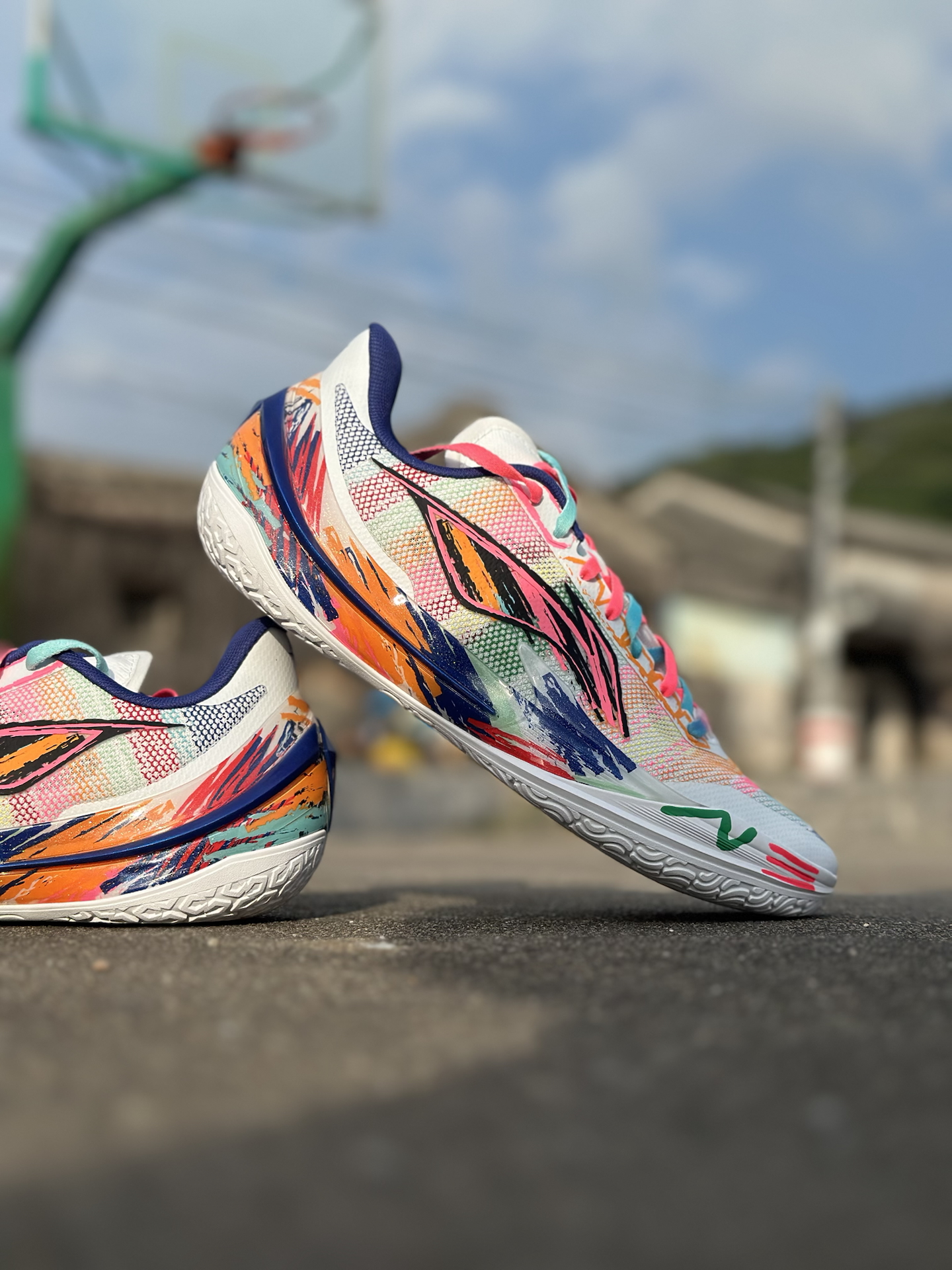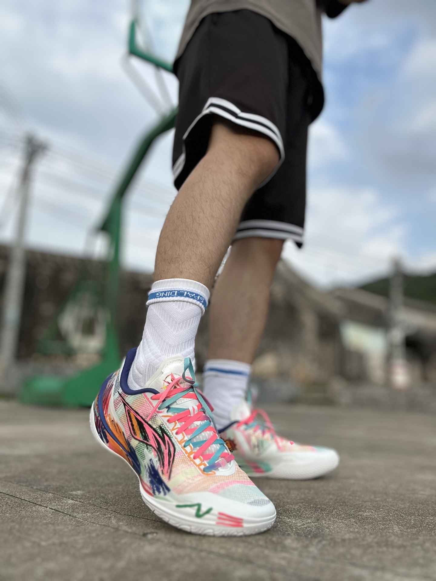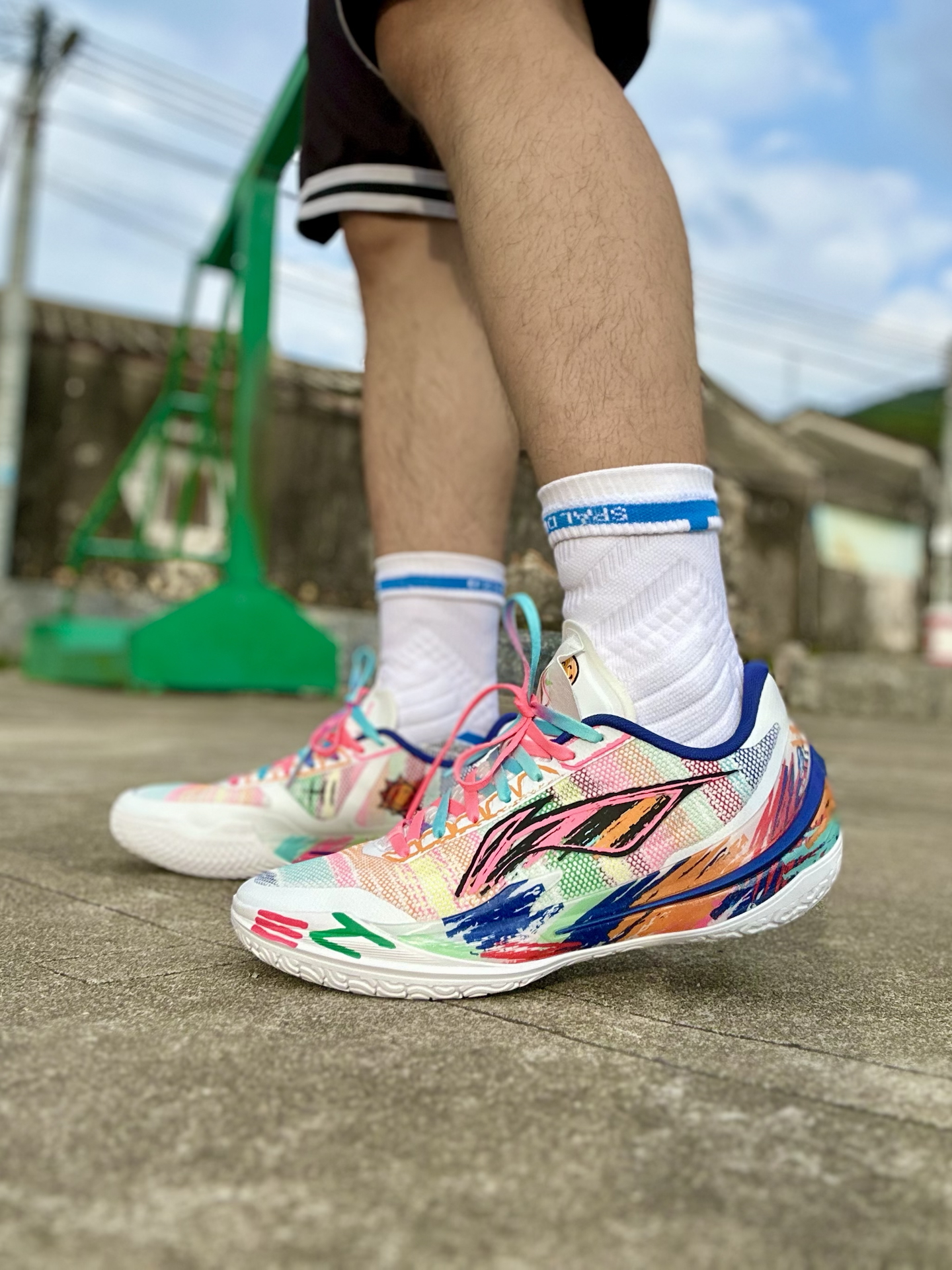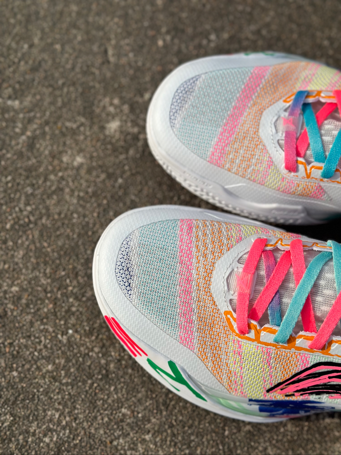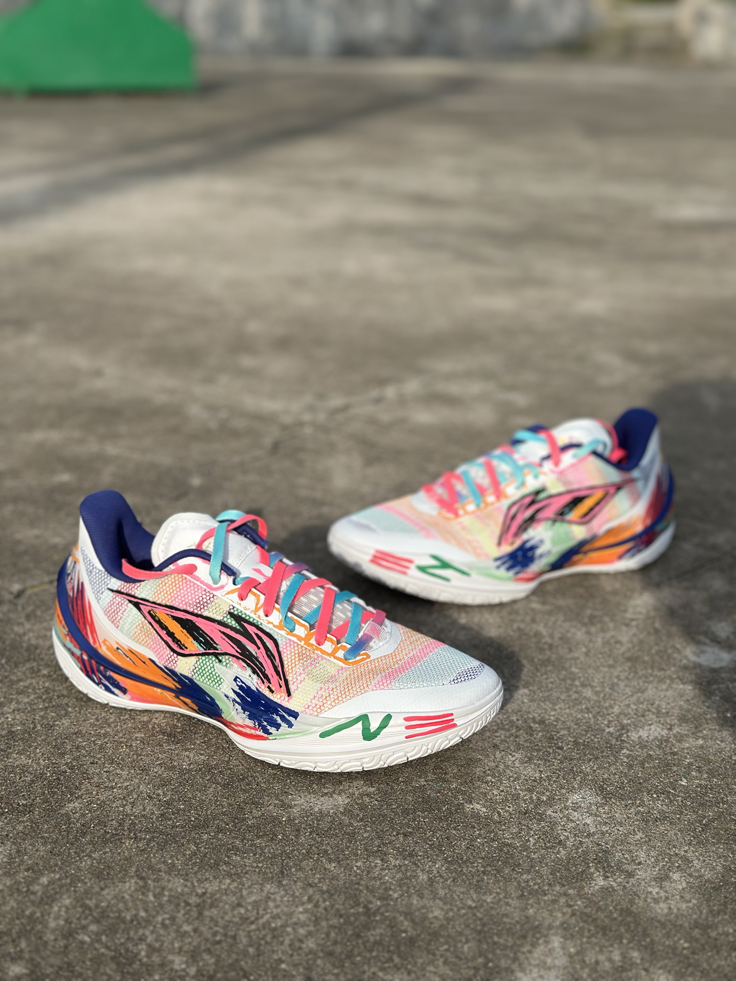 今天分享的这款利刃 5v2,作为公认的薄底快靴,在各项性能的表现确实很出色,内向艺术家配色又很张扬抓眼球,大面积白底色鞋面,点缀彩色涂鸦笔触,中底 TPU、李宁 LOGO 也融入画笔痕迹,搭配彩虹色鞋带,视觉冲击很强烈。 室外粗糙水泥地实测下来,抓地力耐磨度都经得住考验。 不过也不是谁都适合,其低重心设计以及出色的启动反馈,不推荐大体重的朋友,比较适用于突破速度型后卫#2025年度鞋王