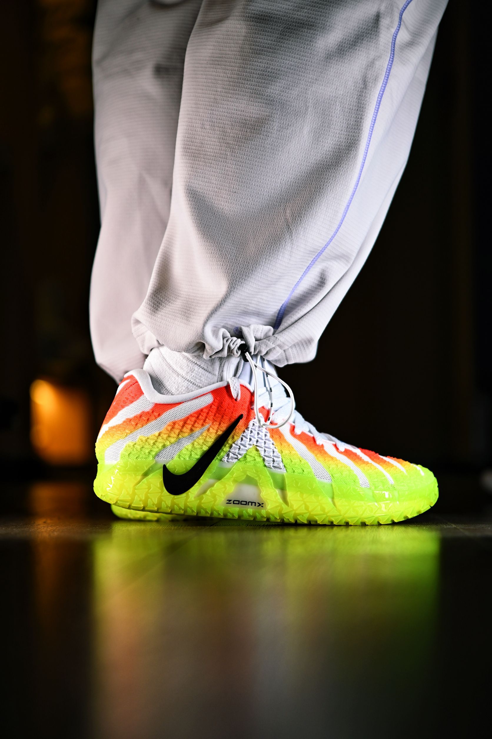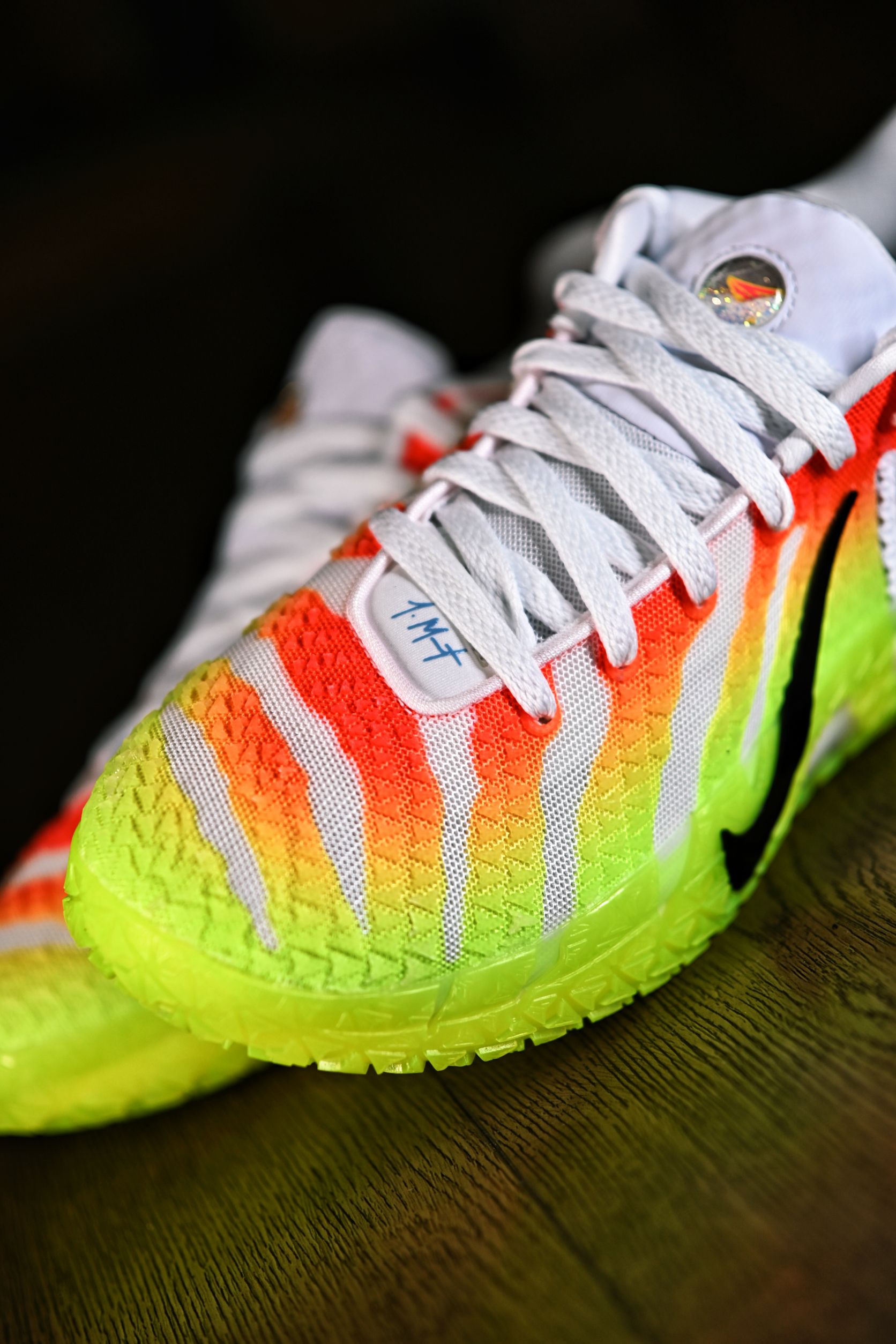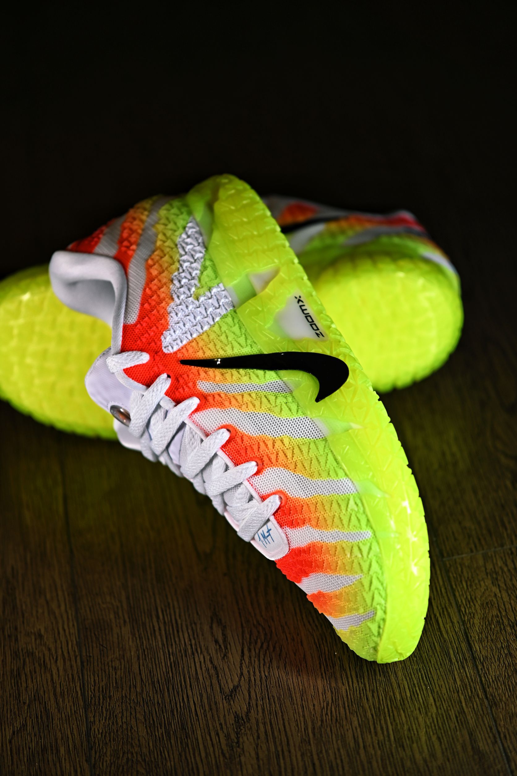 看惯了历年的红配绿,这回的荧光绿➕熔岩红倒是让我眼前一亮,上脚的确是非常骚气 整体的主题细节处理也很到位 鞋舌也更换了莫兰特的logo加闪粉,算是契合圣诞氛围吧 织物鞋面包裹非常的紧致,我自己不大个一码压根穿不进,全掌Zoom Max的确很软,都有点不习惯,感觉大体重的朋友会喜欢