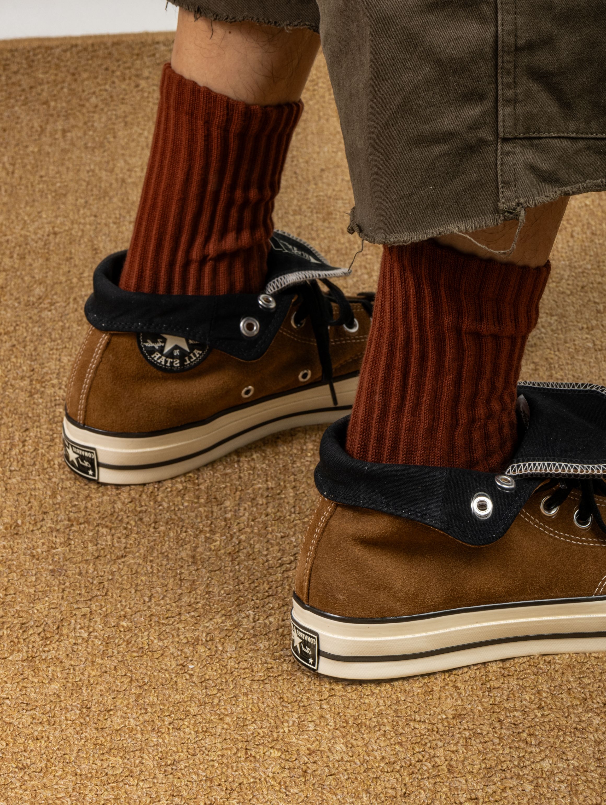 经典的驼色帆布像一杯温热的燕麦奶茶,越看越有味道。加厚的鞋垫和扎实的帆布让它比普通款更软更跟脚,走一整天都不会累。 高帮设计特别修饰脚型,配上厚袜子有种温暖的包裹感。 搭牛仔裤、阔腿裤甚至长裙都毫不费力,自带一种不费力的复古慵懒感。脏了也很有味道,反而更显随性——它就像衣柜里那件最基础的针织衫,说不出哪里特别,但就是谁都替代不了。
