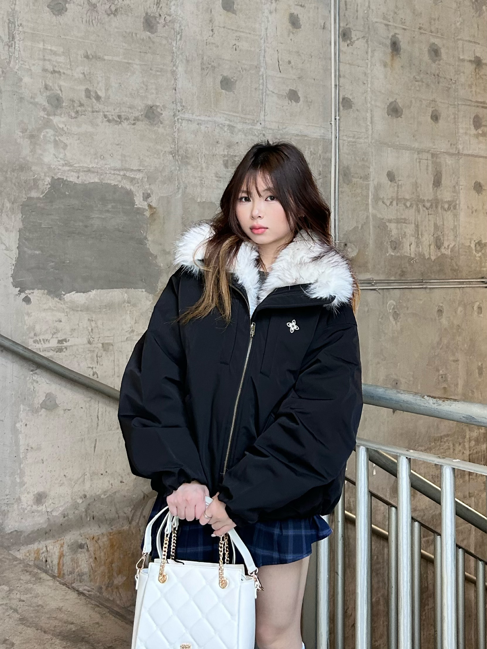 入手的这件座山雕外套真的越穿越爱 (៸៸᳐⦁⩊⦁៸៸᳐ )੭ 毛领软乎乎的贴在脖子上超舒服 黑色宽松款套在身上一点不压个子 搭格裙还能穿出甜酷感 最近出门基本都靠它 保暖又不用费脑搭 属于穿一次就会爱上的实用款