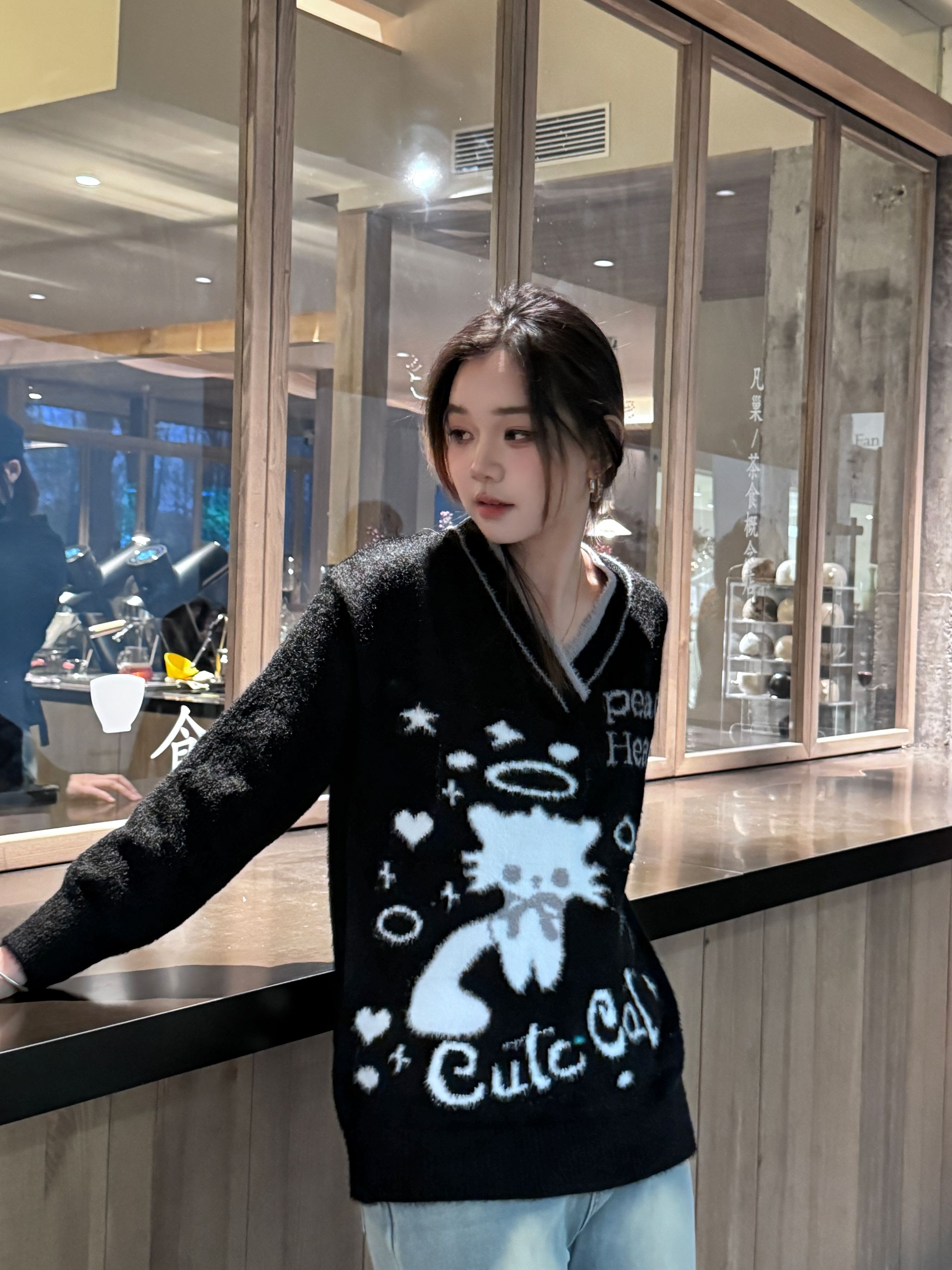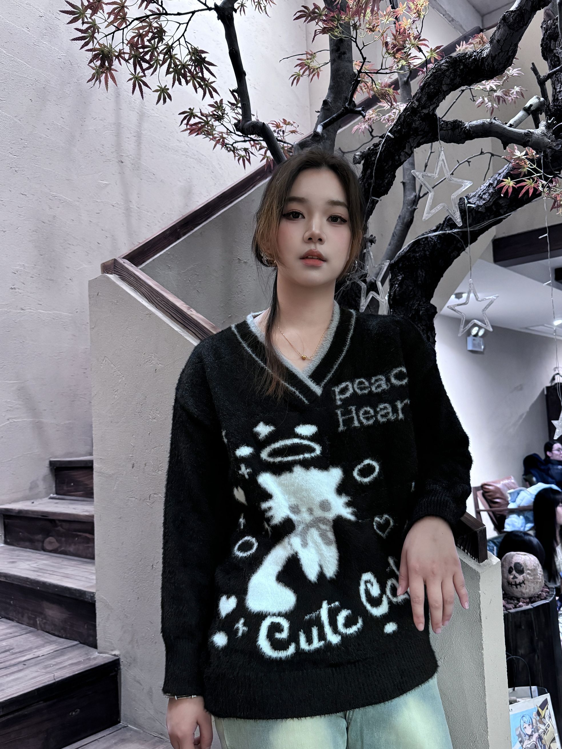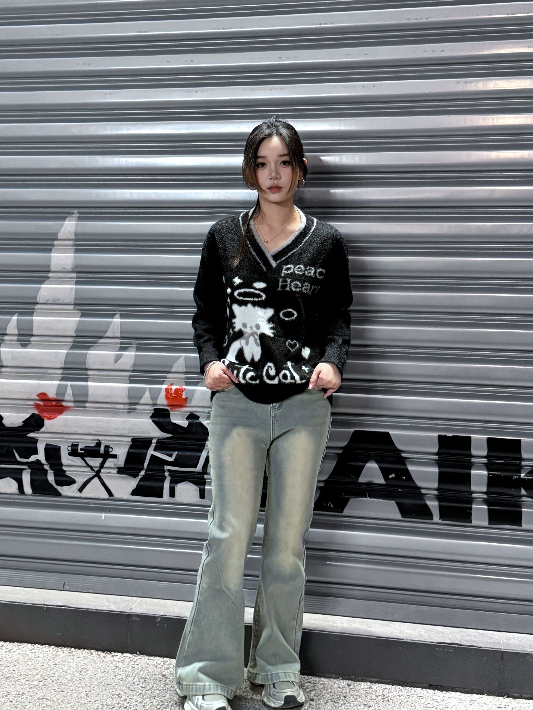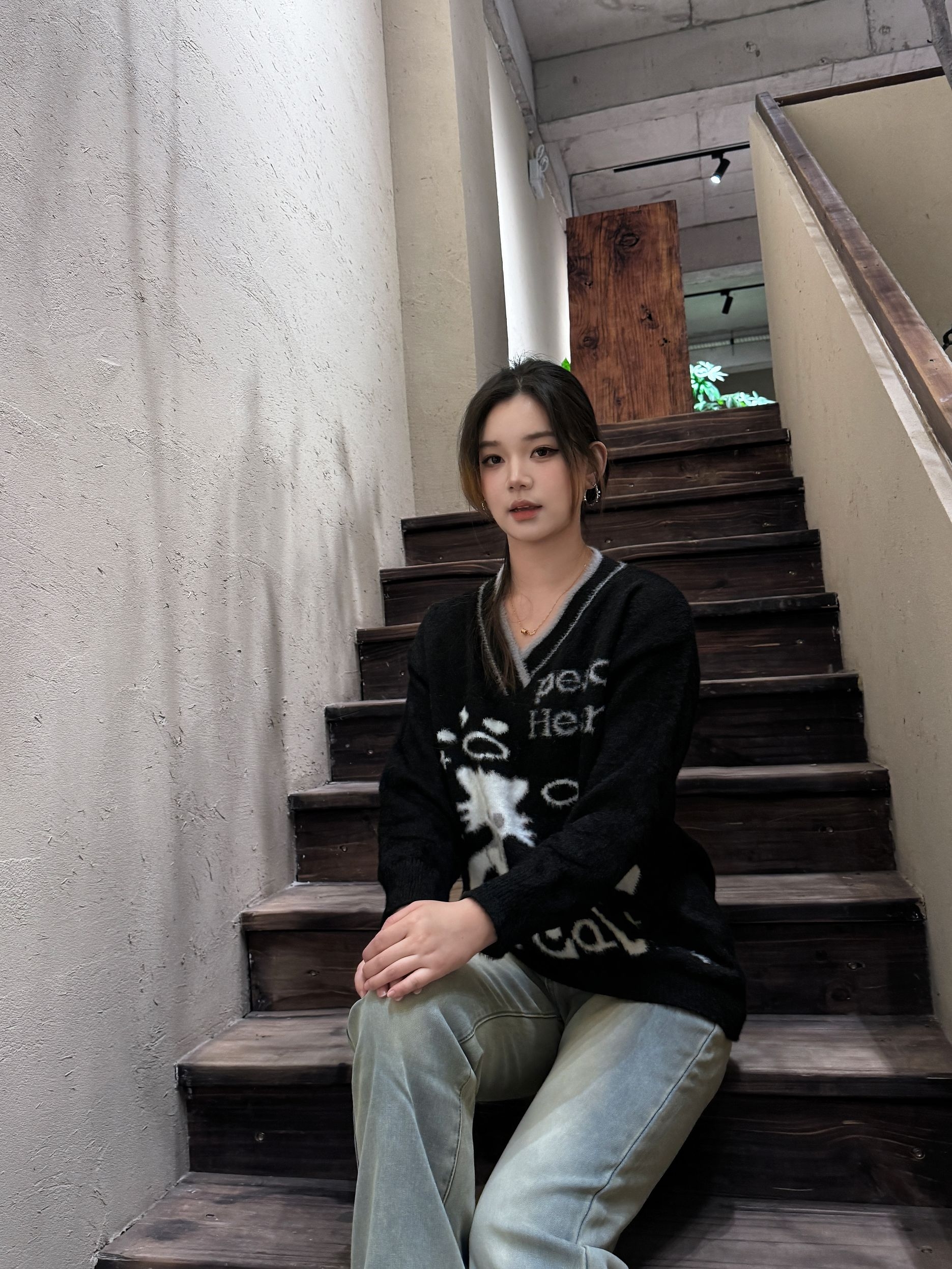 这一身穿搭直接戳中审美!黑系酷飒风拉满,黑色毛衣搭配白色图案很吸睛,直筒裤显瘦又百搭,也很显腿长,谁穿谁是拽姐本姐~