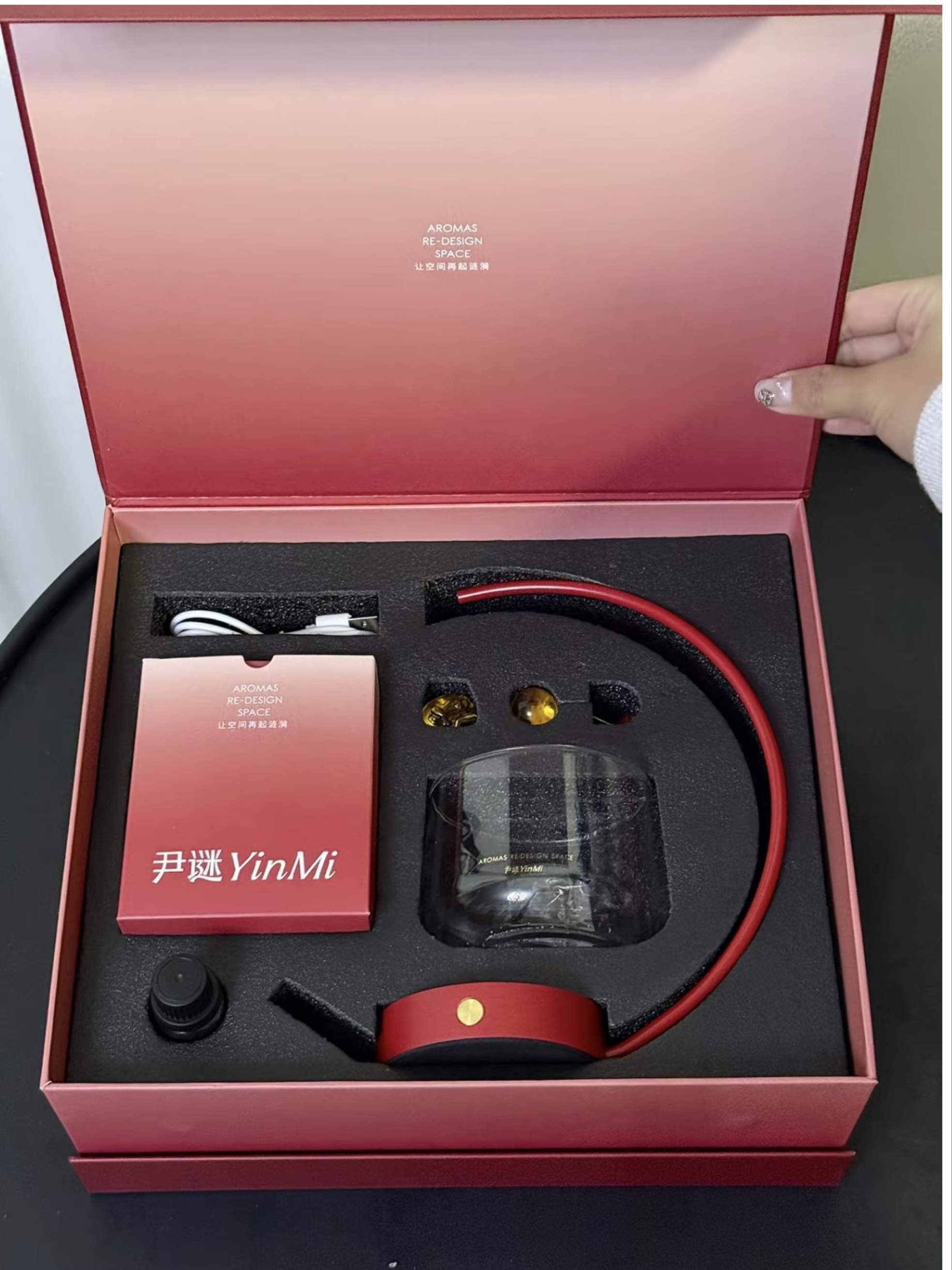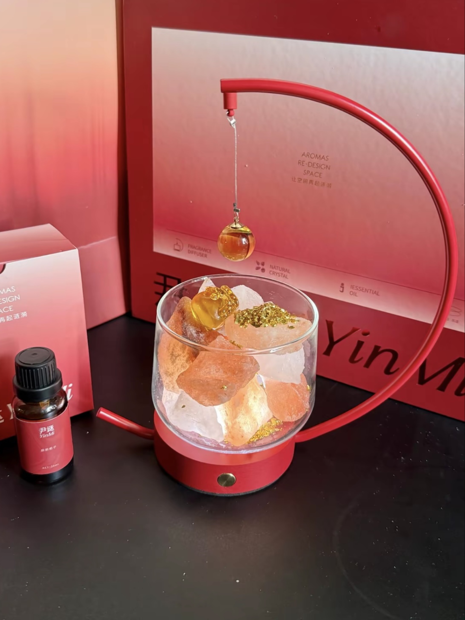 怎么现在才让我发现呢 红色的礼盒真是又高级又浪漫 月亮的设计好的独特一开灯就被惊艳到啦✅ 还有福袋和金沙 有着添金纳福的寓意 打开是3色的灯放床头也可以搭配的栀子精油 晚上闻着浑身轻松的感觉 当新婚礼物°还蛮合适
