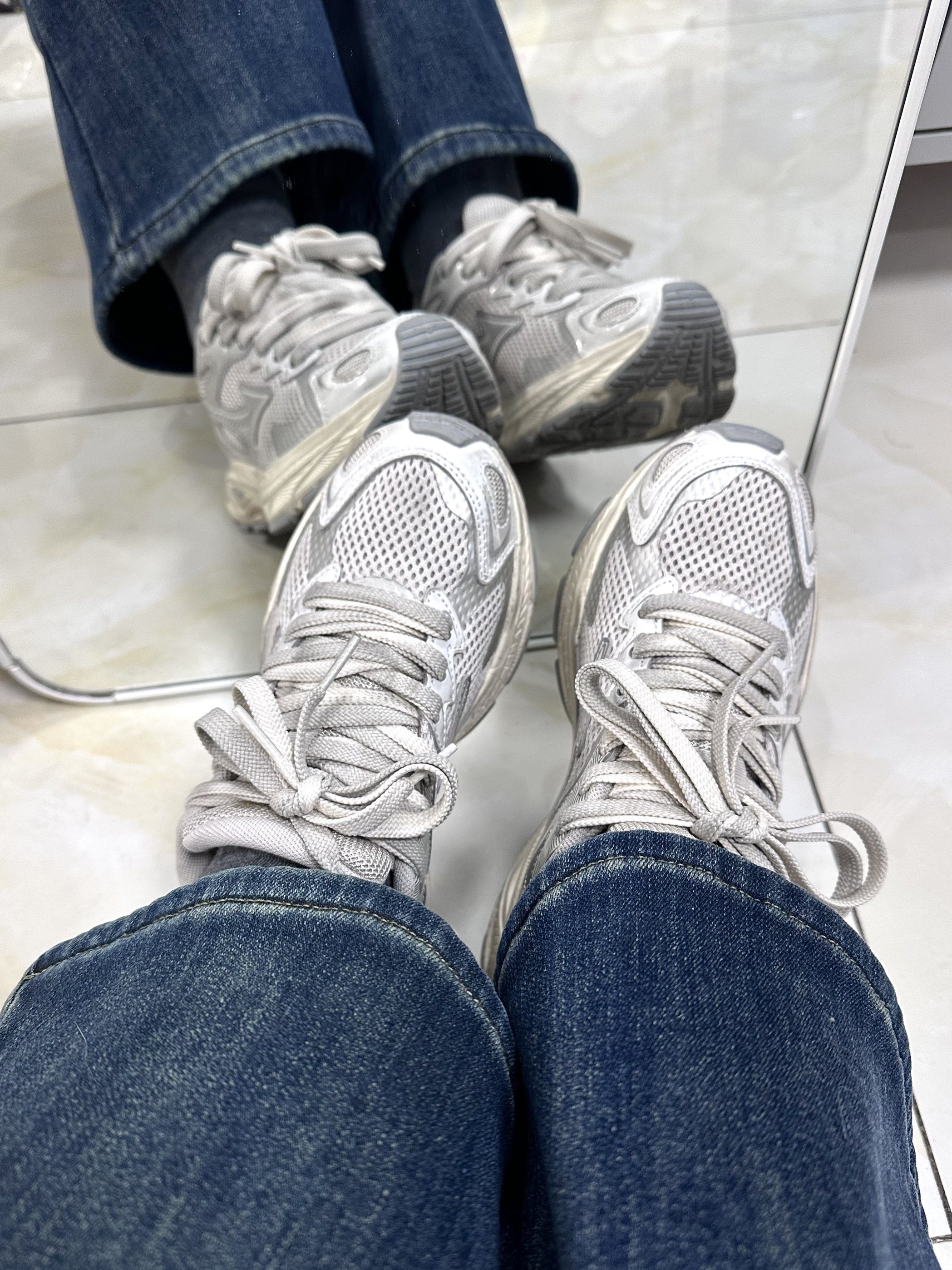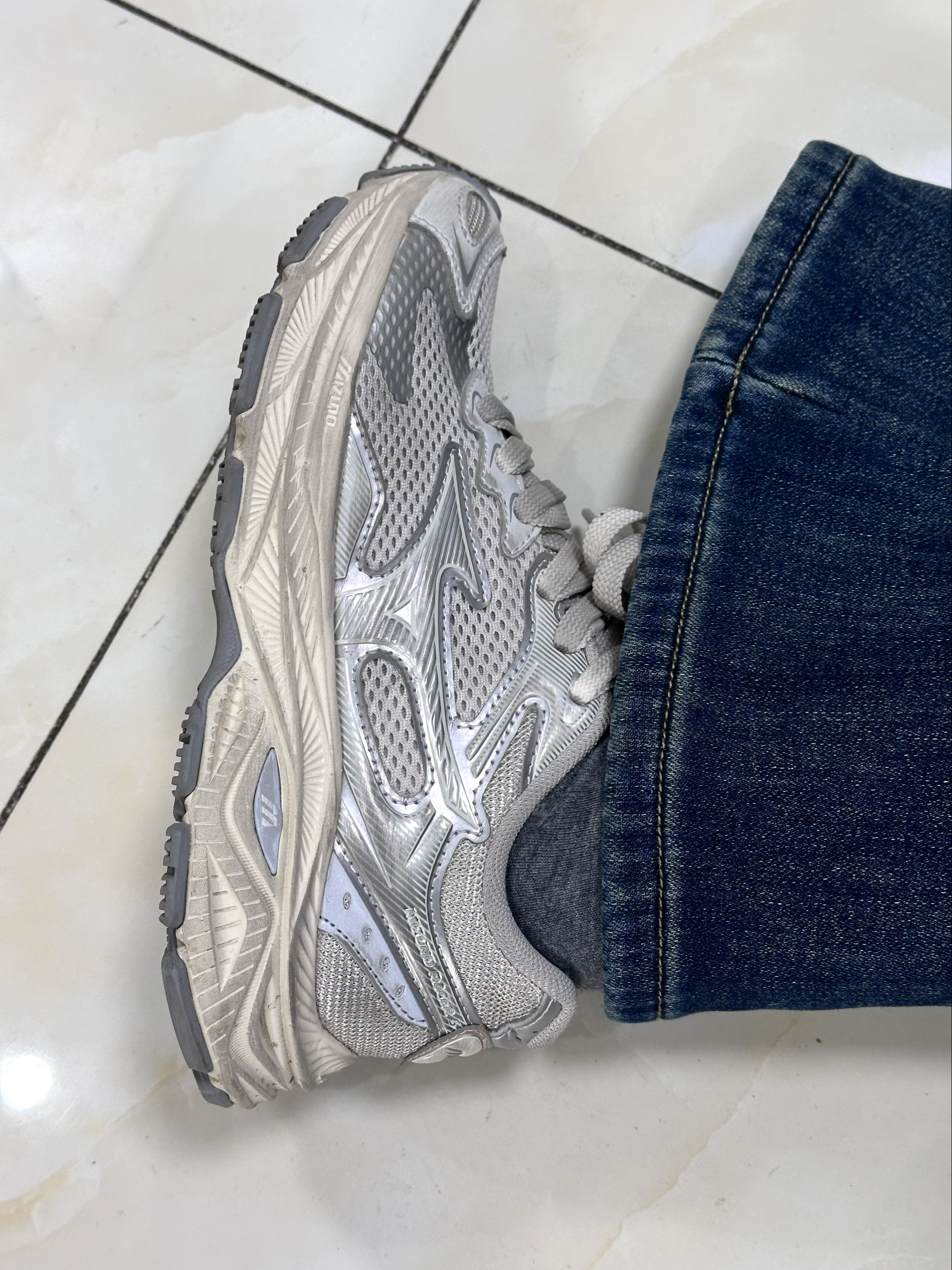 美津浓Racer S脏脏银太顶了!做旧银的质感直接拉满,网面透气不闷脚,厚底还悄悄增高3cm,暴走一天都不累。断货款果然名不虚传,搭牛仔裤秒变街头潮人,闭眼冲!