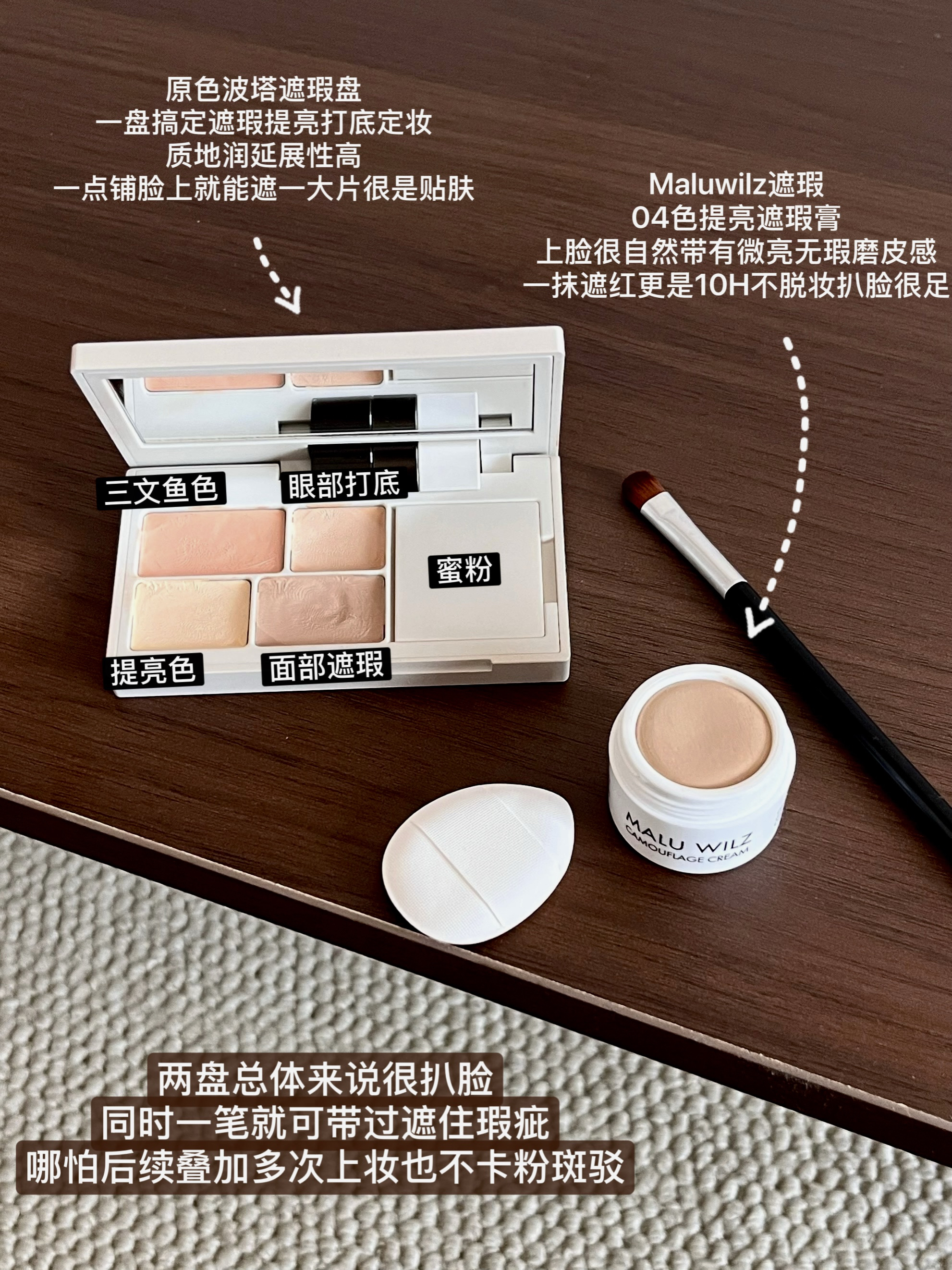 有一说一,用过这么多遮瑕,最后还得属Maluwilz和原色波塔这俩能还我干净底妆!扒的牢遮的严,让妆面从此告别厚重斑驳卡粉,呈现出自然无瑕妆感,今天高低要和大家唠唠这俩瑕疵皮遮瑕天王的强悍之处! Maluwilz遮瑕 最初还是从徐老师那种草的,用一次后就彻底沦陷!!我属于斑点多+黑眼圈较严重的暗沉瑕疵皮,所以买时特意选了04稍微有提亮效果的色号,膏状质地上脸后轻点匀开,黑眼圈中和了不说就连脸上...