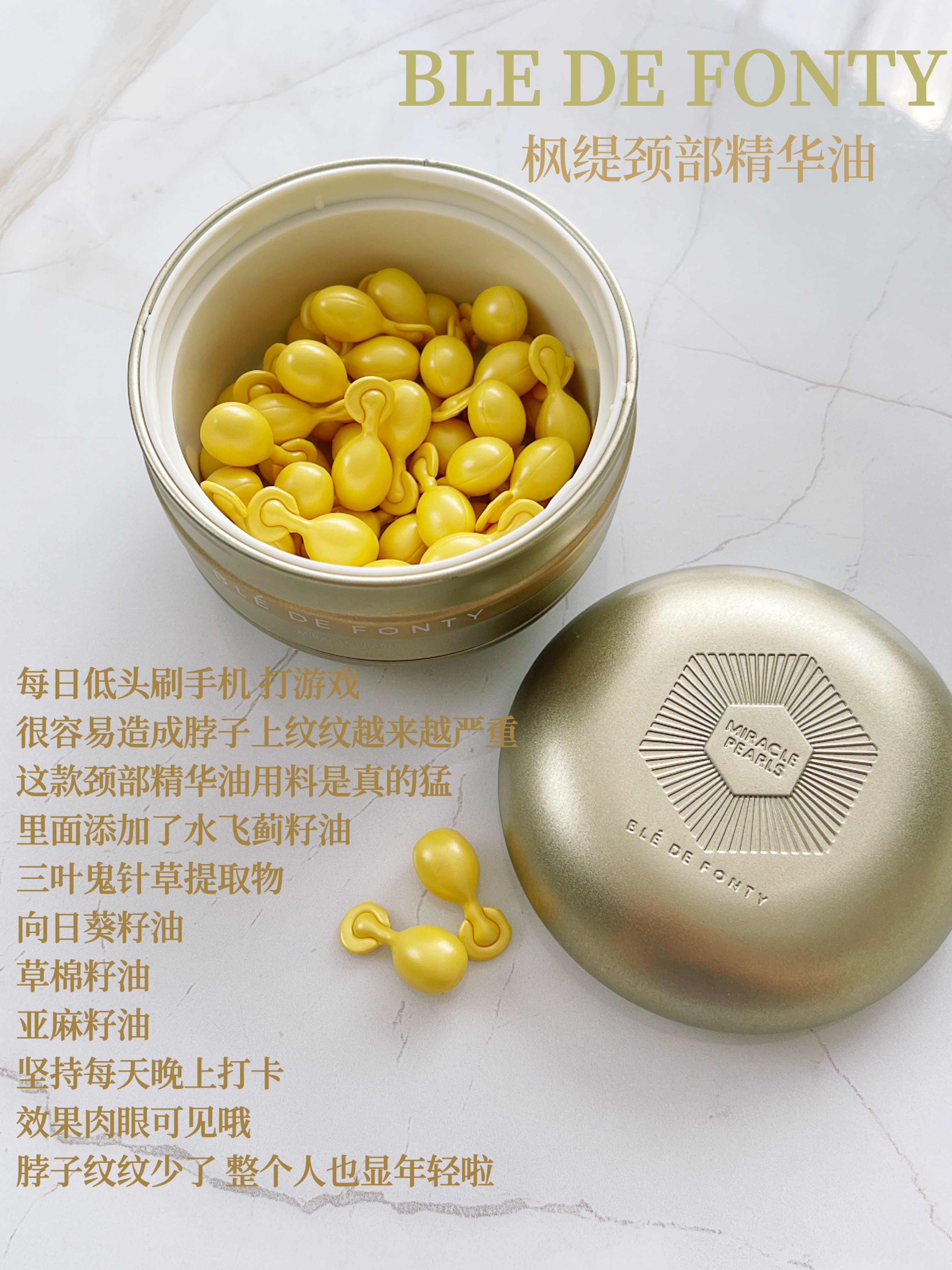 本篇笔记关联了Ble de Fonty/枫缇 V脸美容胶囊精华油 紧塑提拉 舒缓抗皱、Ble de Fonty/枫缇 抗皱熠奢眼部精华胶囊 30粒、枫缇 向日葵美颈部精华 二代30粒/盒*1盒等商品,为用户提供真实的使用体验和购买参考。