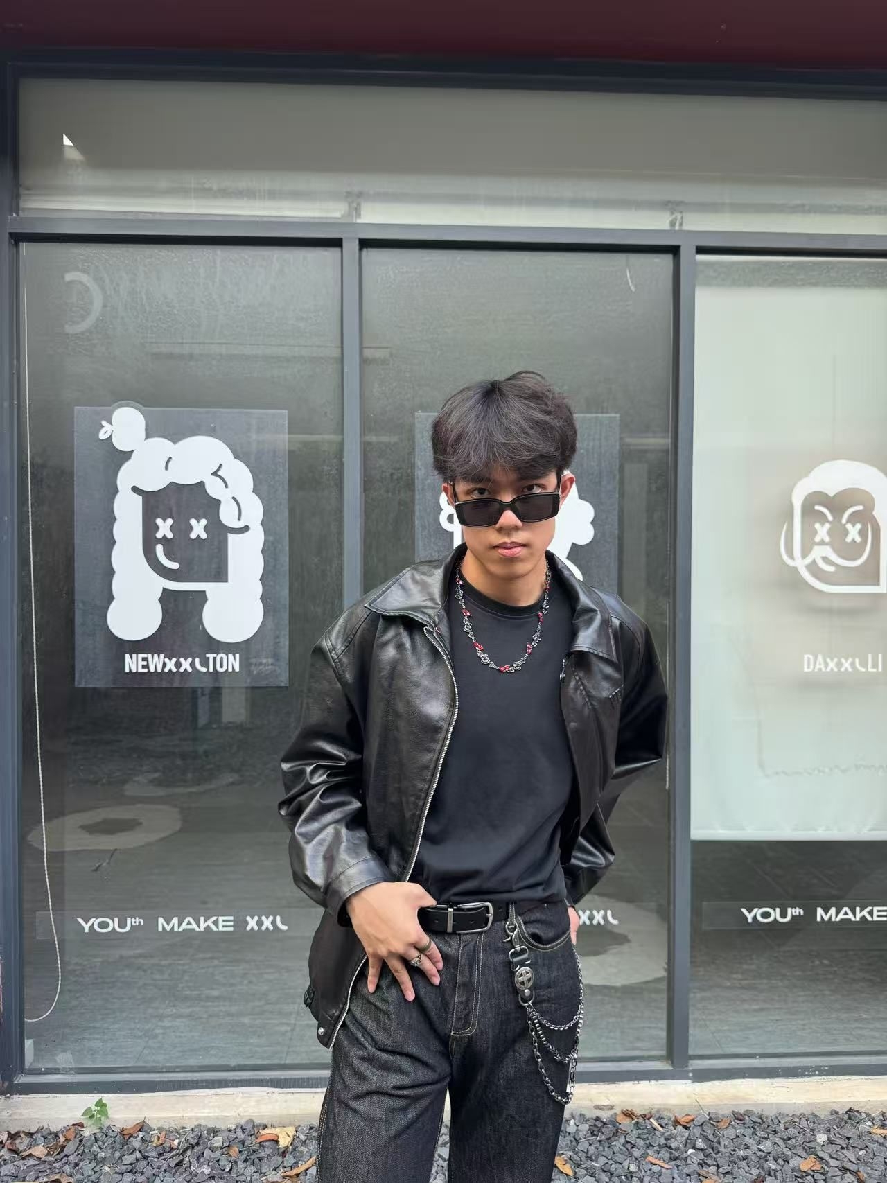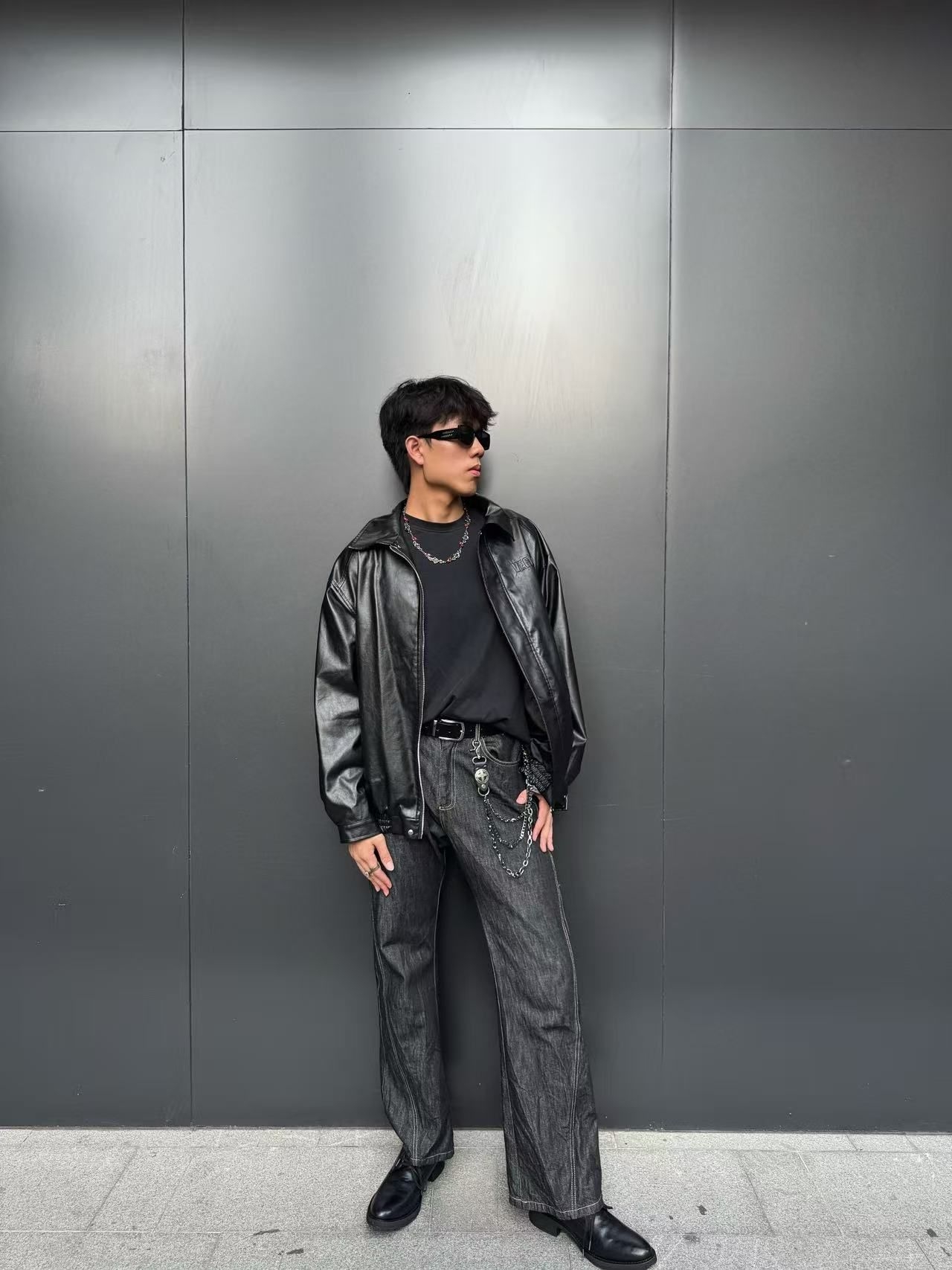 今天这套穿搭黑色皮夹克为核心,搭配黑T、深灰牛仔与黑色皮鞋,金属链饰增添潮酷感😎😎😎 整体风格硬朗复古,是街头与复古工装风的个性融合,酷感十足且极具腔调🥰🥰🥰