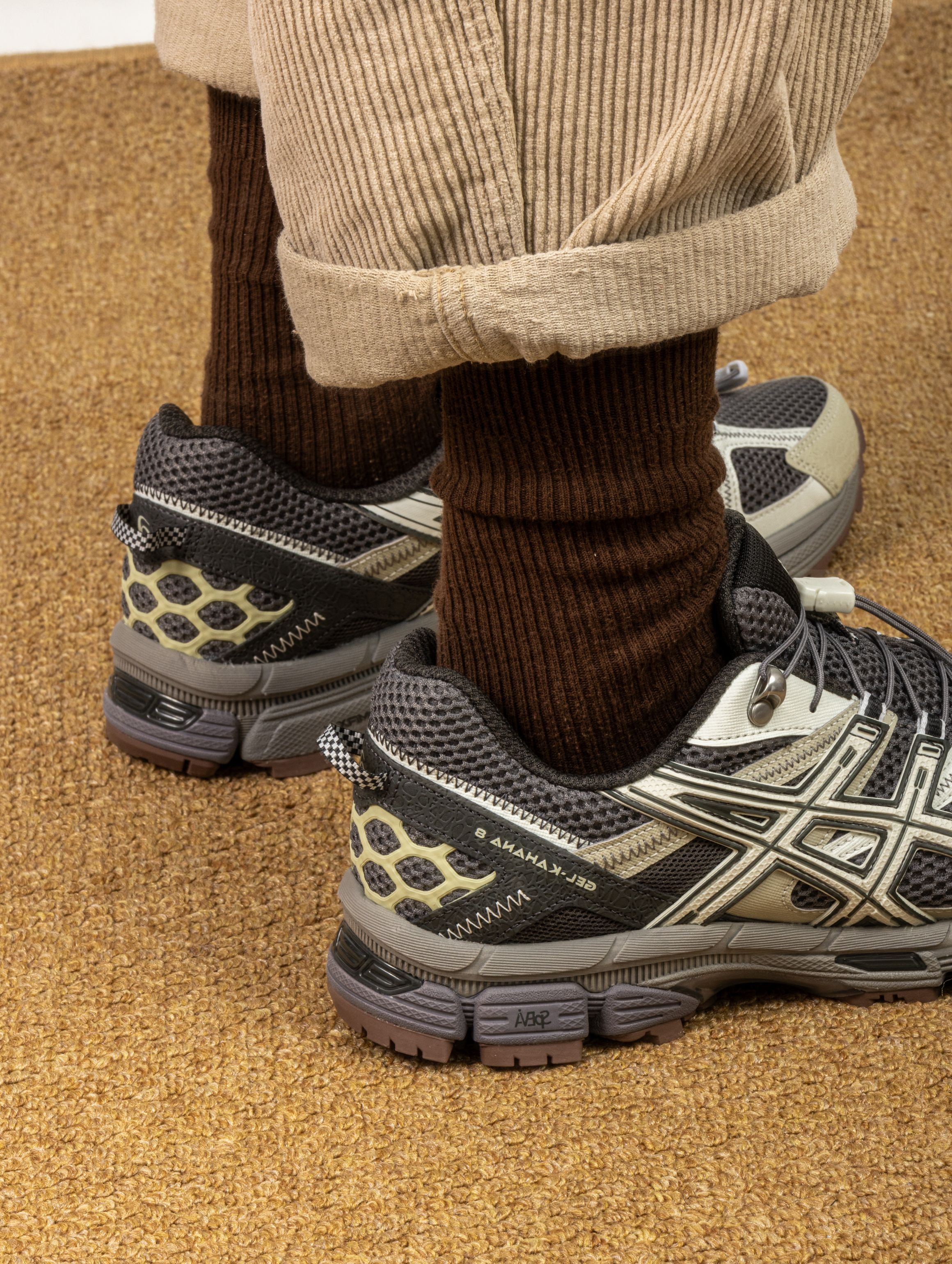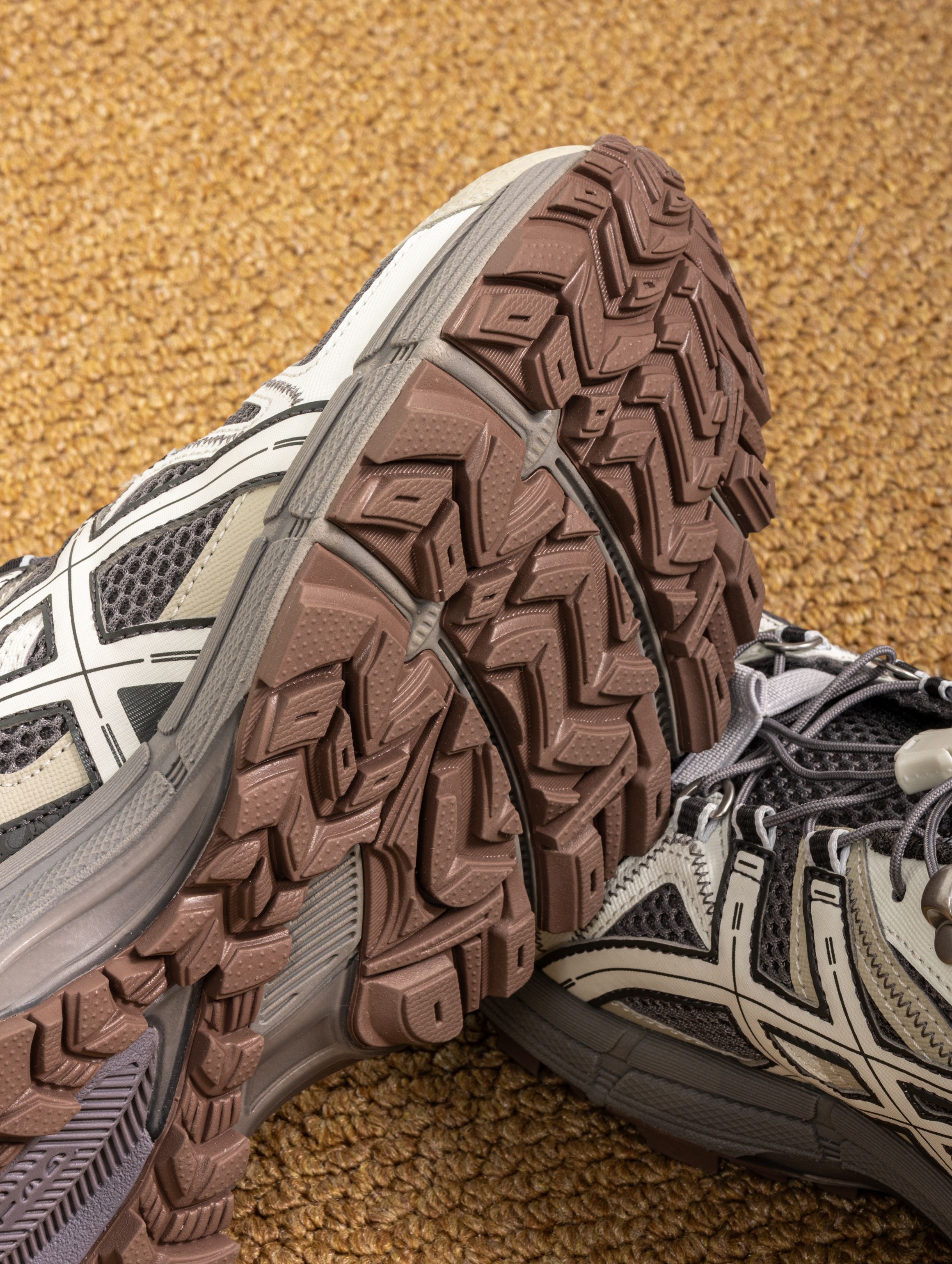 这双「隐士灰」Gel-Kahana 8,真是通勤党的山系灵魂。炭灰皮拼接网面,低调却自带层次感,像把山岩的纹理穿在了脚上。 上脚第一感受是稳——GEL胶缓震走起来软韧适中,户外底纹在石板路上也抓得牢靠。喜欢的是它的轻便,一整天奔波下来,脚踝依然轻松,悄悄平衡了城市节奏与山野向往。 搭工装裤利落,配牛仔也松弛。不需要刻意奔赴远方,一双鞋,也能让穿梭楼宇的日常,带着走进旷野的呼吸感。