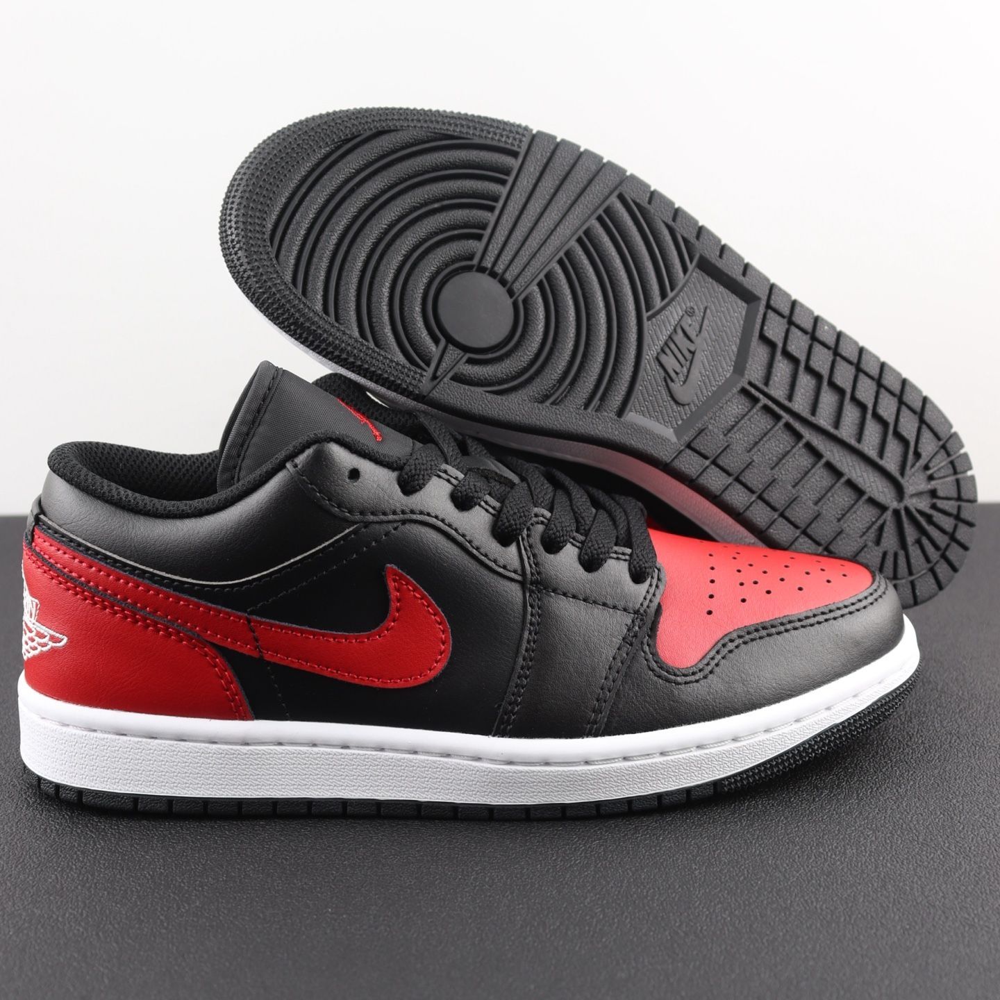 这双AJ1 Low黑红配色真的戳中我了❤️,经典的黑红禁穿调调,低帮设计比高帮更百搭,搭运动裤、牛仔裤甚至休闲西裤都毫无违和感,出门回头率贼高。皮质摸起来很扎实,鞋型也挺括,穿了俩月没怎么变形👟,鞋底的防滑纹路抓地力也在线,日常走路完全够用。