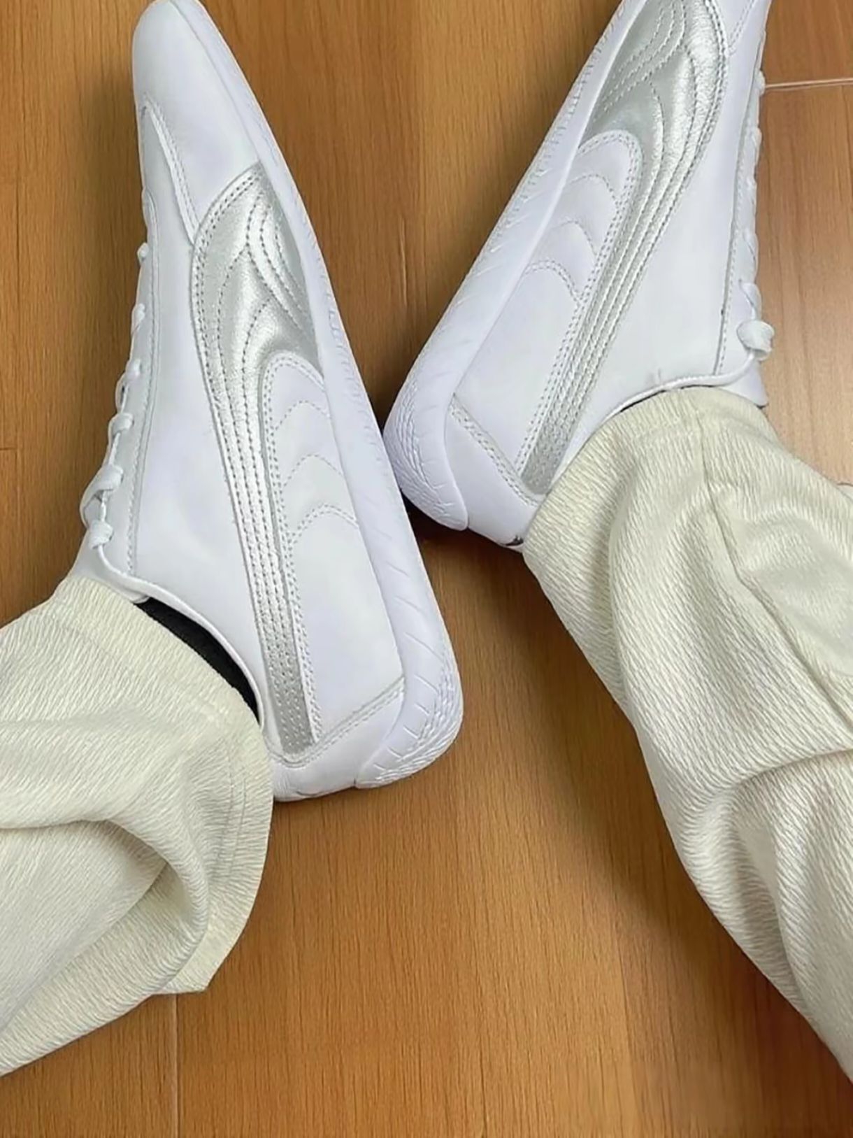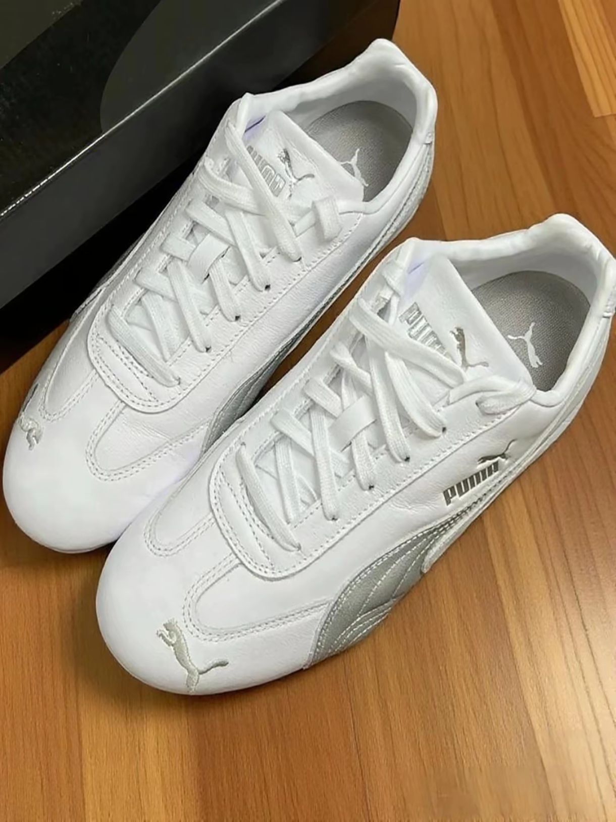 哈喽👋大家好,又来分享鞋子了 逛得物时看到这双彪马,被简洁的设计吸引,就下单了。收到后,打开鞋盒,鞋子质感不错,白色鞋面搭配银色装饰,简洁又有点小特别。 刚入手的时候,我开心的穿着它在蓝球场上打了两场球,一点也不觉得累脚。搭配上我的灰色运动服,整个人看起来很有活力。一起打球的朋友也夸我选鞋的眼光好。而且鞋子穿在脚上感觉很舒服,柔软的材质一点也不磨脚🦶 我上脚效果感觉还不错,鞋底比较防滑 日常搭衣...