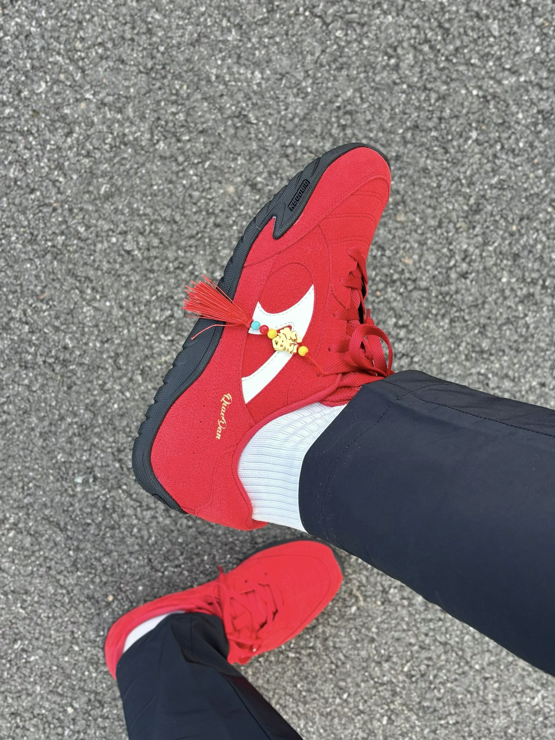 年底想换双新鞋看过来👀 乔丹 CNY配色赛车 德训鞋👟红白配色喜庆又耐看♦️鞋舌和侧边的金色小细节又让整双鞋的质感提高不少,另外麂皮鞋面摸起来很扎实,穿进去包裹感刚好,不会压脚背🦶🏻 虽然是一个薄底设计,但鞋垫做了加厚,踩下去软软弹弹的🍞,走路久了也不会累。悄悄说,视觉上还能增高几厘米✌️脚感轻便,逛一天也不累脚!橡胶底很稳,下雨天穿也没问题~ 搭配方面根本不用纠结~简单休闲裤、牛仔裤👖甚至束...