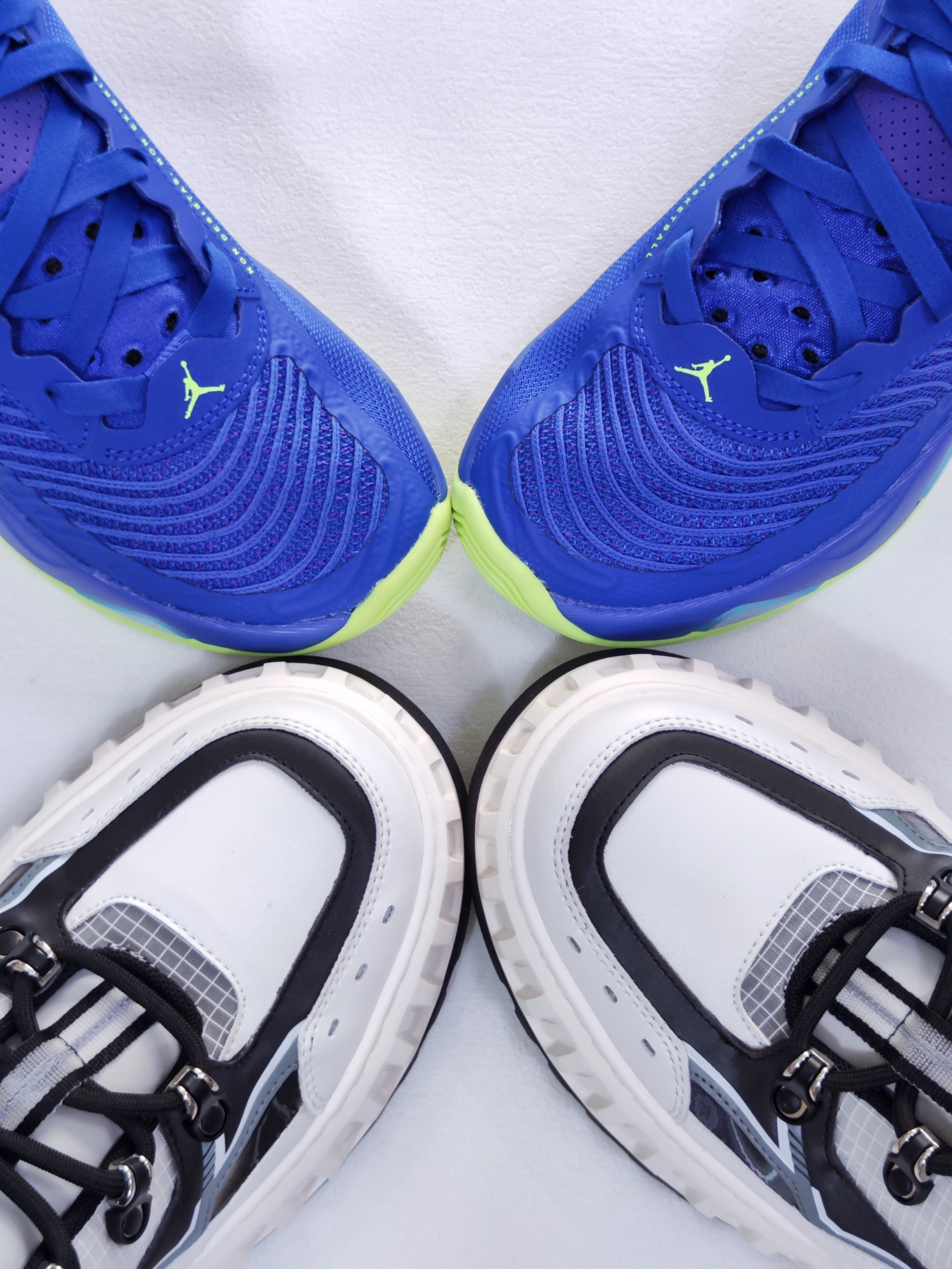 外观上,高饱和度的宝蓝主调搭配白色中底,撞色效果很亮眼,鞋身侧边的纹理装饰也让整体不单调,日常穿搭搭配运动裤或牛仔裤都很出片。材质方面,鞋面是透气网布+合成革拼接,网布区域透气性不错,合成革部分则提升了鞋面支撑性,不会有软塌的情况。 实战场景里,中底的缓震反馈比较适中,突破和急停时的场地感很清晰,外底的纹路抓地力在室内球场表现稳定,不过在室外水泥地打了几次后,外底有轻微磨损,更适合...