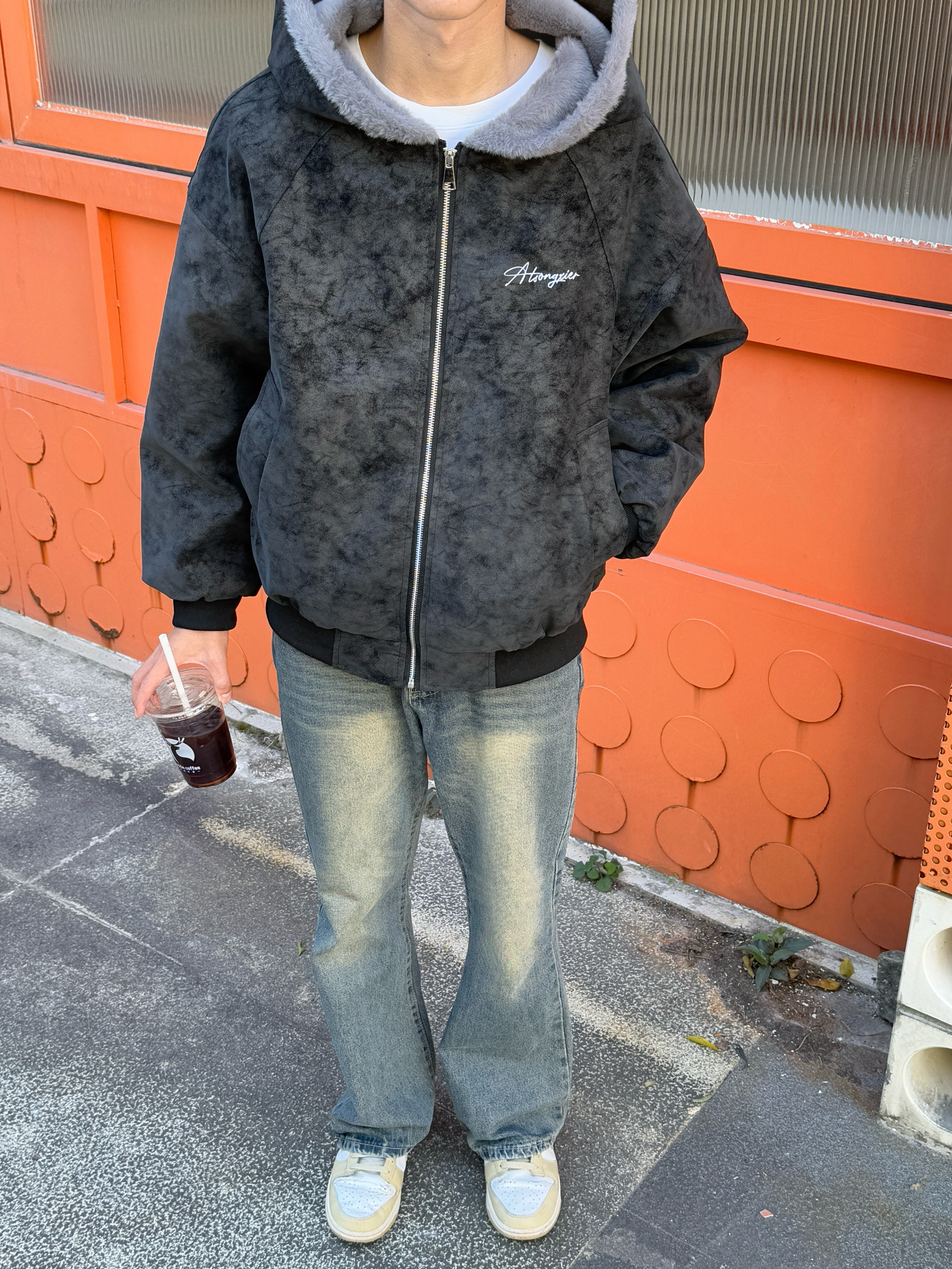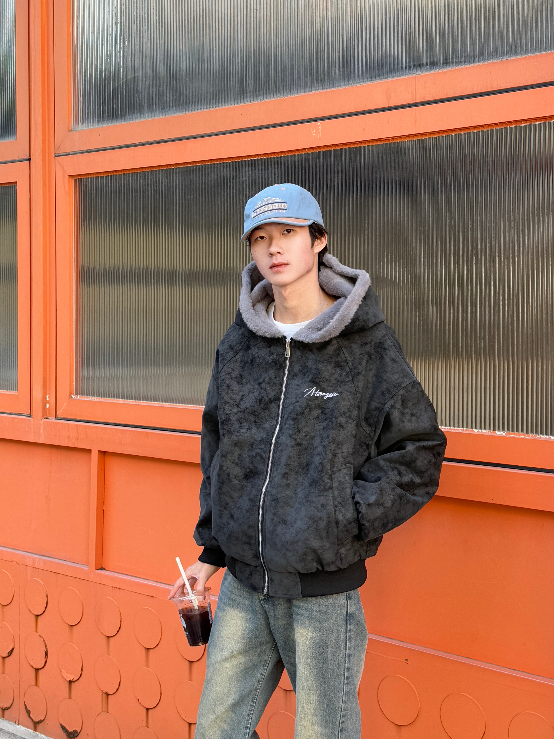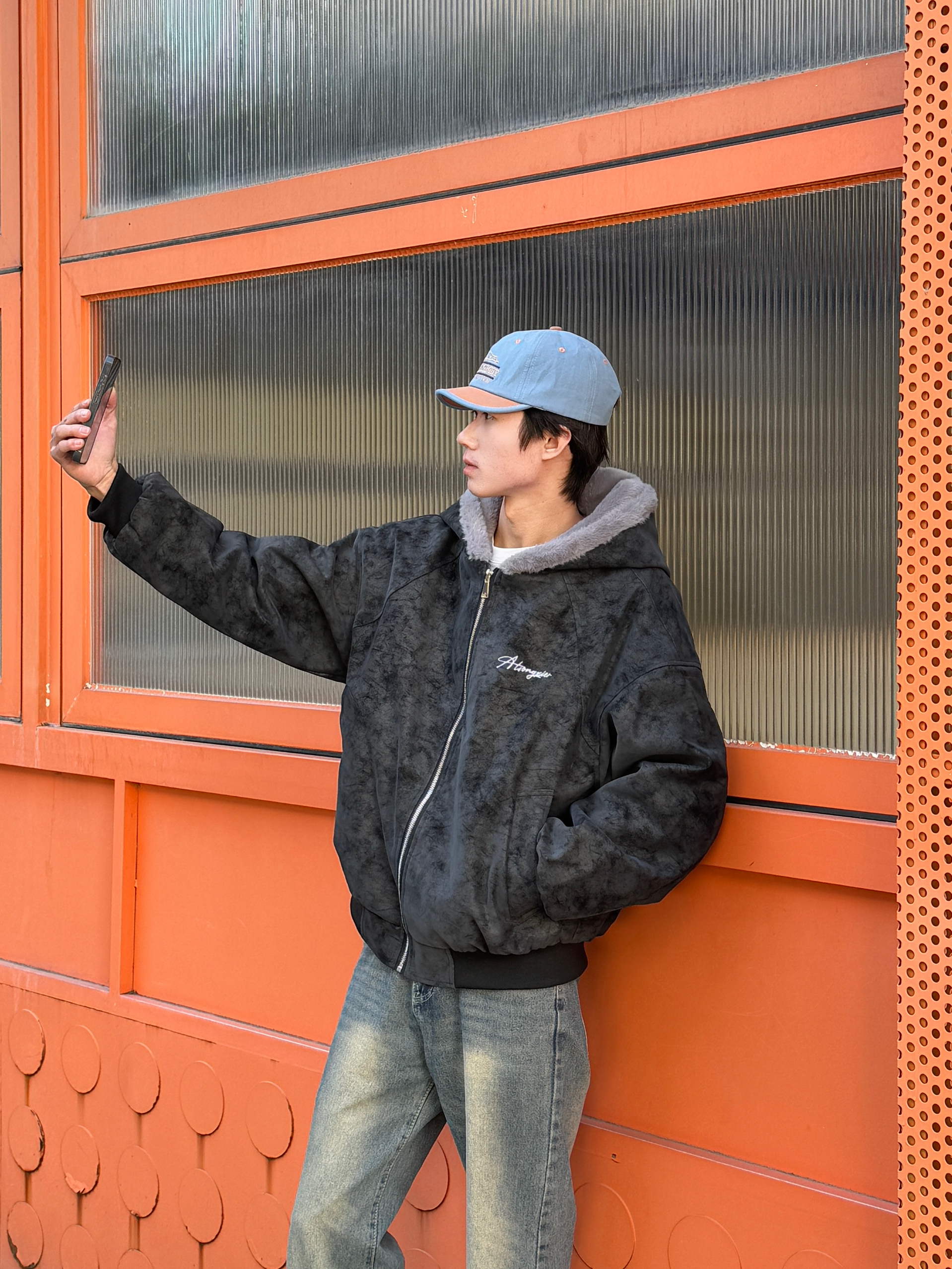 这身蓝黑配太有酷感了 蓝色棒球帽带点运动活力 黑色棉衣是亮点~ 荔枝纹皮质超有质感 连帽设计加上座山雕轮廓霸气外露 下身是同色系牛仔裤 整体色调统一又层次十足 保暖和帅气这次我全都要❄️