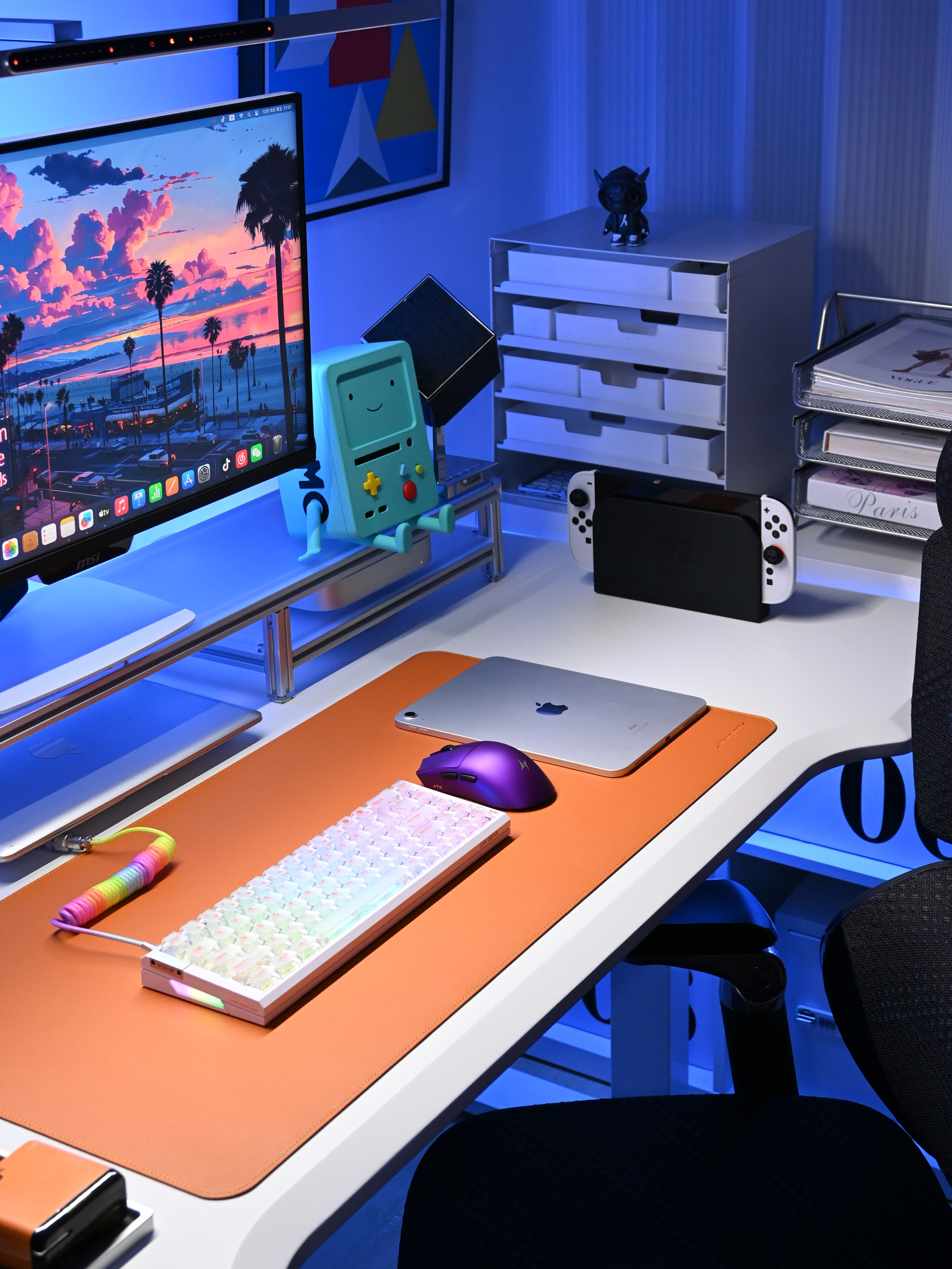 氛围感电竞桌面清单|宅家快乐角落全公开 把我的电竞小窝整理成清单啦,每一件都是日常用得上的心头好,蓝色系搭配真的越看越喜欢~ 🔹ATK RS6磁轴键盘 🔹ATK X1V2探索版 🔹极斯特透明耳机手柄支架 🔹星宇橙超大鼠标垫 🔹脑洞范小云团插排 🔹ZENIGAM亚克力增高架 🔹MSI 27寸电竞显示器 🔹花再桌面蓝牙音箱 🔹骁骑电竞人体工学椅 🔹包豪斯风格挂画 🔹DIY咖啡角 还有哪些没整理到位的,...