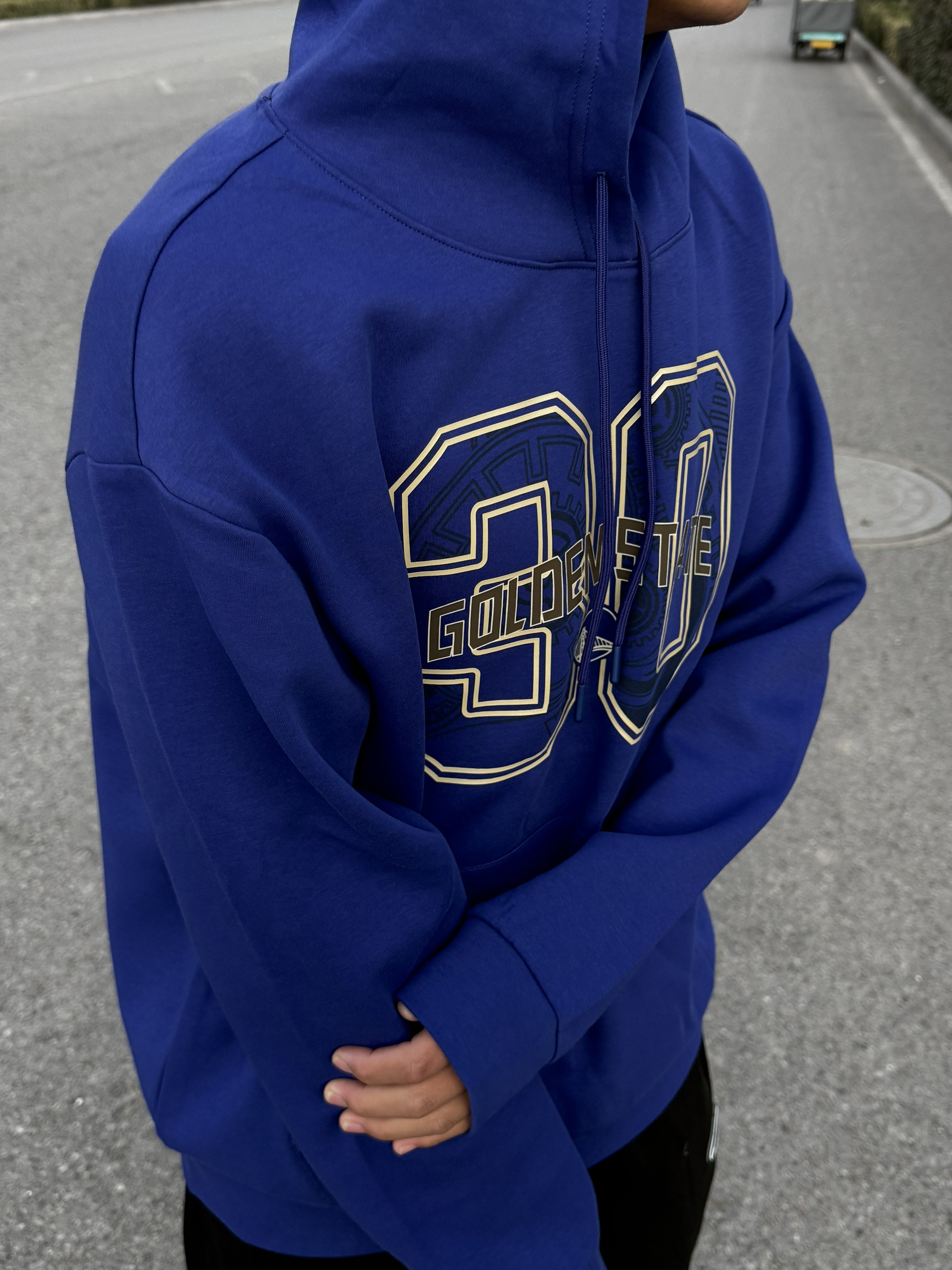 这款 NBA ON SHOW 卫衣 以金州勇士队为主题,采用亮眼皇家蓝配色 真的超级显白!! 胸前印有库里经典30号,金色线条勾勒 超有立体感针 下方“GOLDEN STATE”字样+队标,细节满分! 宽松版型+连帽设计 日常穿搭超舒适,轻松打造美式街头风 库里粉丝必入,穿上就是球场焦点!