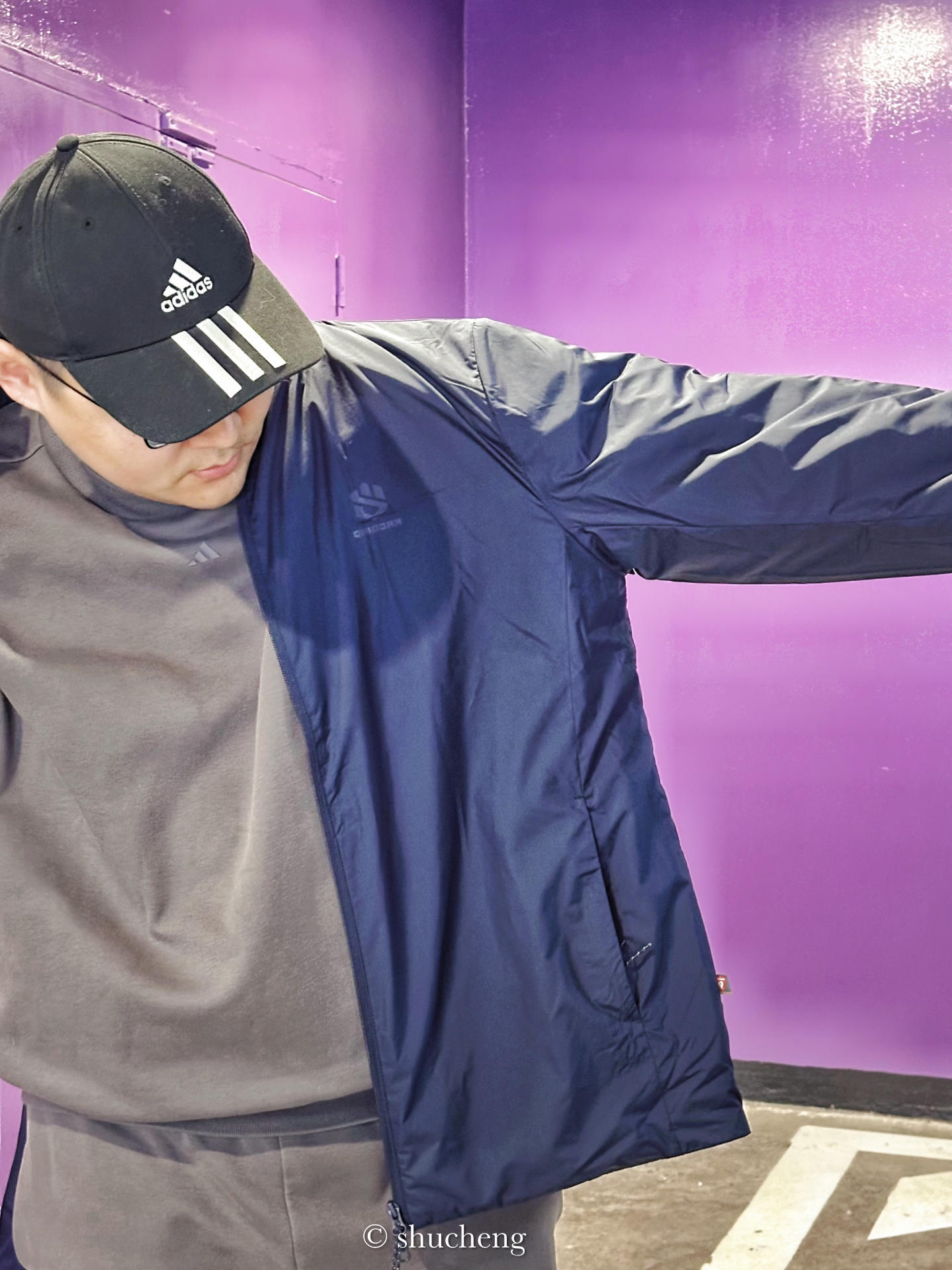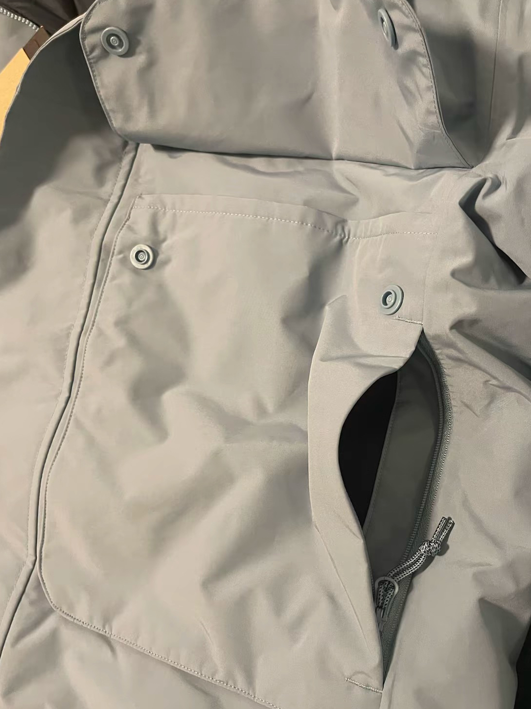 照片拍出来有些灰了,实物是很漂亮的颜色,类似蒂夫尼蓝。南方的天气应该可以过冬,使用P棉,设计为宽松的款式里面可搭配厚衣物,口袋丰富细节拉满,此为男款M码,有需要的可以参考。
