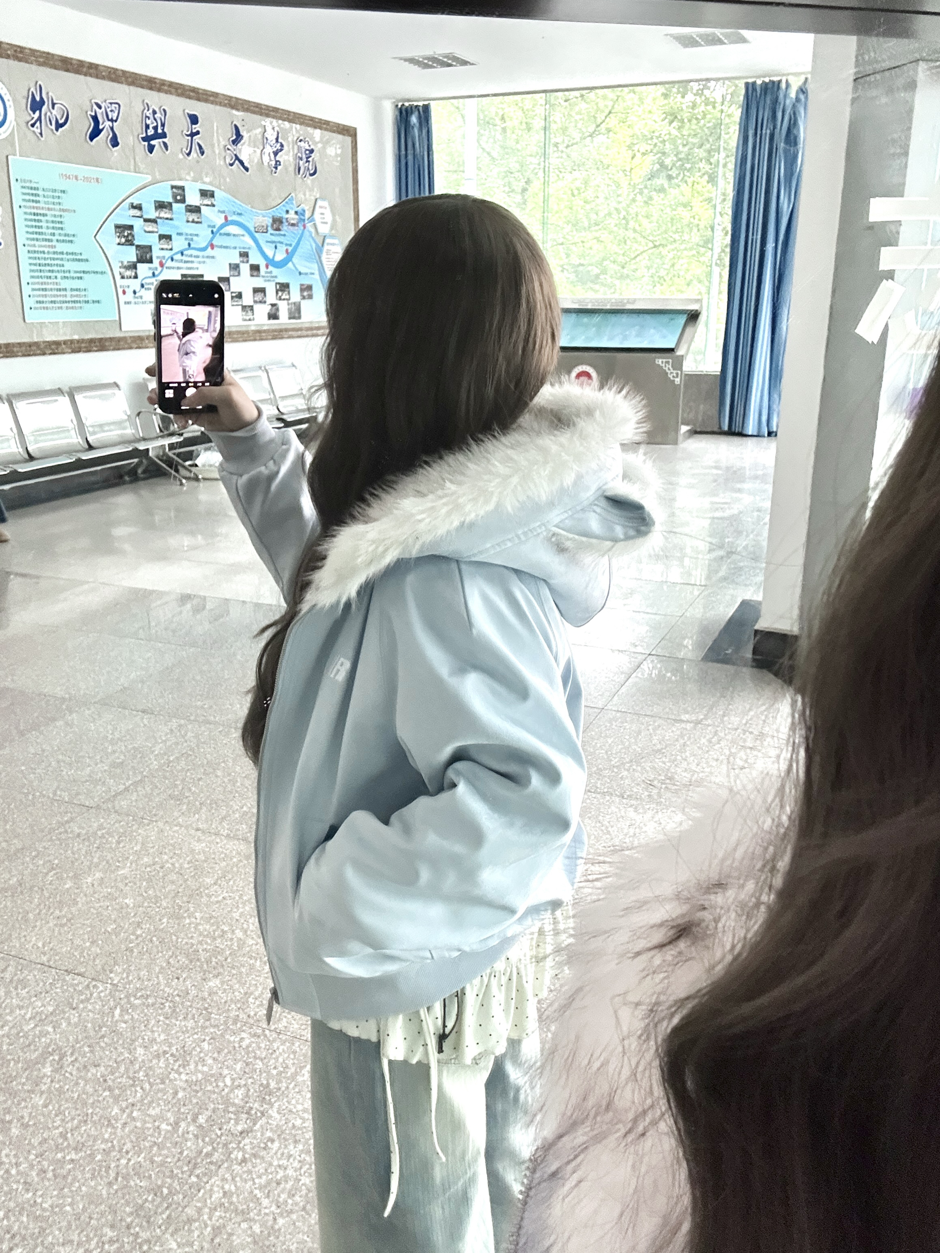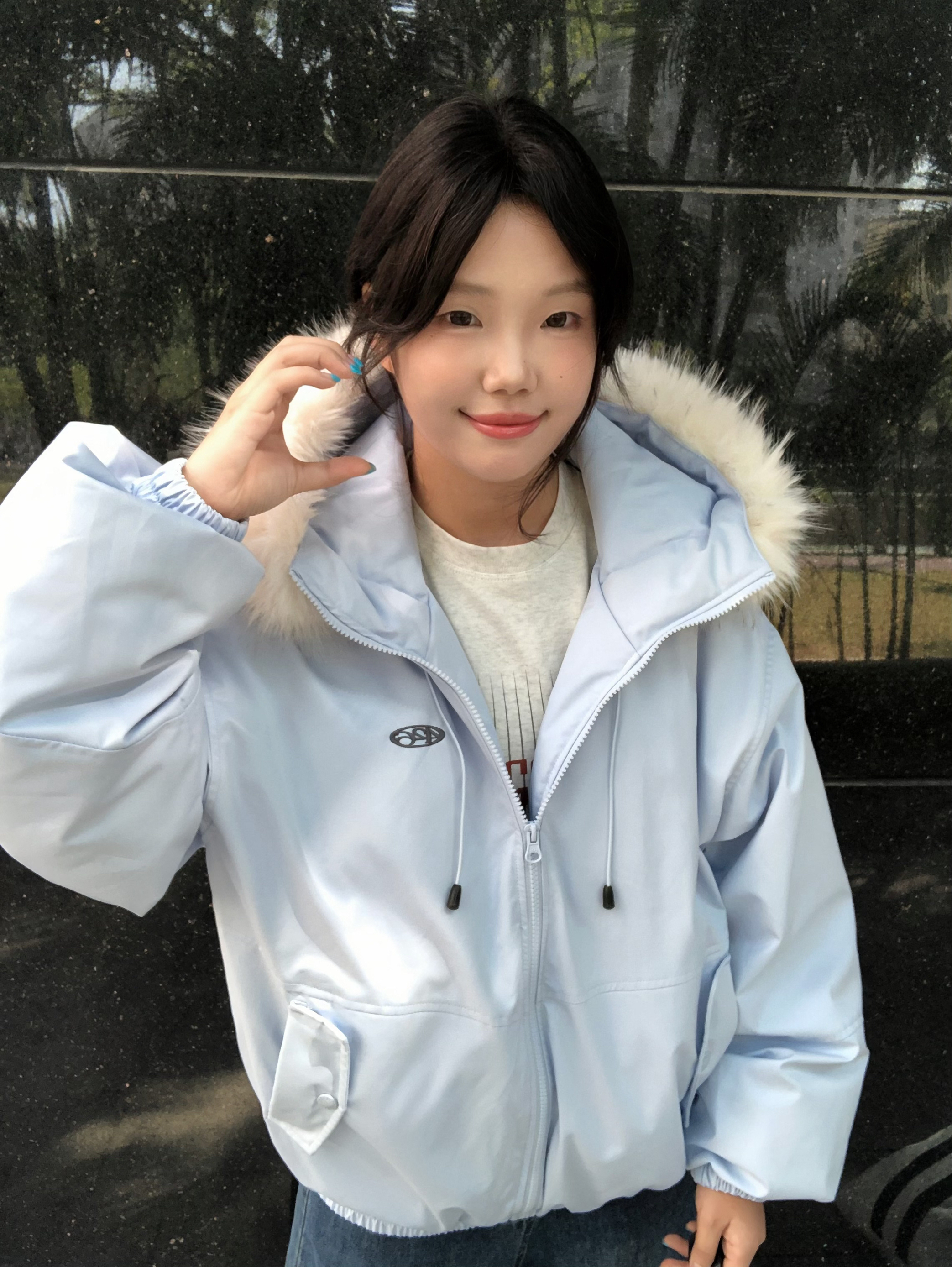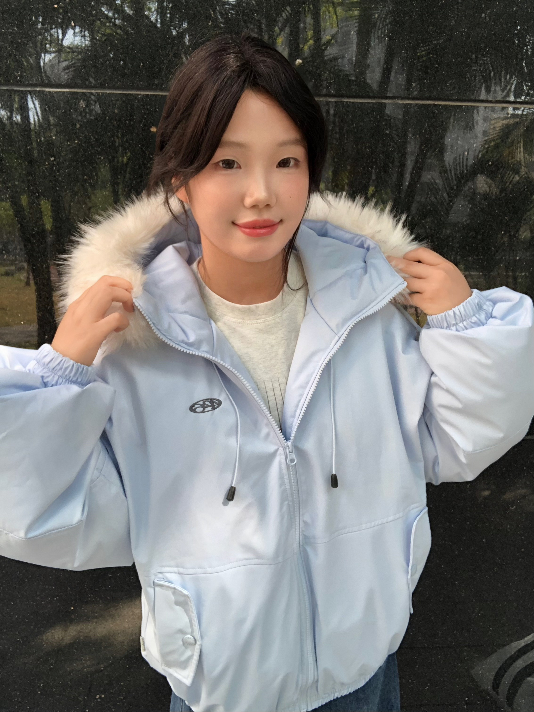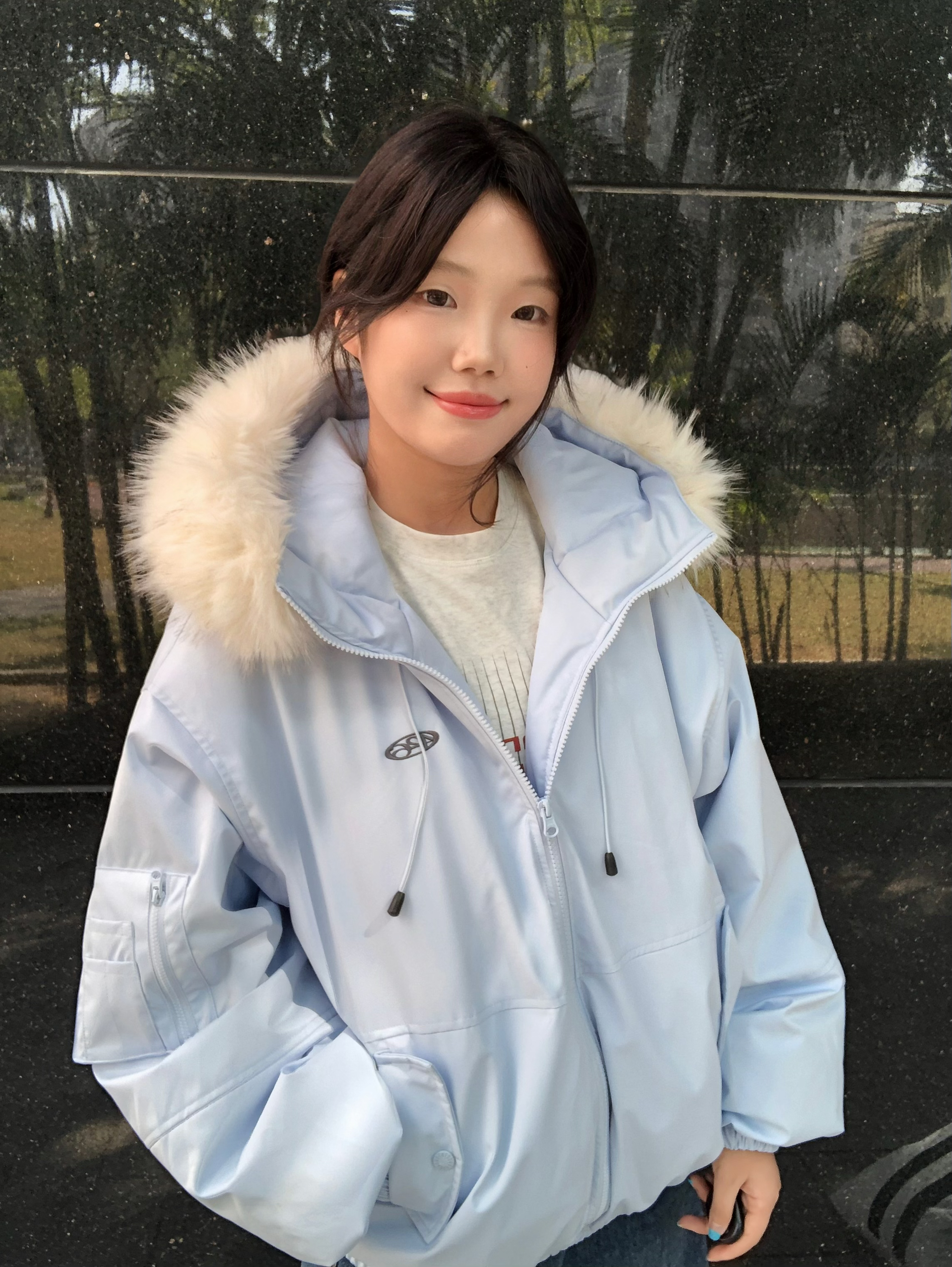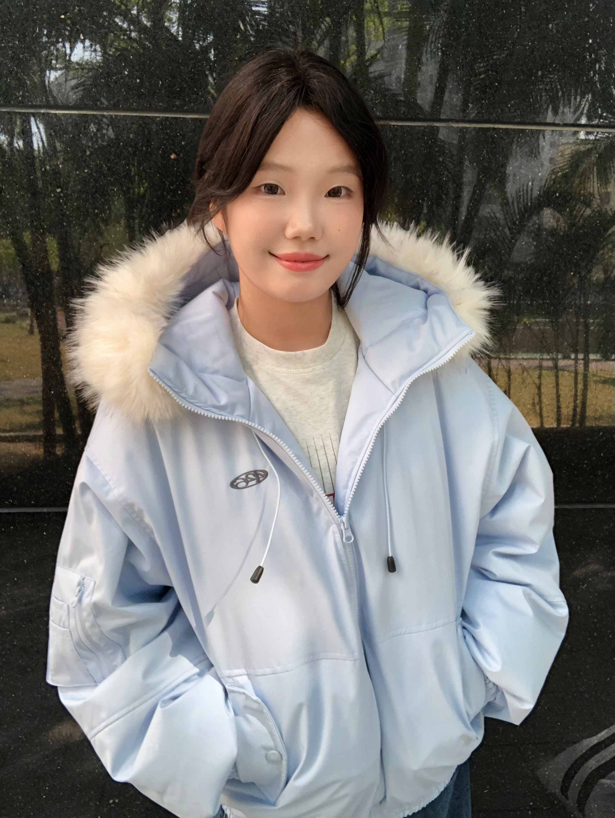 做一天赵露思女孩~ 露思同款浅蓝羽绒服的奶白毛领 软乎乎不扎脸浅蓝配色显白又温柔 上身轻飘飘不压肩 毛领蓬蓬松松显脸小 面料滑溜溜抗风还耐磨配色还特清新 奶白色毛领和浅蓝撞色超好看 163/100M