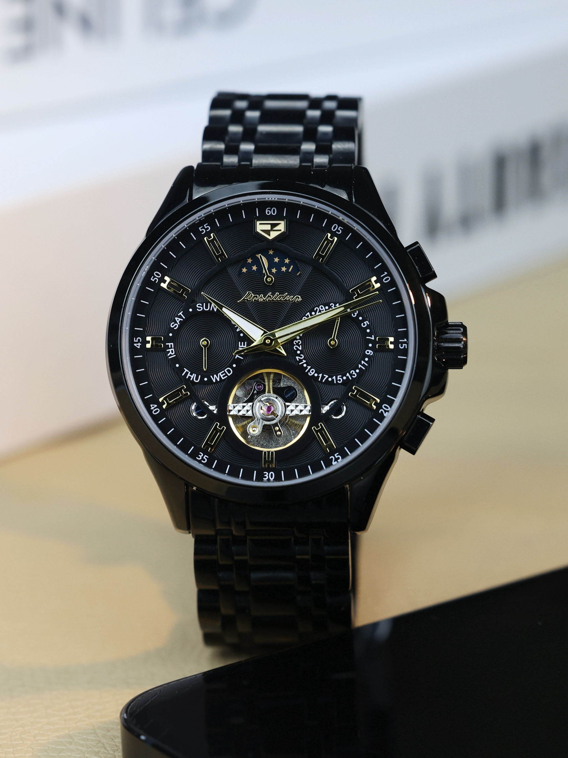 这块儿机械表真的挺有质感,给我的感觉就是手腕上的荷尔蒙,就说这镂空机械视觉和镂空框架上的鱼鳞纹理,哪个男生看到不心动?反正我是把持不住😂