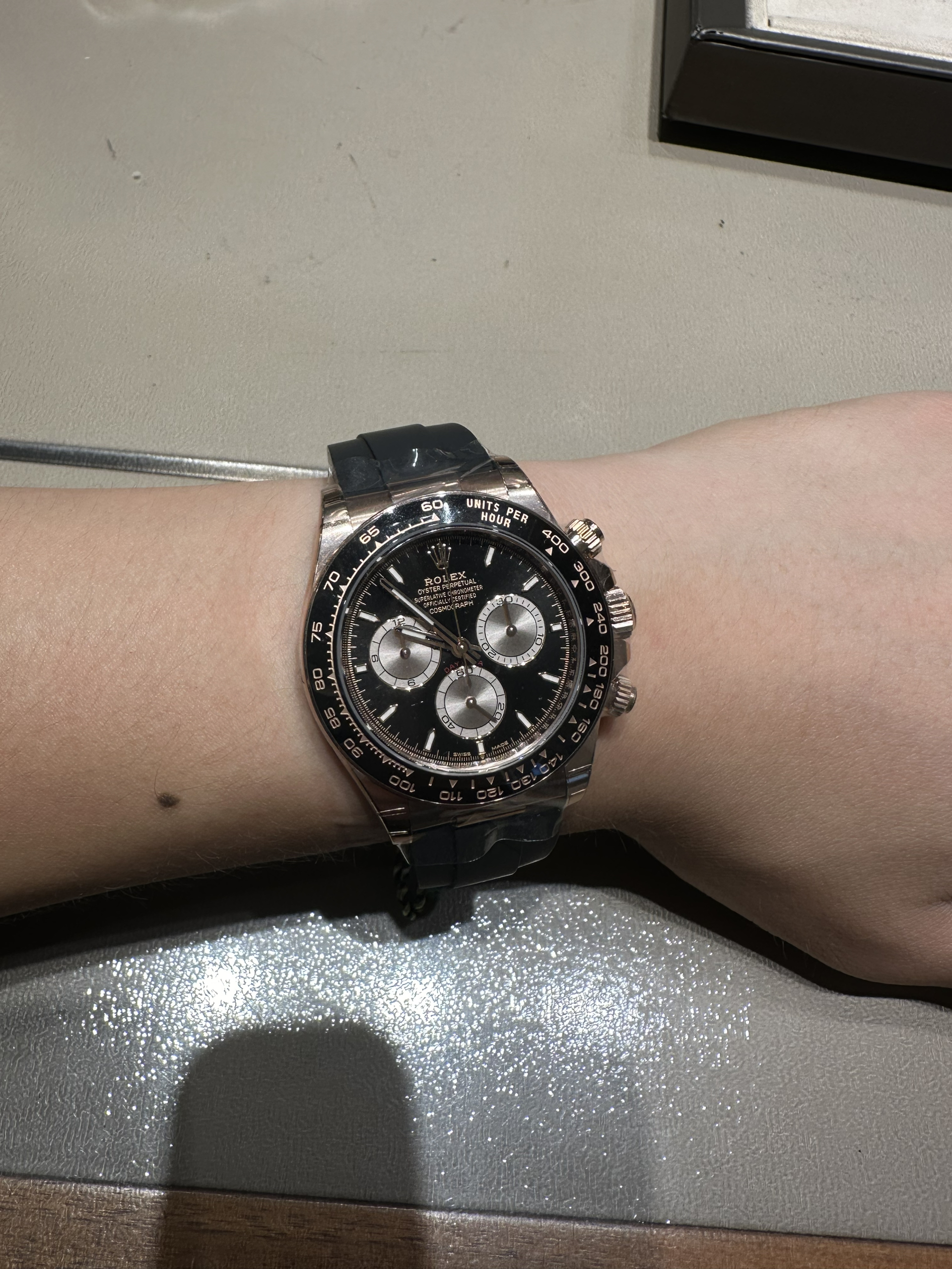 这块机械表的中框看着好舒服,就是从路人视角看过去,如果从打字或者骑车的视角看过去就显得高雅了,而我更喜欢的是正面角度,中规中矩的显得沉稳,真是爱了✌️