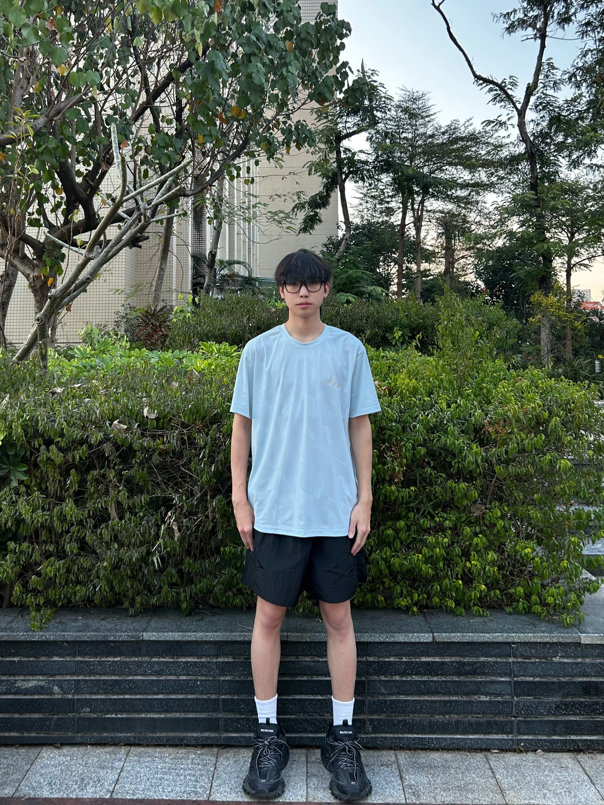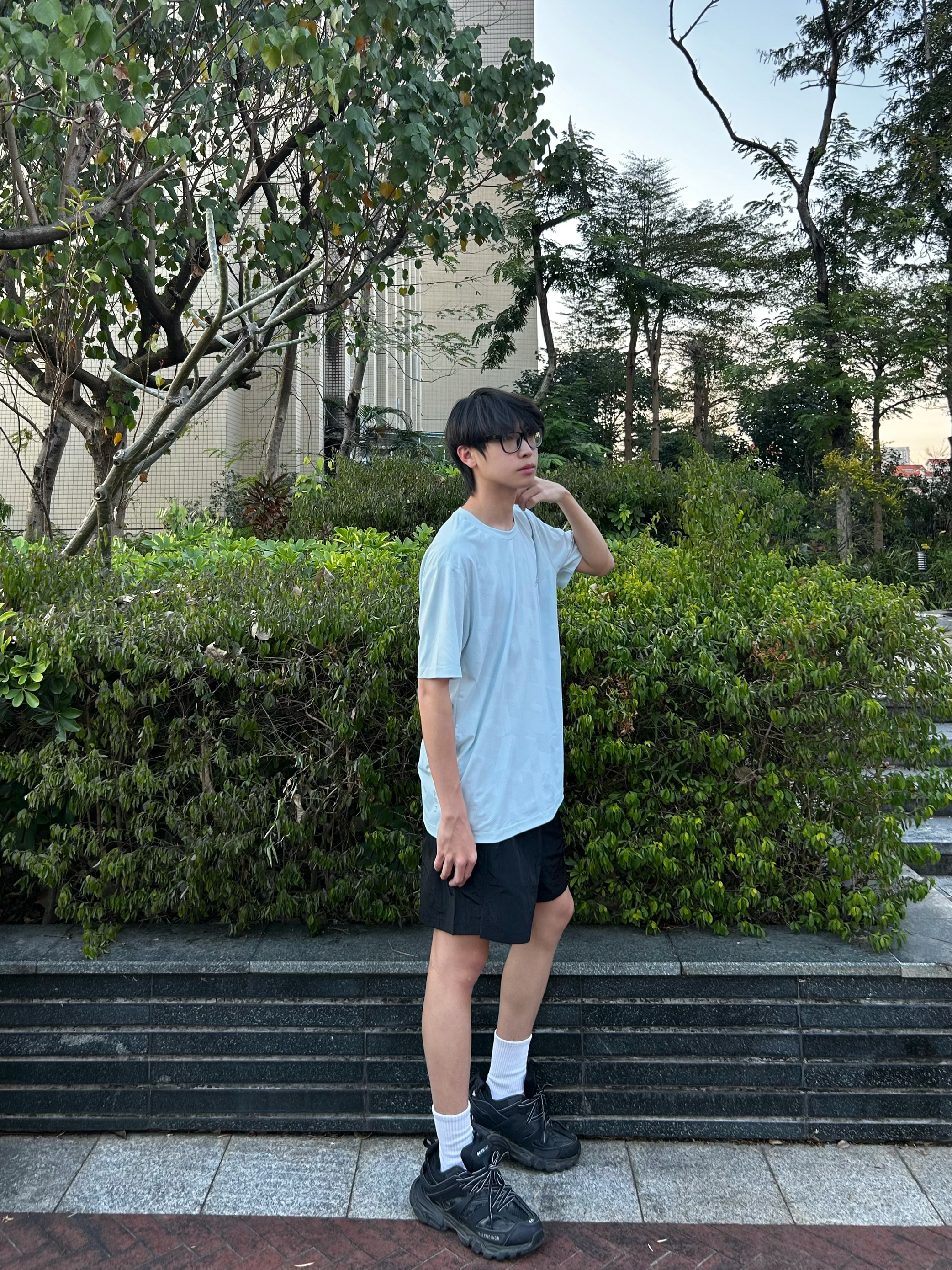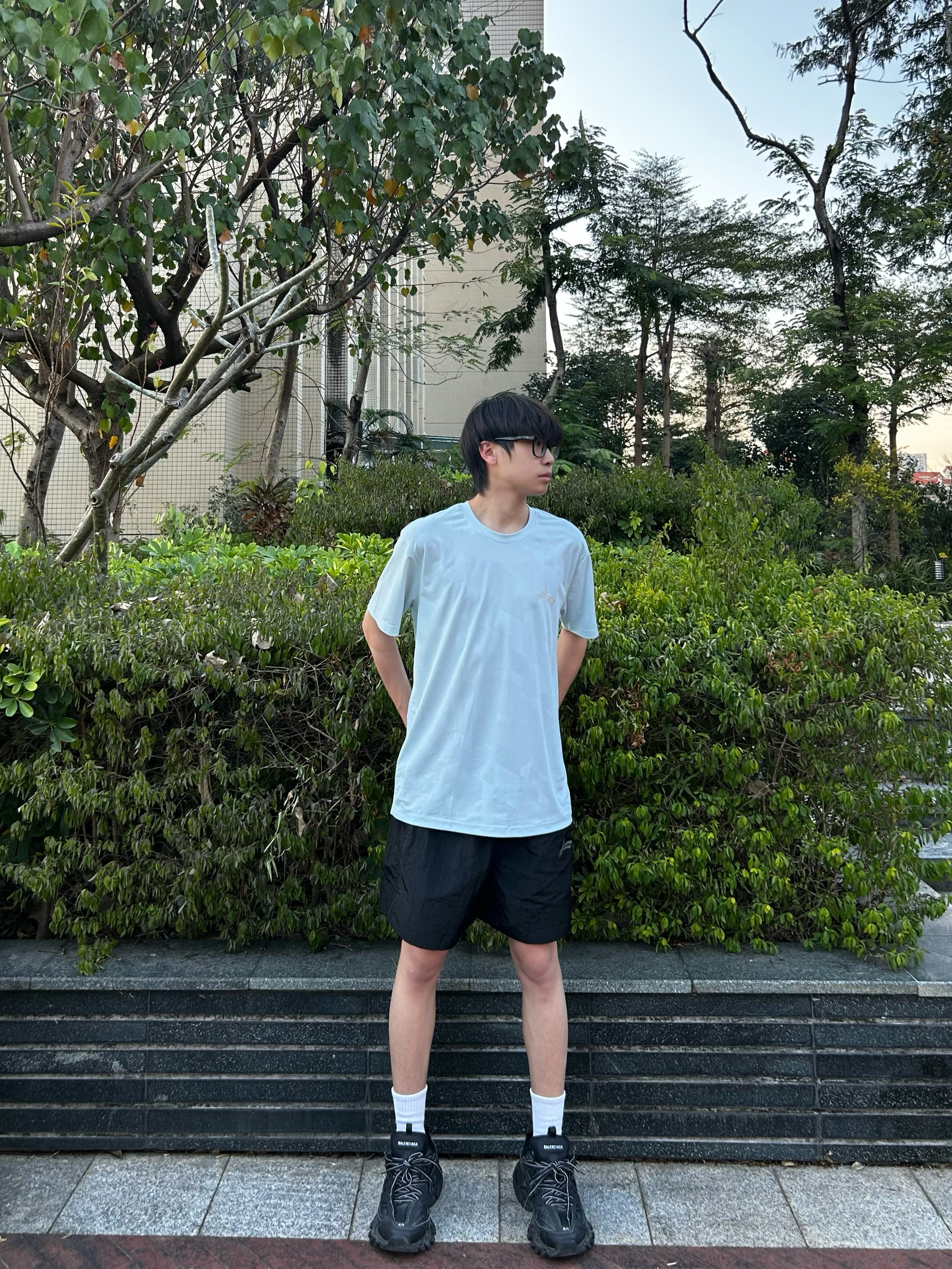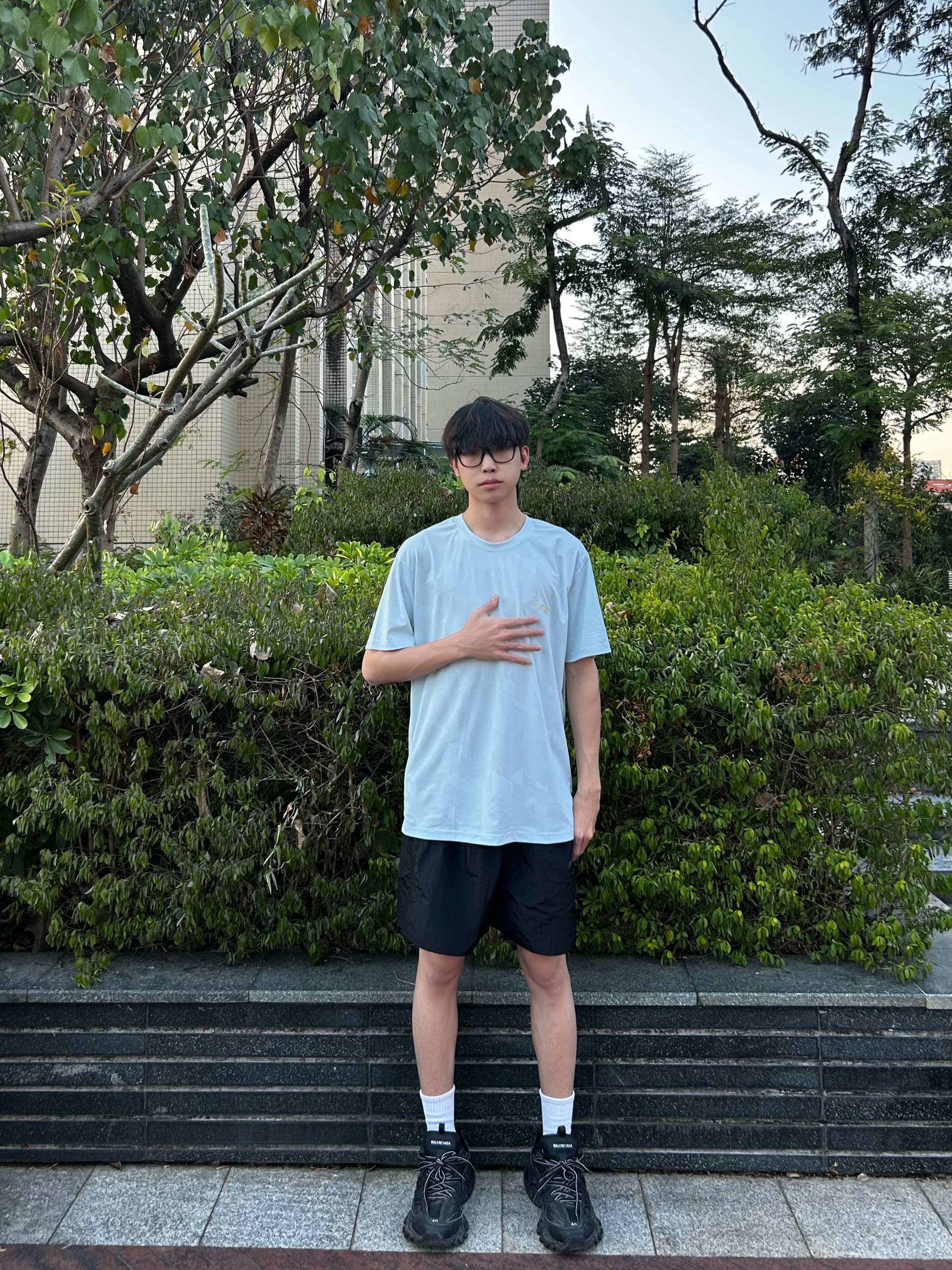 今天穿的沃兰迪这套运动穿搭太戳我了!浅蓝速干T恤上身巨透气,出汗也不黏糊,版型宽松但不显垮,搭配黑色运动短裤刚好露出腰线,日常出街或体测都能打。鞋子虽然是板鞋鞋型,但脚感软弹,走一下午都不累脚~整体配色干净清爽,体育生这么穿真的很加分!