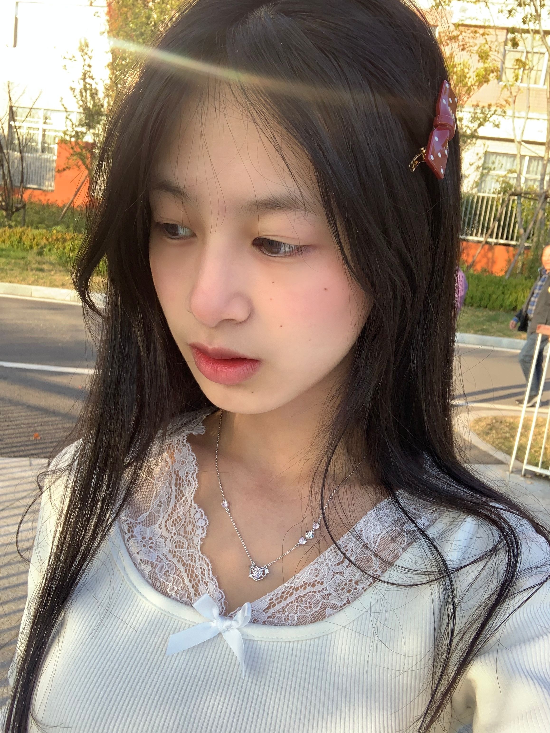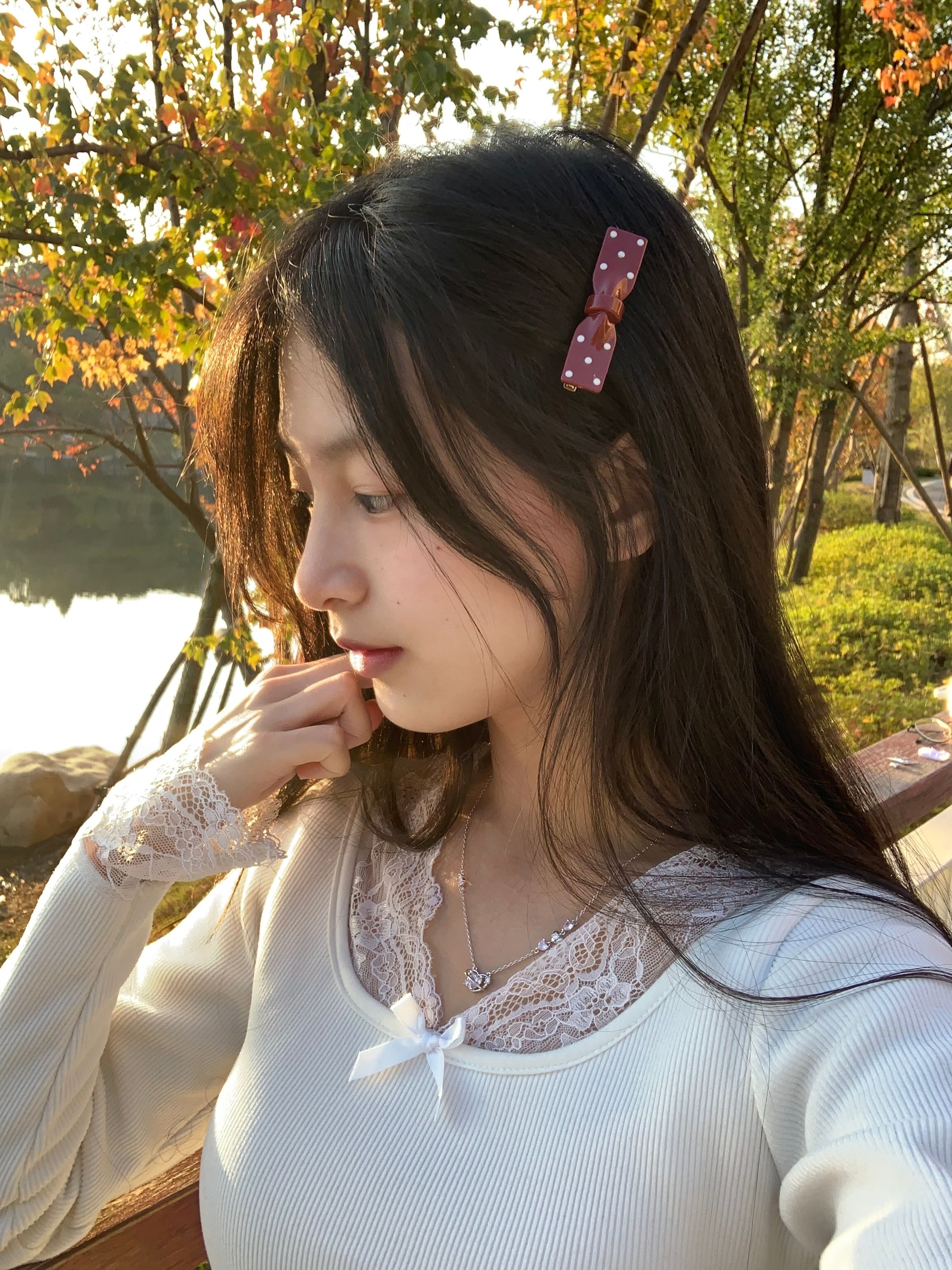 最近天气很好,在秋意满满的公园随手一拍,发现这条Clect粉心项链真的太会啦!银色链条上不仅有粉色爱心,各自两边还有小爱心的装饰物,在阳光下buling buling的,精致又有氛围感 我搭配了一件带蕾丝花边的白上衣,干净又显气质,微微露出锁骨,让项链成为整套 Look的点睛之笔,不管是日常逛街还是出去探店拍照,不能悄悄提升氛围感,把心情也变得明亮起来~ 这种项链你们更喜欢银色的还是,吊坠是粉色的...