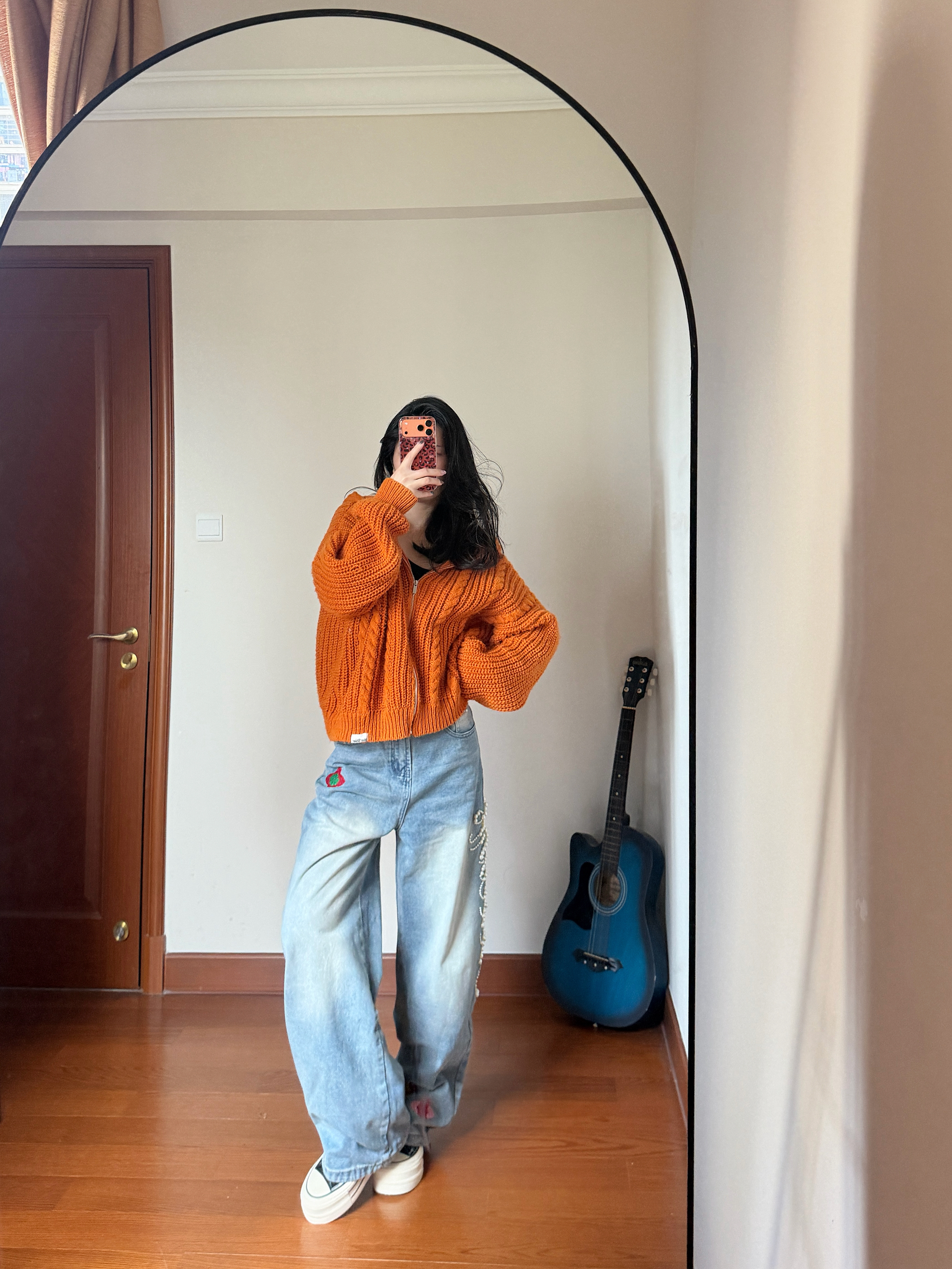 好久没有买过那么鲜艳的衣服啦~ 橙色穿着活力满满的!! 搭配着宽松小珍珠➕厚底帆布鞋 整体感觉也太酷啦! 橙色外套在广东这个吹着微风穿刚刚好😃 通勤穿显年轻 上学穿更适合🈴