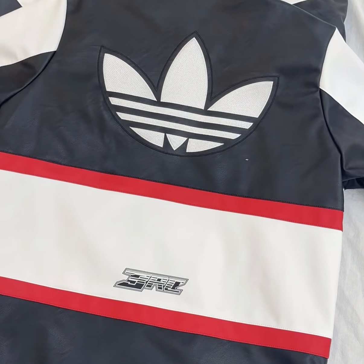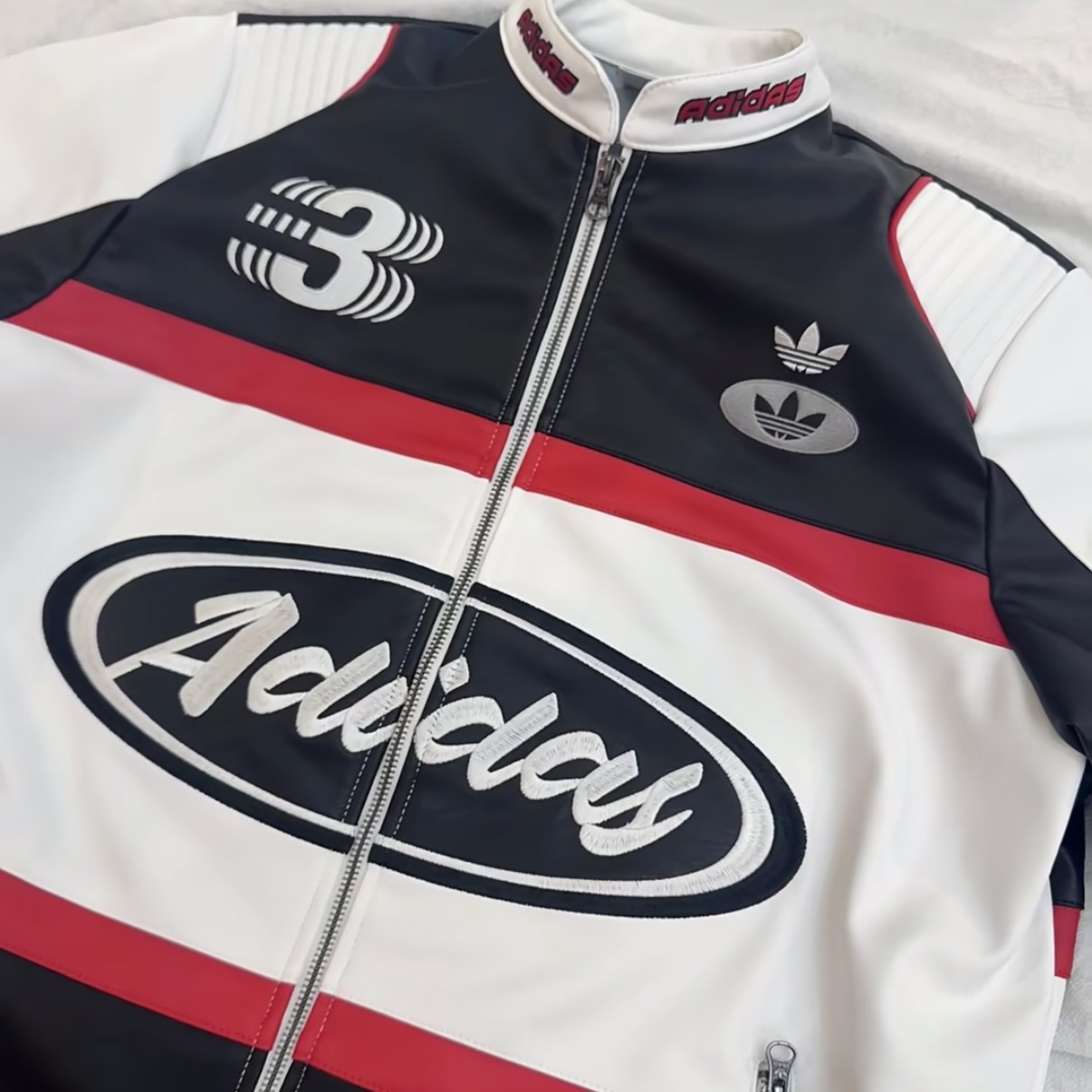 说唱型格,皮质加持!这身Gali同款阿迪达斯赛车棒球服,是你衣橱里缺失的硬核态度单品: 🔹 明星舞台同款:一键复制Gali的舞台气场与高级街头感,穿搭自带锋芒。 🔹 赛车基因设计:经典黑白撞色条纹与品牌标识,注入速度与激情视觉语言,辨识度满分。 🔹 优质皮质面料:选用质感皮革打造,防风有型,兼顾经典棒球服廓形与现代硬朗风格。 🔹 一穿定调造型:内搭简约T恤或连帽卫衣,瞬间提升整体层次,轻松掌控复古...