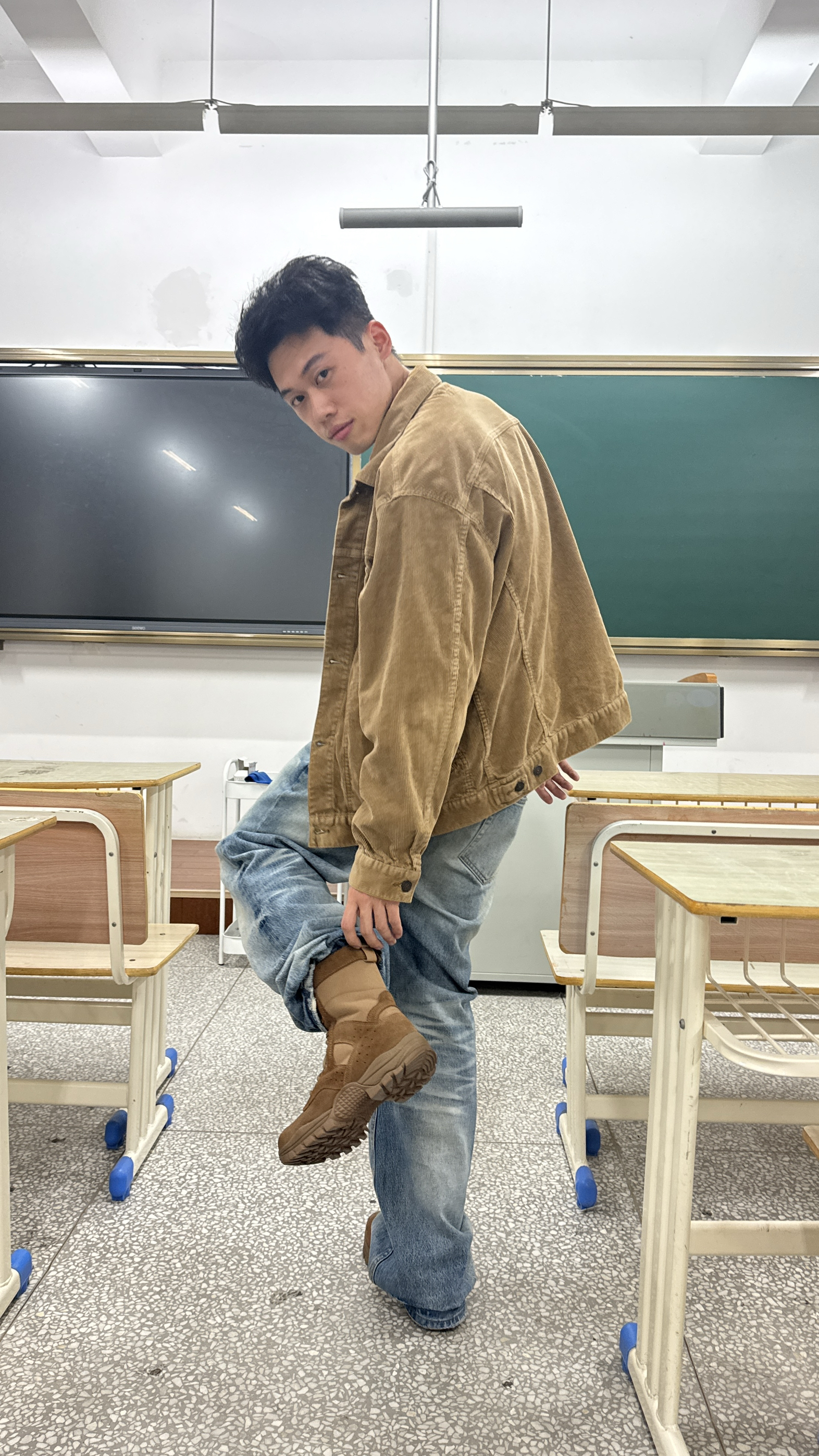 我的身高175cm|体重65kg 每日分享一套既实穿做工有好的单品 我的上衣👔来自品牌优衣库是一个棕色的灯芯绒夹克,是一个合身正肩的版型(M码) 我的下装👖来自品牌taichiism水洗过度猫须蜂窝都很漂亮,这件牛仔裤非常的挺括有型(m码) ok那么今天的校园ootd就这样啦~