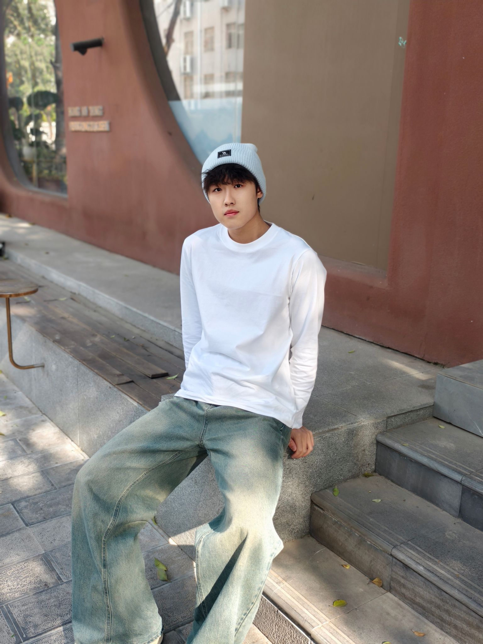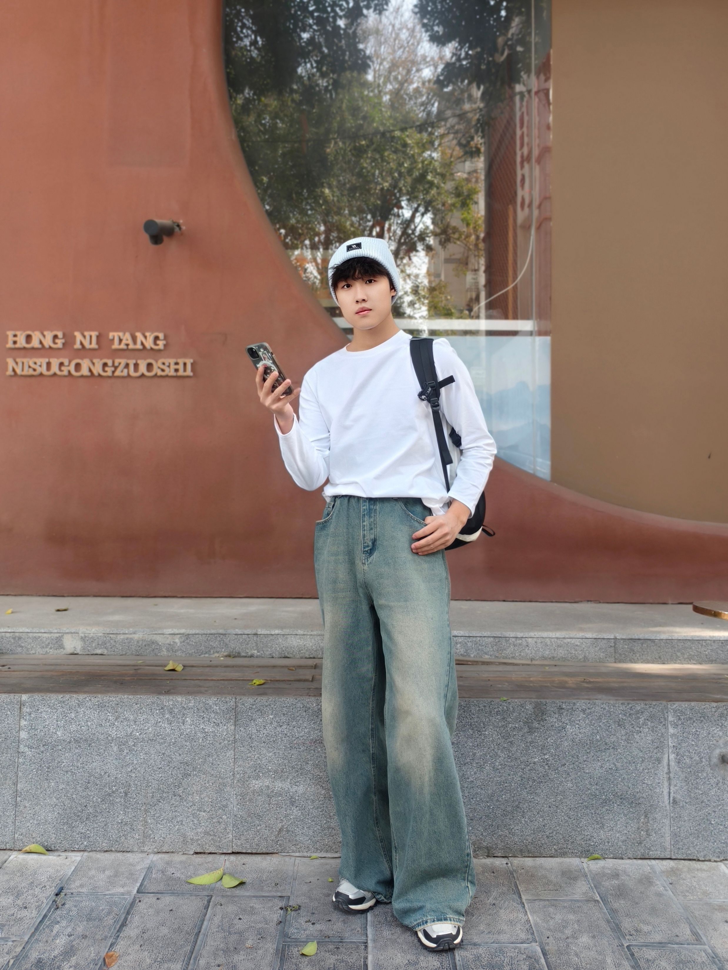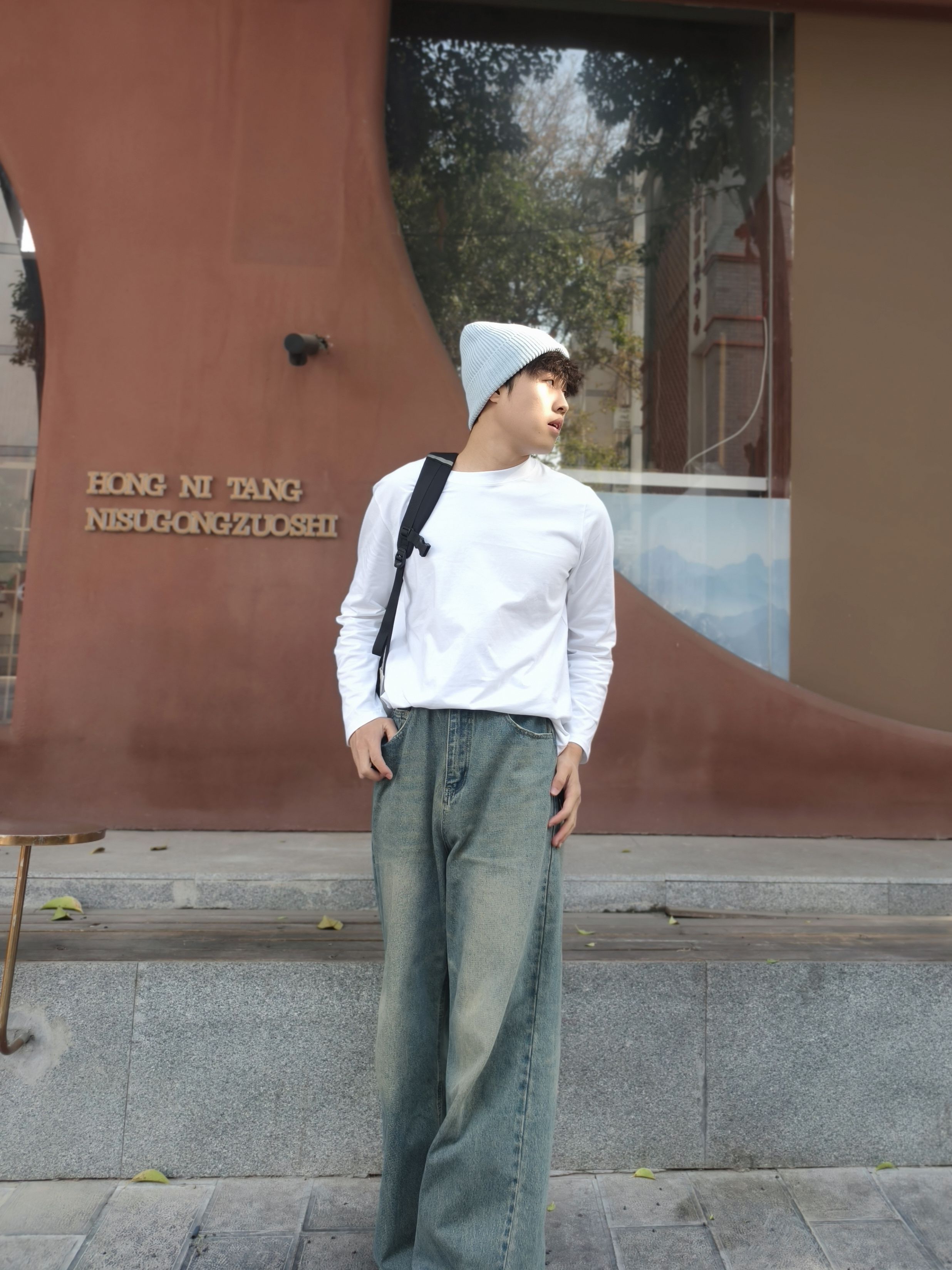 基础款白长袖真的是万能搭,简约又干净 配上水洗阔腿牛仔裤,垂坠感拉满还显腿长 再搭个针织冷帽和斜挎包,细节感直接拉满 一套穿下来清爽又随性,日常出街超合适