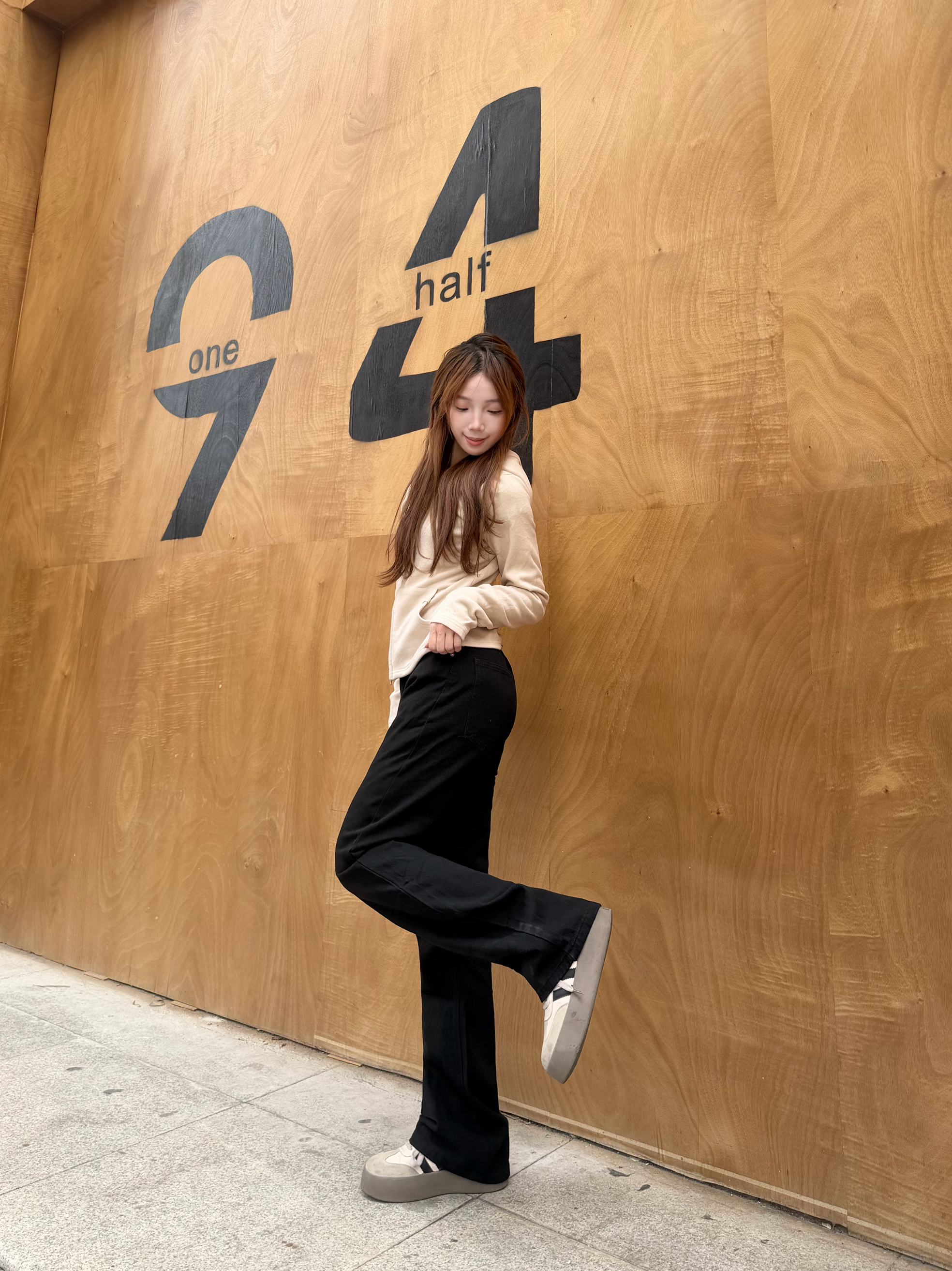 轻松拉长腿部比例 微喇的裤型从膝盖处自然散开 不仅能修饰腿型、藏住腿部小瑕疵 还能适配运动鞋、乐福鞋等多种鞋型 面料不易皱,垂坠感拉满 无论是搭配休闲卫衣还是修身针织衫 都能穿出利落又显高的效果