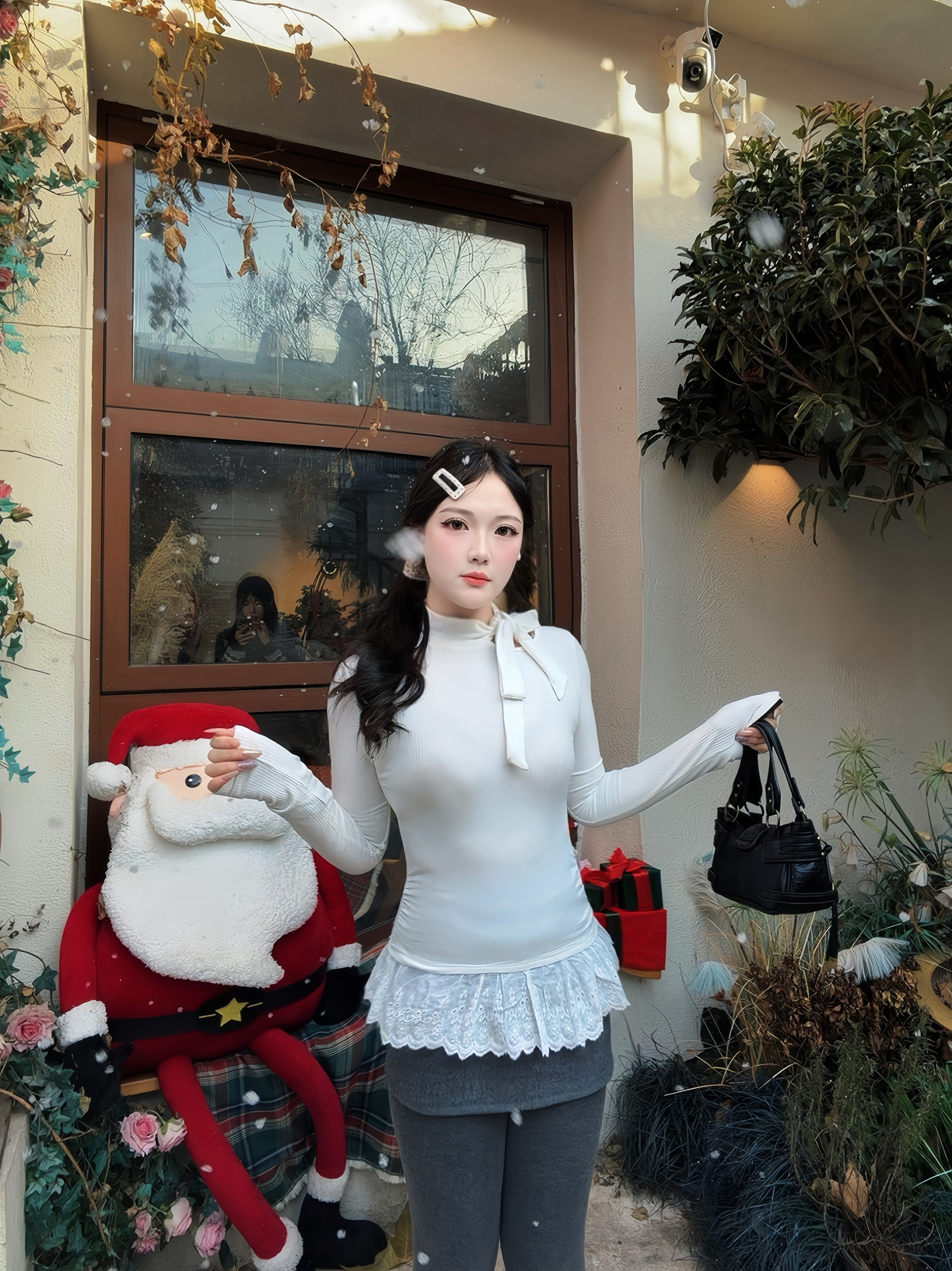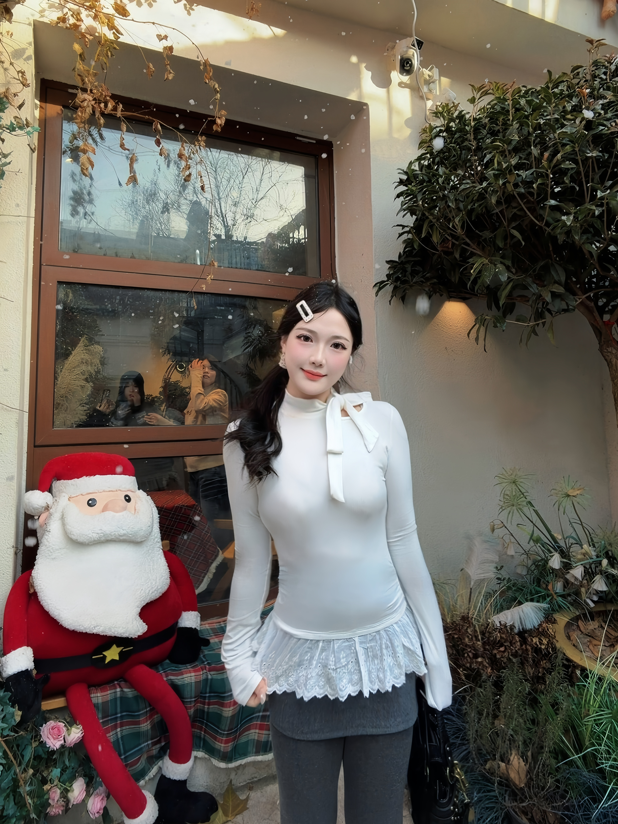 挖到宝的冬日内搭!这件白色蝴蝶结针织上衣直接把甜妹氛围拉满✨ 坑条面料软糯亲肤,贴身穿不扎肉,修身剪裁超显身材曲线,一点不紧绷~领口的蝴蝶结设计是点睛之笔,可盐可甜,下摆蕾丝边还能遮小肚腩,细节感拉满! 搭配灰色紧身裤+小皮鞋,甜酷感拿捏,单穿内搭都好看,百元价位穿出千元质感,性价比绝了👍