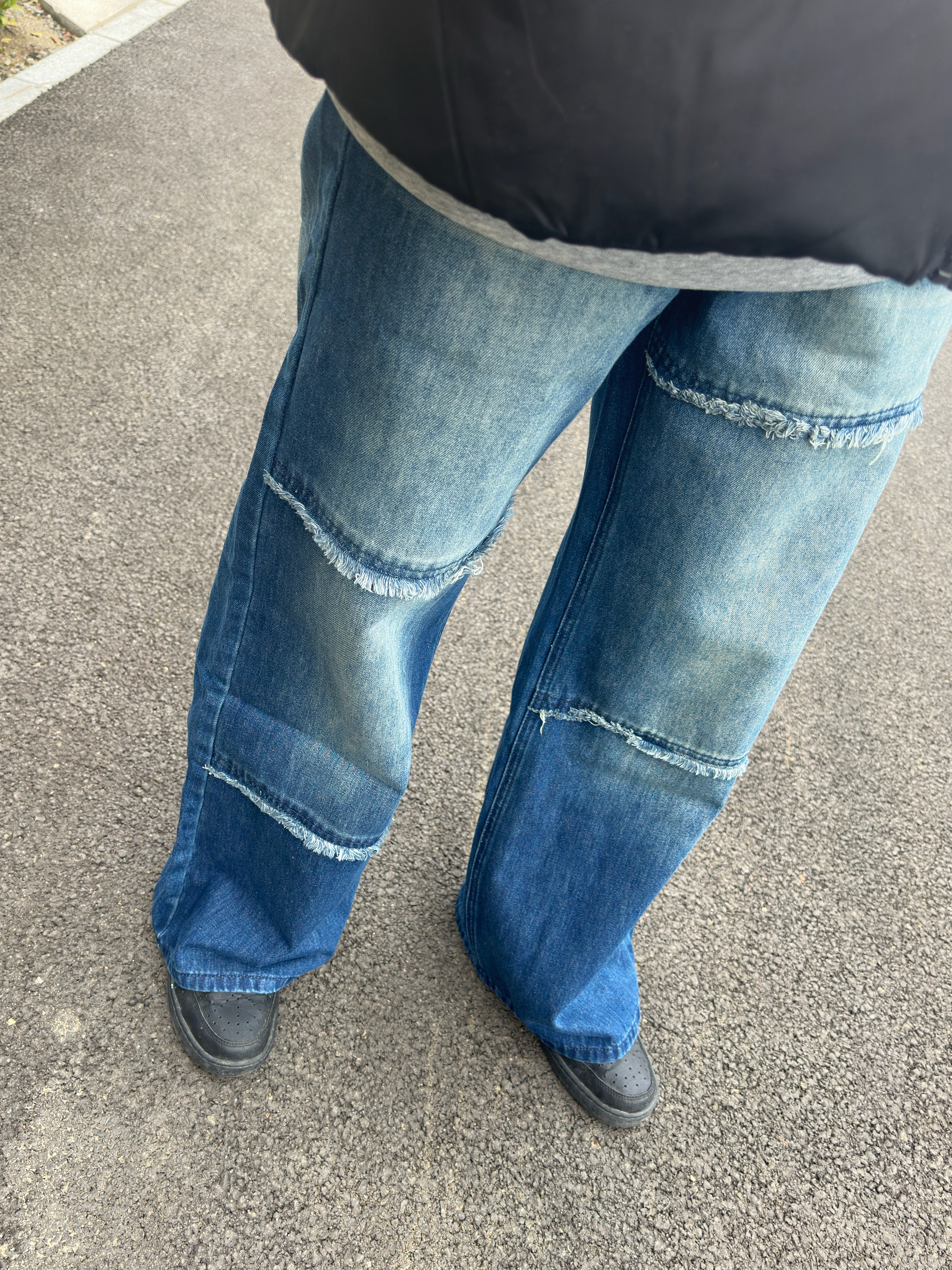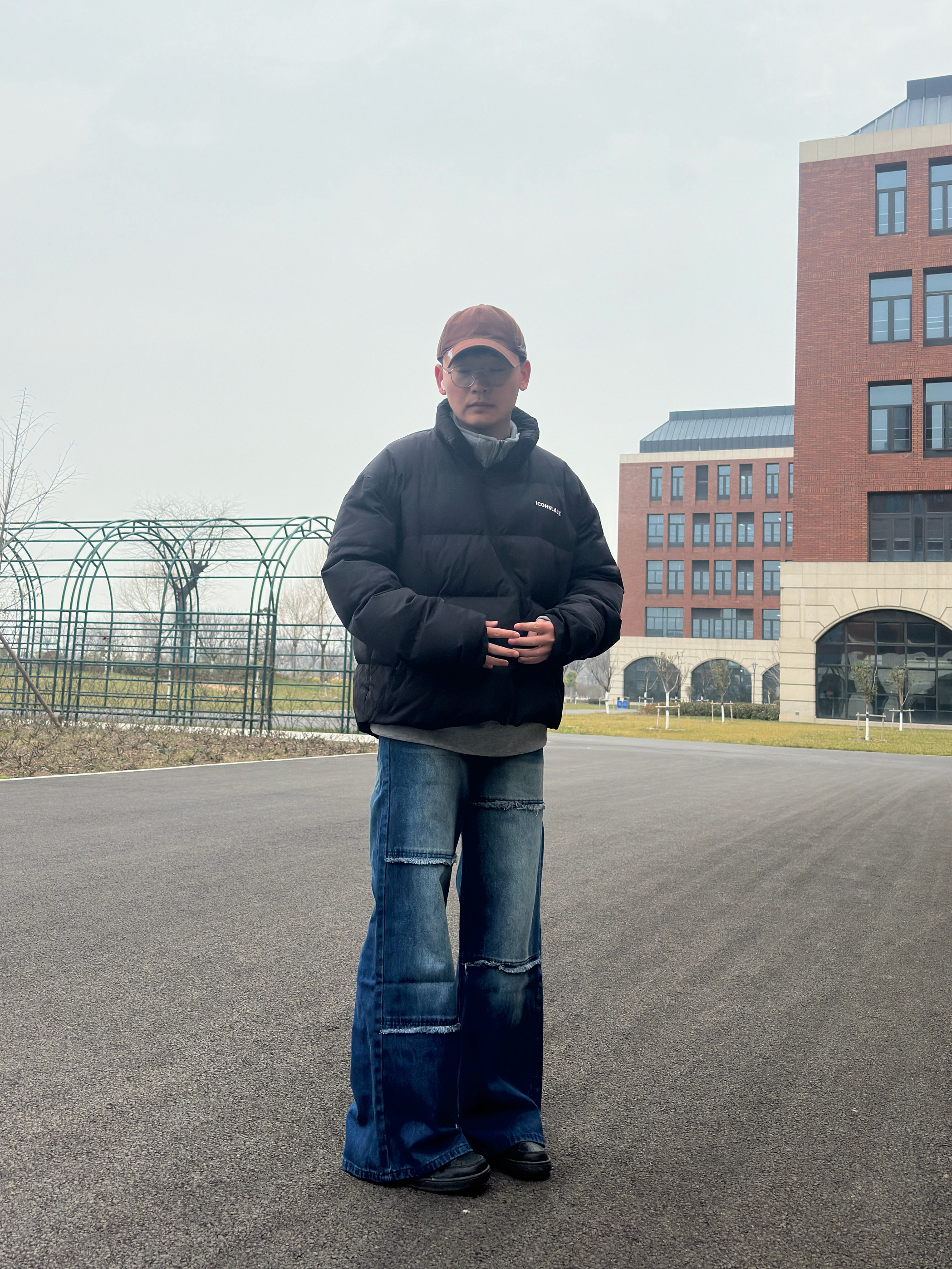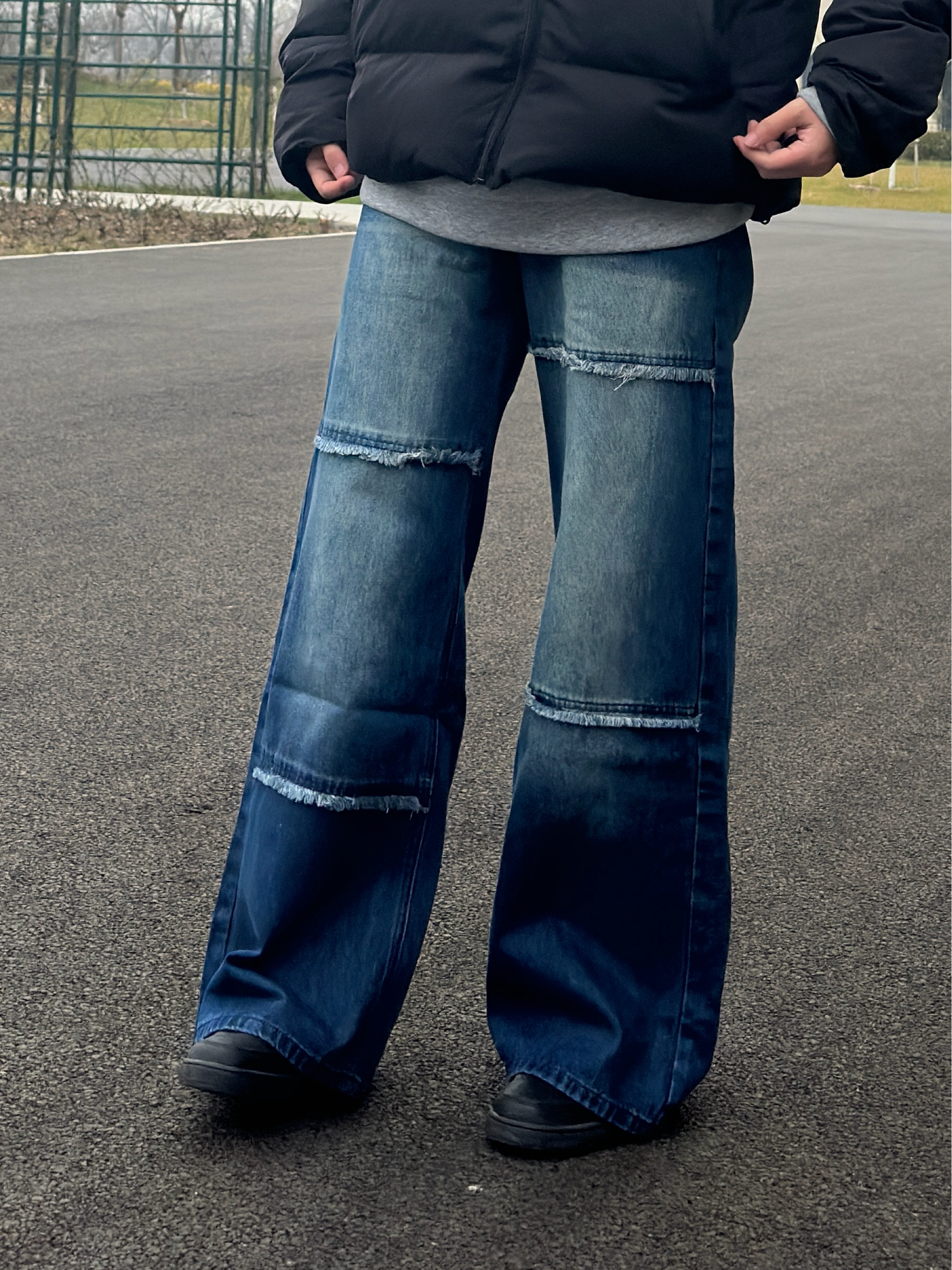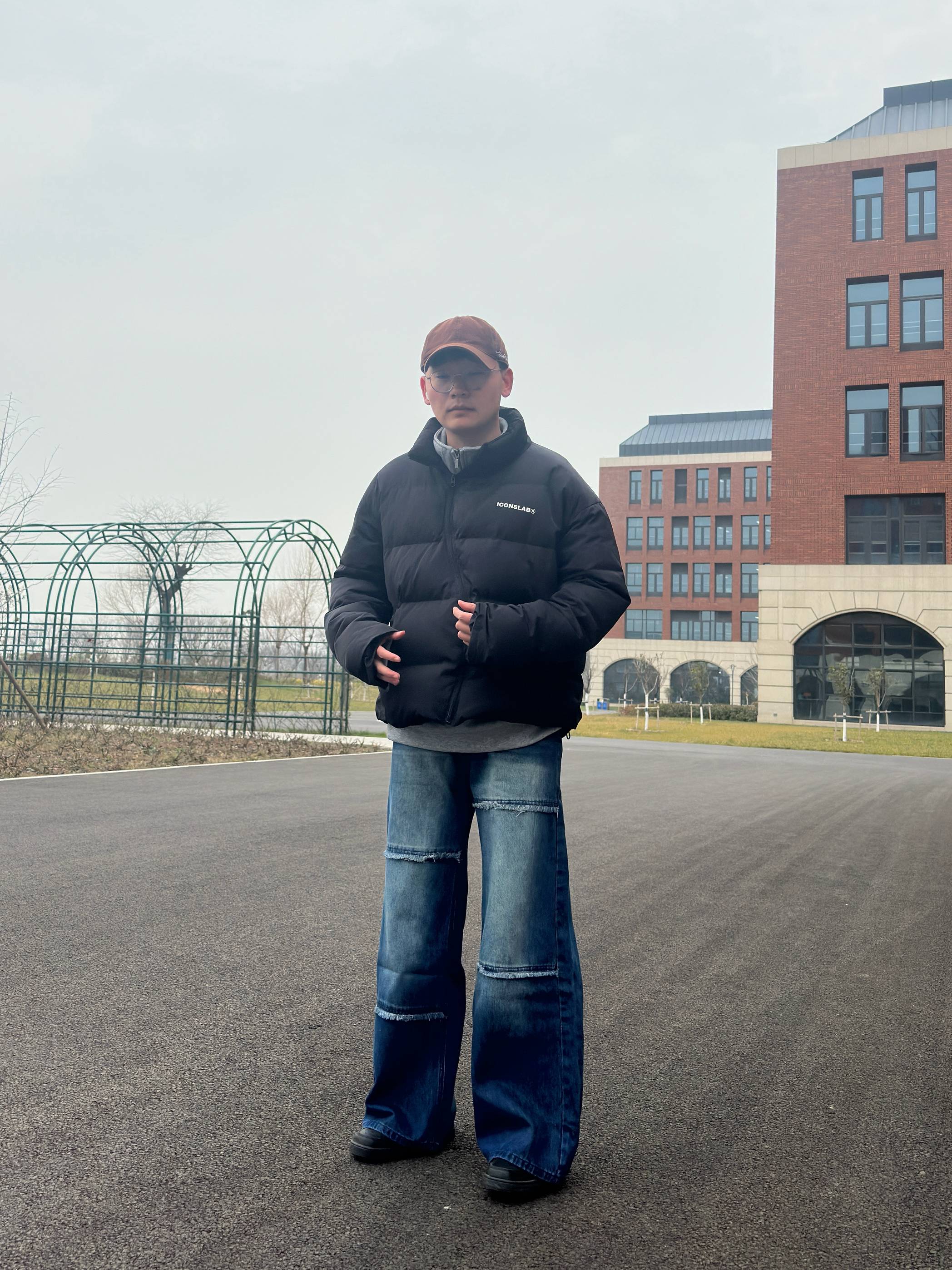 入冬后总在找保暖又不臃肿的穿搭 这次搭的这套真的踩在我的审美点上 黑色面包服拿到手就觉得质感很在线 内搭选了件浅灰色打底,还能中和一下黑色的沉闷 下装配的是做旧破缝阔腿牛仔裤 裤型是我喜欢的宽松款腿粗还是胯宽都能藏住 做旧和破缝设计的有复古感 搭配小技巧其实很简单,我选了焦糖色的棒球帽做点缀 和整体的黑、蓝、灰形成色彩对比 不会让全身的配色太单调 (小个子的朋友可以把裤脚稍微卷一点)