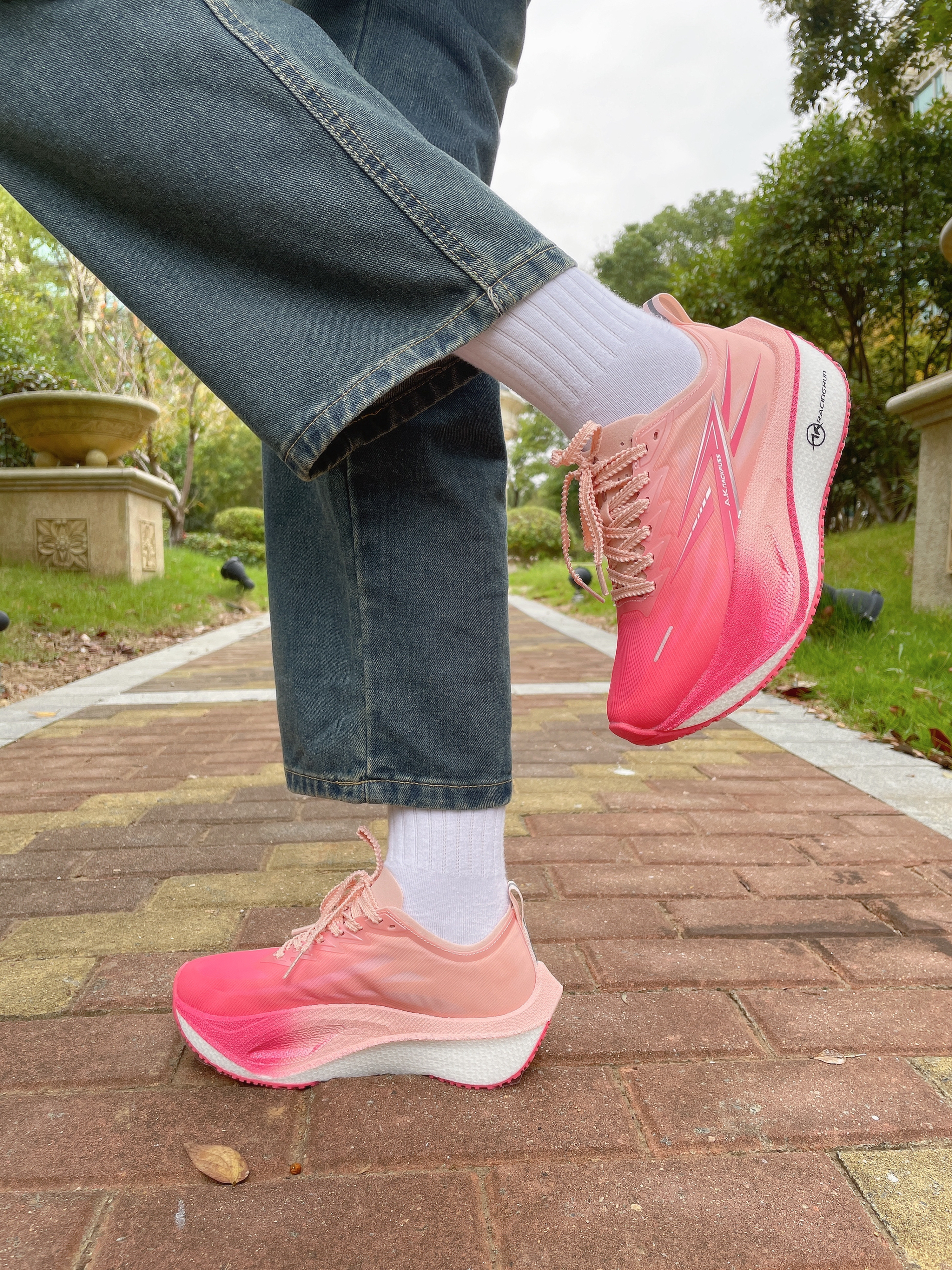 运动也要穿的漂漂酿酿的 今天穿的是一双桃红色渐变跑鞋 鞋面是那种柔乎乎的网纱 舒服透气穿着不硌脚 麦穗扁鞋带系紧了不会散开 跑起来很安心 中底的部分用料那是相当扎实 有我的三指那么宽哈 踩下去是那种软弹的脚感 法国品牌品质还是值得信赖的 又好看又好穿 跑步的动力瞬间拉满