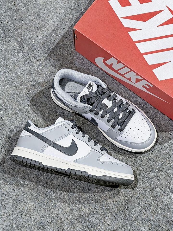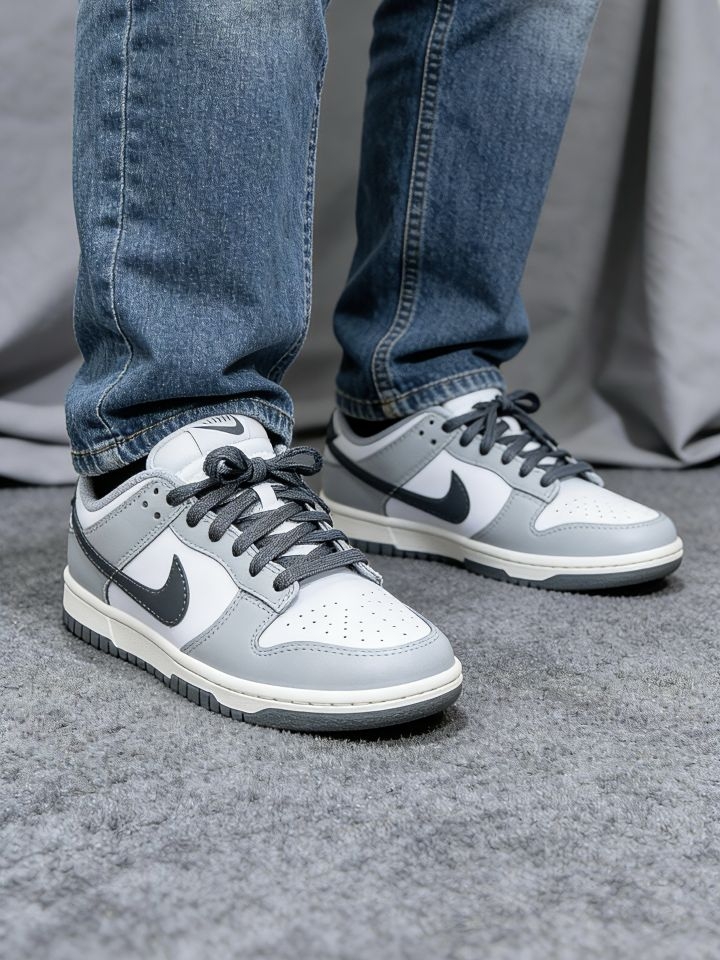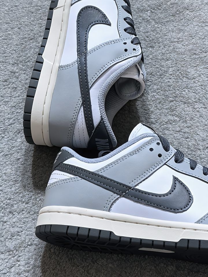 高级灰Dunk太戳我!质感直接拉满✨|||哈喽宝子们~今天挖到一双超爱的Nike Dunk白灰款👟 整体是高级的灰调配色,低调又显质感,不管是搭运动裤、休闲裤还是牛仔裤都超合适,日常通勤、出门逛街穿完全没压力~ 材质是软乎乎的合成革,上脚特别舒服,鞋面上的网孔设计透气性也在线,穿一整天都不会闷脚😌 小提醒:这双鞋型偏瘦,建议选大0.5码,上脚会更贴合舒适哦~ 喜欢简约百搭款的姐妹可以冲啦! #耐克...
