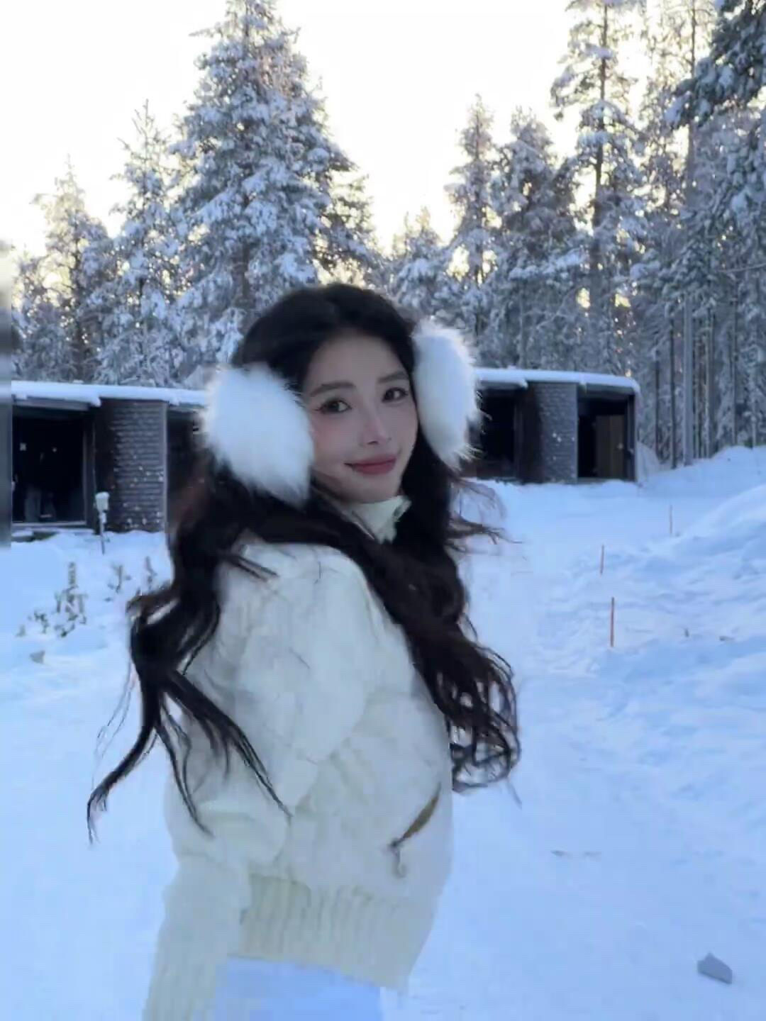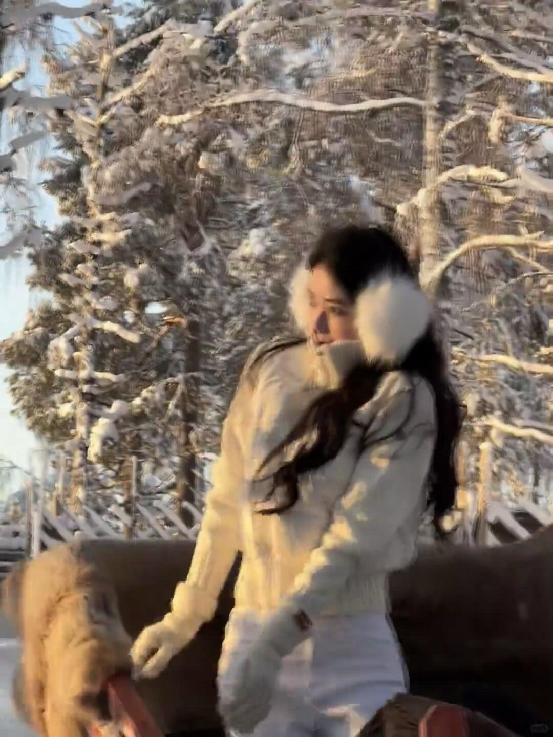 雪天穿奶白真的赢麻了!裹上软乎乎的毛绒耳罩,整个人都像被冬日温柔裹住~ 短款羽绒叠穿麻花毛衣,保暖又不会显得臃肿,微喇白裤和雪地融为一体,走在路上像踩在云朵里☁️ 阳光透过雪枝洒下来的时候,连头发丝都在泛着暖光,这大概就是冬天最治愈的打开方式吧~