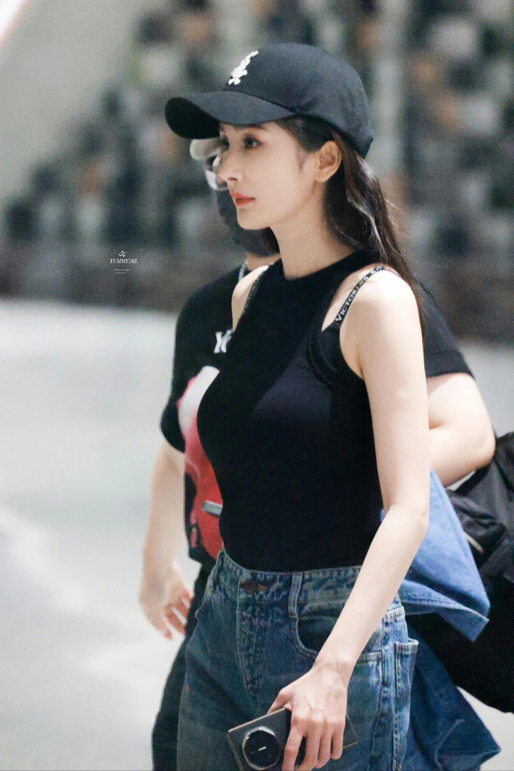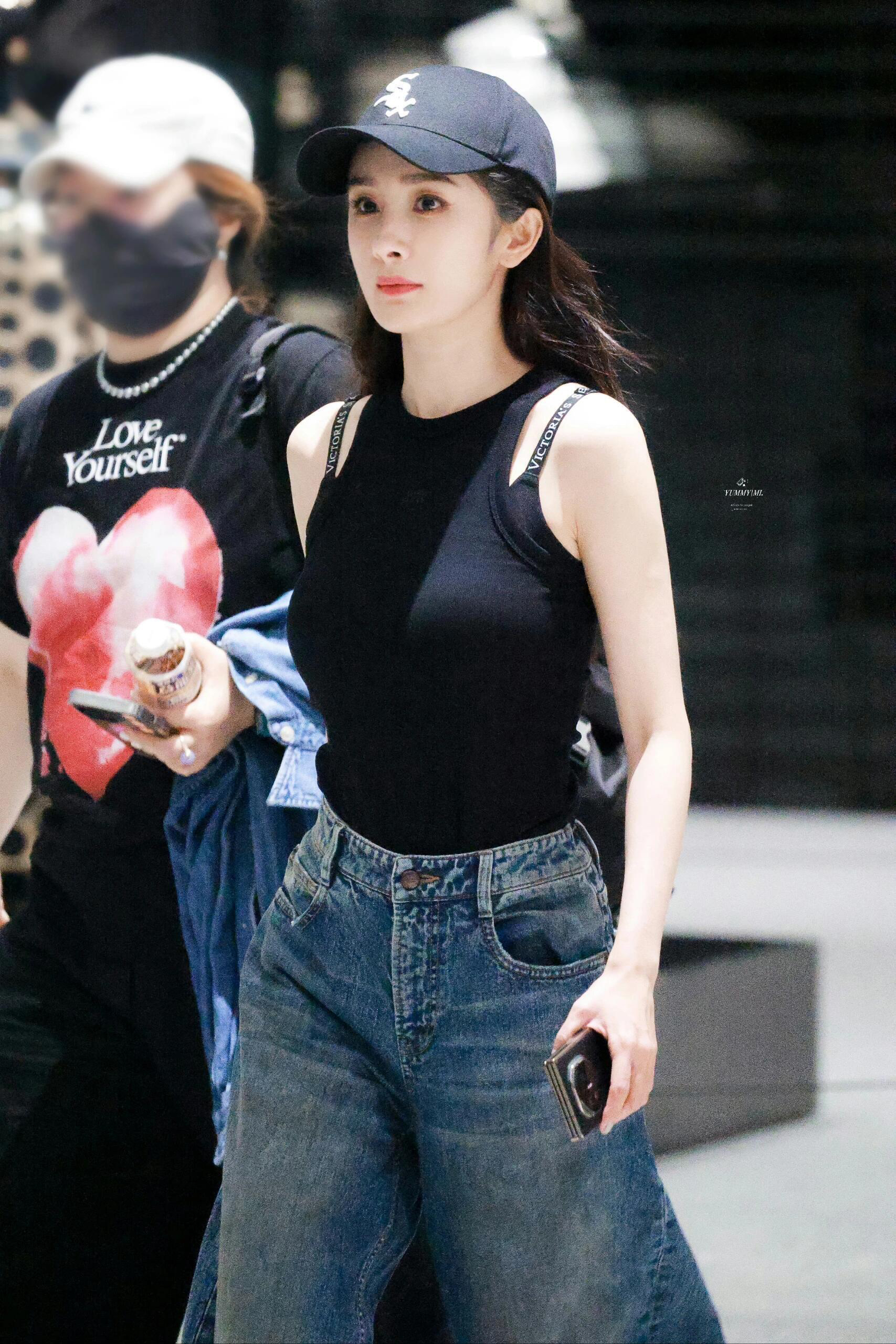 杨幂的机场look又出范本! • 黑色露肩背心(暗藏细肩带设计)+高腰阔腿牛仔裤,显瘦又显比例; • 配饰选MLB棒球帽,休闲感拉满;单品来自MLB(¥299)、Acne Studios(¥999)、维密(¥329),兼顾质感与日常; • 整套“基础款+小心机”的思路,普通人照搬也能穿好看