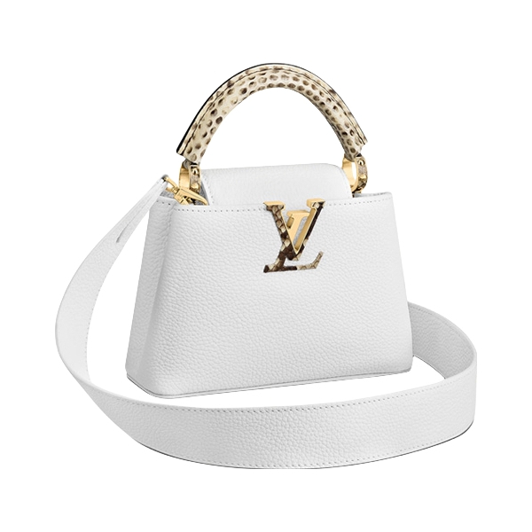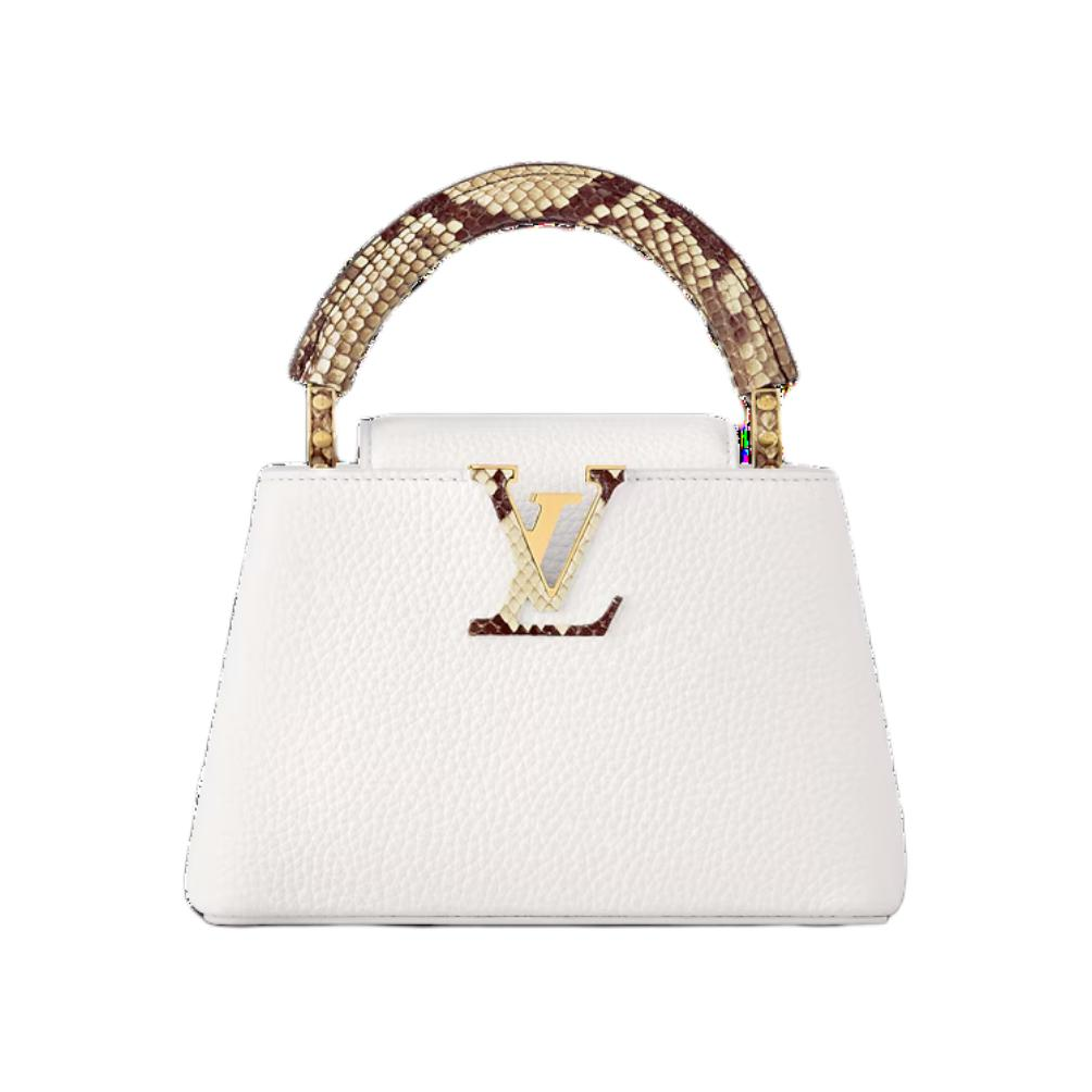 本篇笔记关联了Louis Vuitton Capucines 迷你 纯色可拆卸肩带蟒蛇皮饰边单肩斜挎手提包 糖果色/白色、Louis Vuitton/路易威登 Capucines 迷你 品牌标志可拆卸可调节肩带Taurillon皮革单肩手提包 白色等商品,为用户提供真实的使用体验和购买参考。