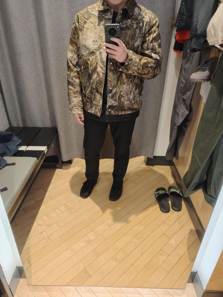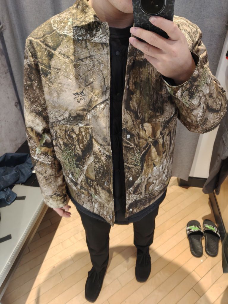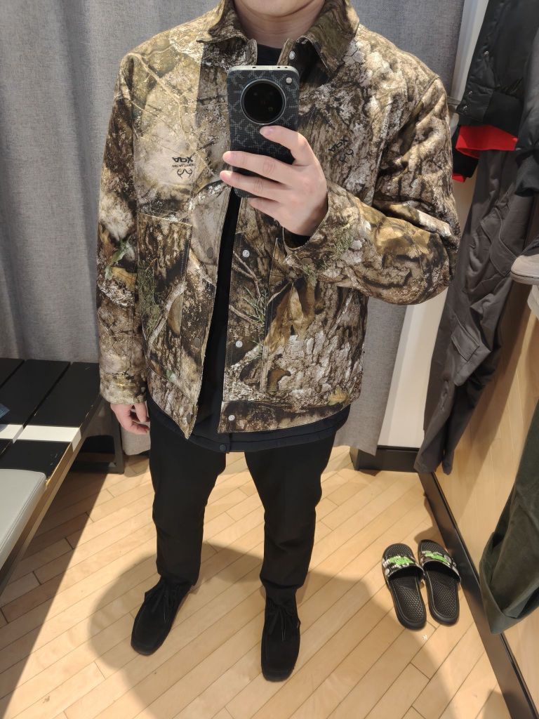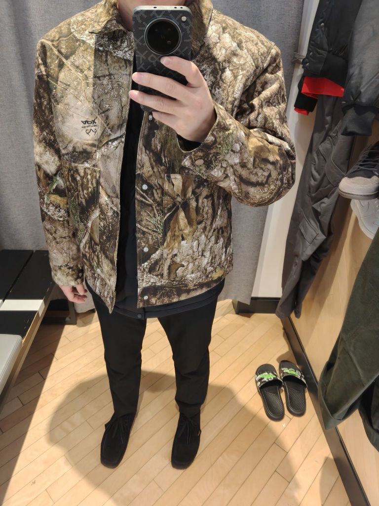 🦆橄榄迷彩太戳我! - 实物比图片还惊艳!橄榄绿+卡其迷彩印花,远看是低调的军风感,近看细节满满,树叶纹理清晰到像把森林穿在身上🌿 - 单排扣翻领设计,比连帽款更显利落,随便搭件黑T都有王嘉尔内味儿~ ✨细节控狂喜 - 袖口有隐藏式按扣,冷风钻不进去;胸前小logo刺绣低调又精致,不是满大街的大标款 - 长度到胯部,小个子也能驾驭,配束脚裤显腿长,搭直筒裤就是慵懒潮人范儿 💡真实试穿感受 上周降温...
