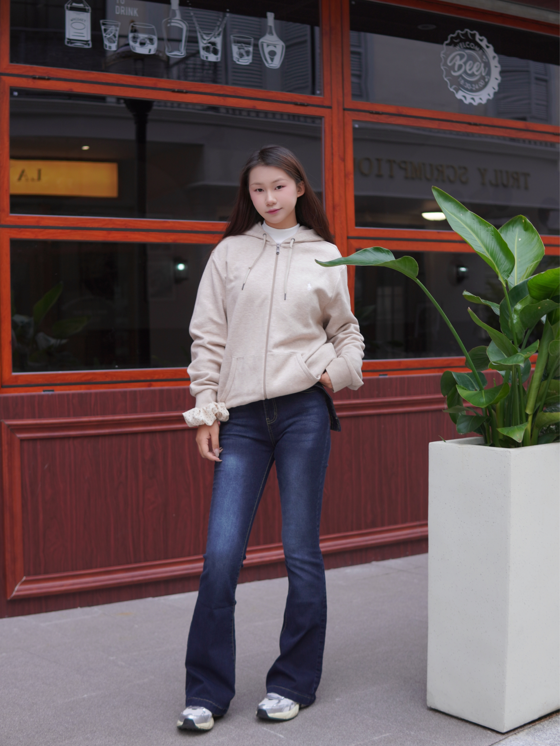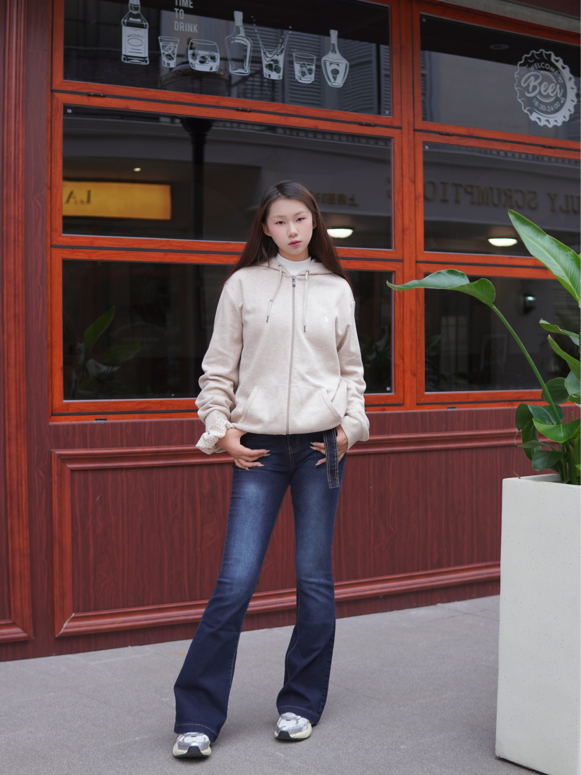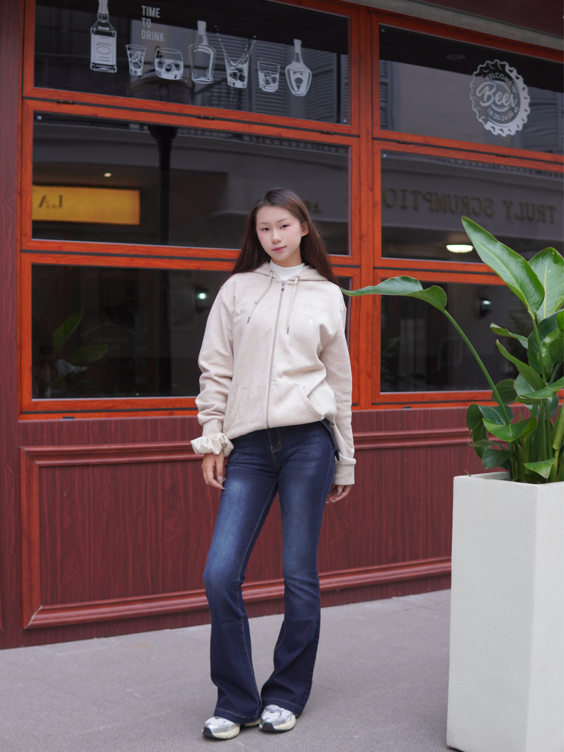 身高|体重:173/55 🧍♂️ 穿搭风格:日常通勤 👔 上衣:拉夫劳伦米色连帽卫衣 👖 下装:复古蓝微喇牛仔裤 👟 鞋子:nikev2k