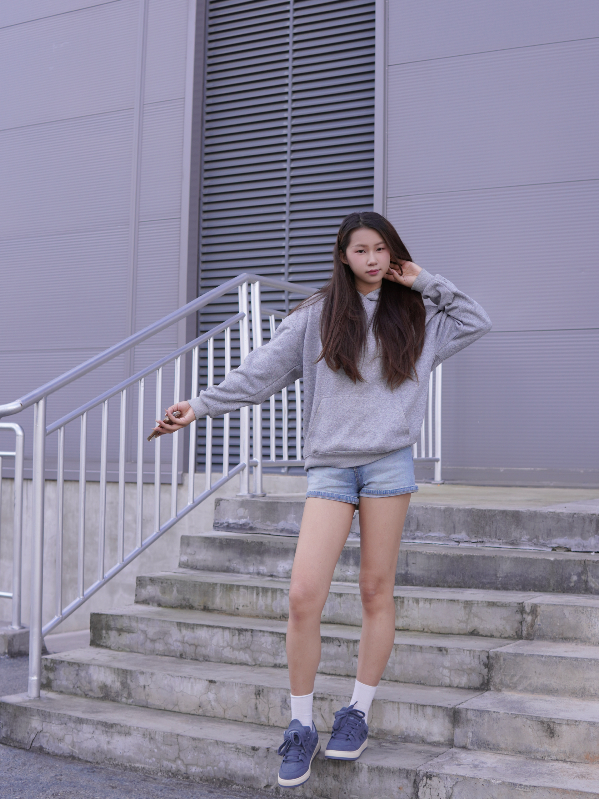 身高|体重:173/55 🧍♂️ 穿搭风格:美式街头风 👔 上衣:adidas连帽卫衣 👖 下装:浅色牛仔短裤 👟 鞋子:藏青色运动板鞋 🎒