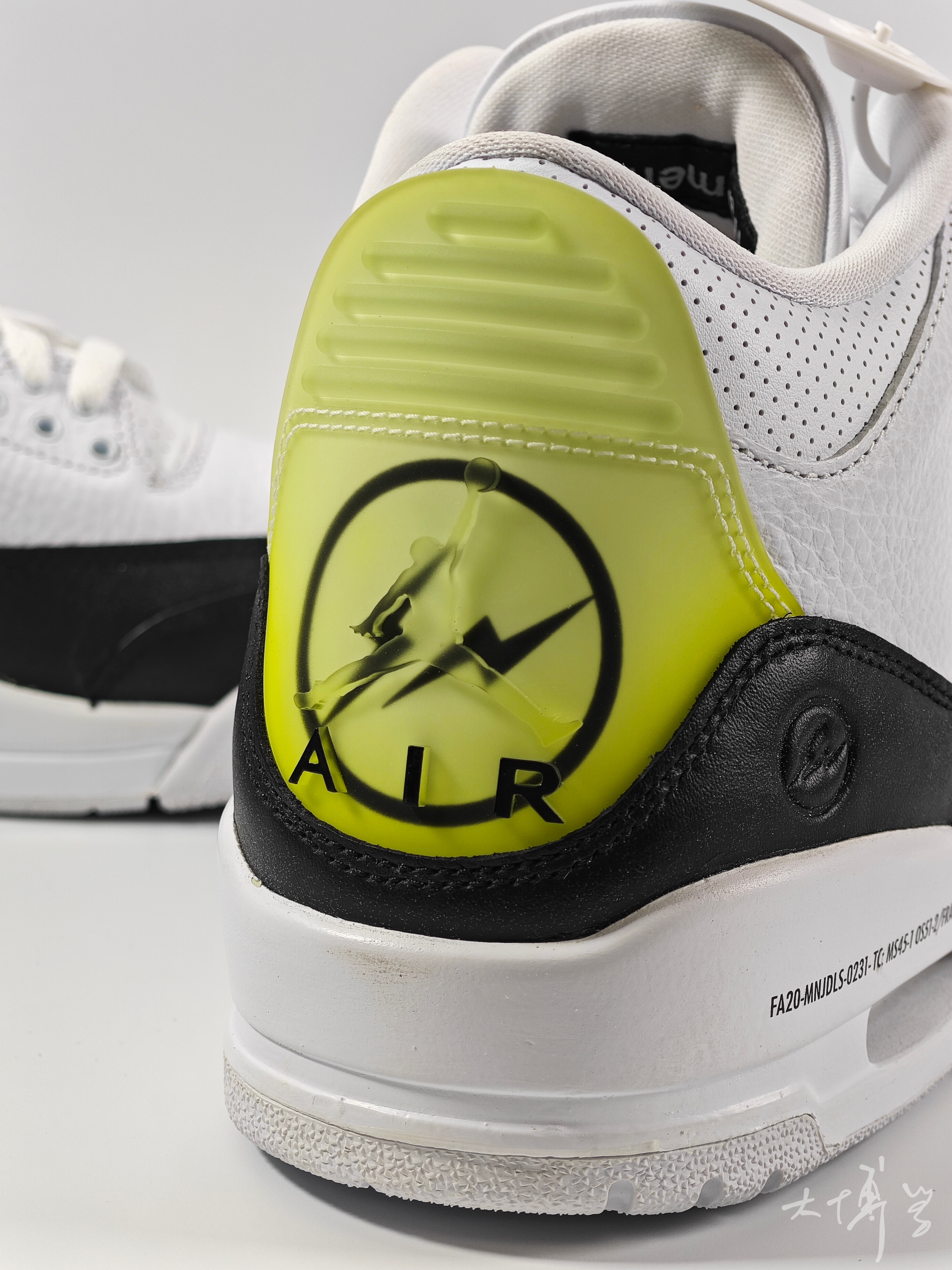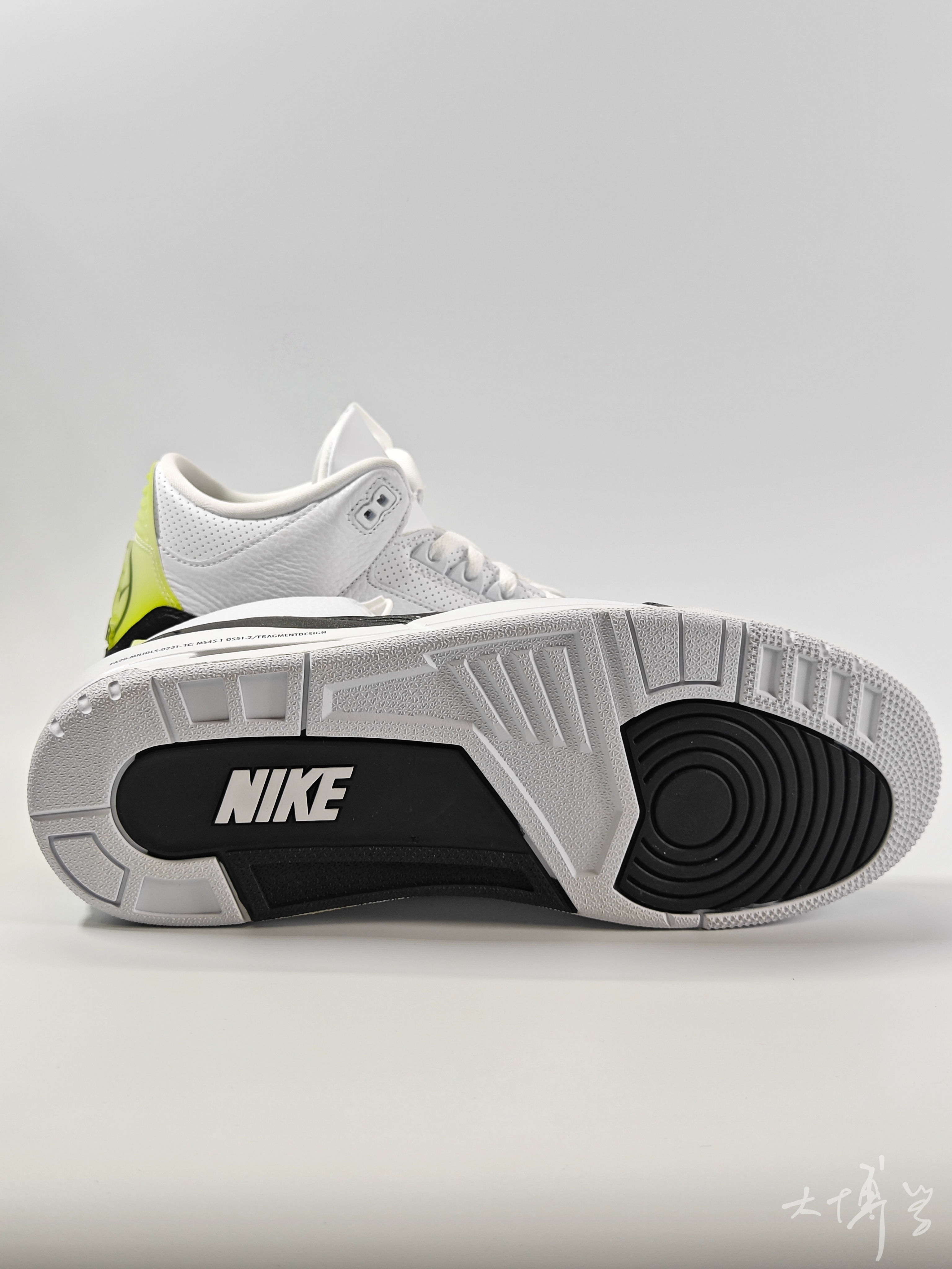 一双配色简单的AJ3 起初只有黑白双色 慢慢的,黄绿色的后跟开始显现 双闪电logo和jumpman logo重叠的后跟TPU 算是这款大闪电联名AJ3的点睛之笔 对比我心中的理想配色 这双少了一些蓝色