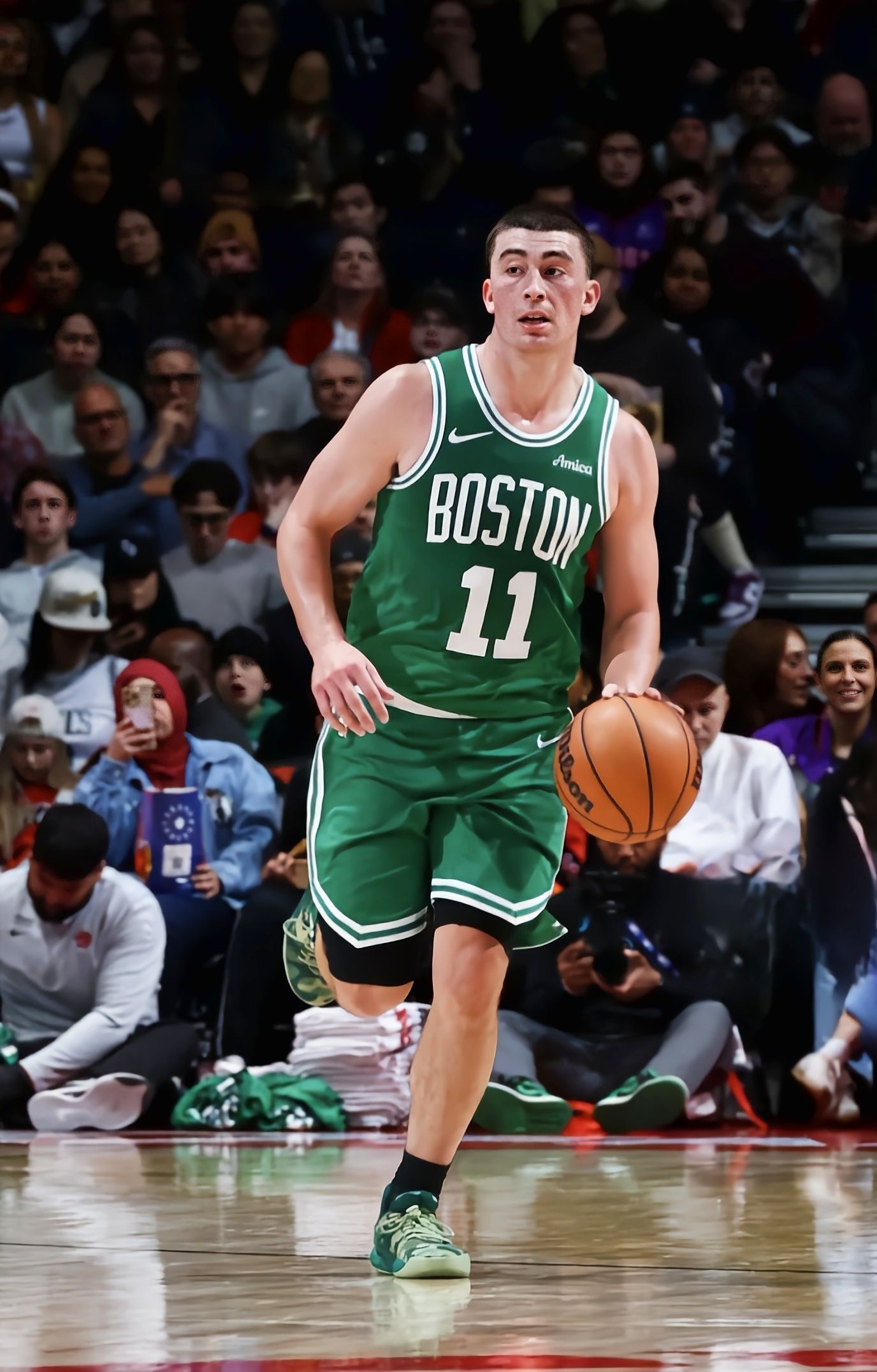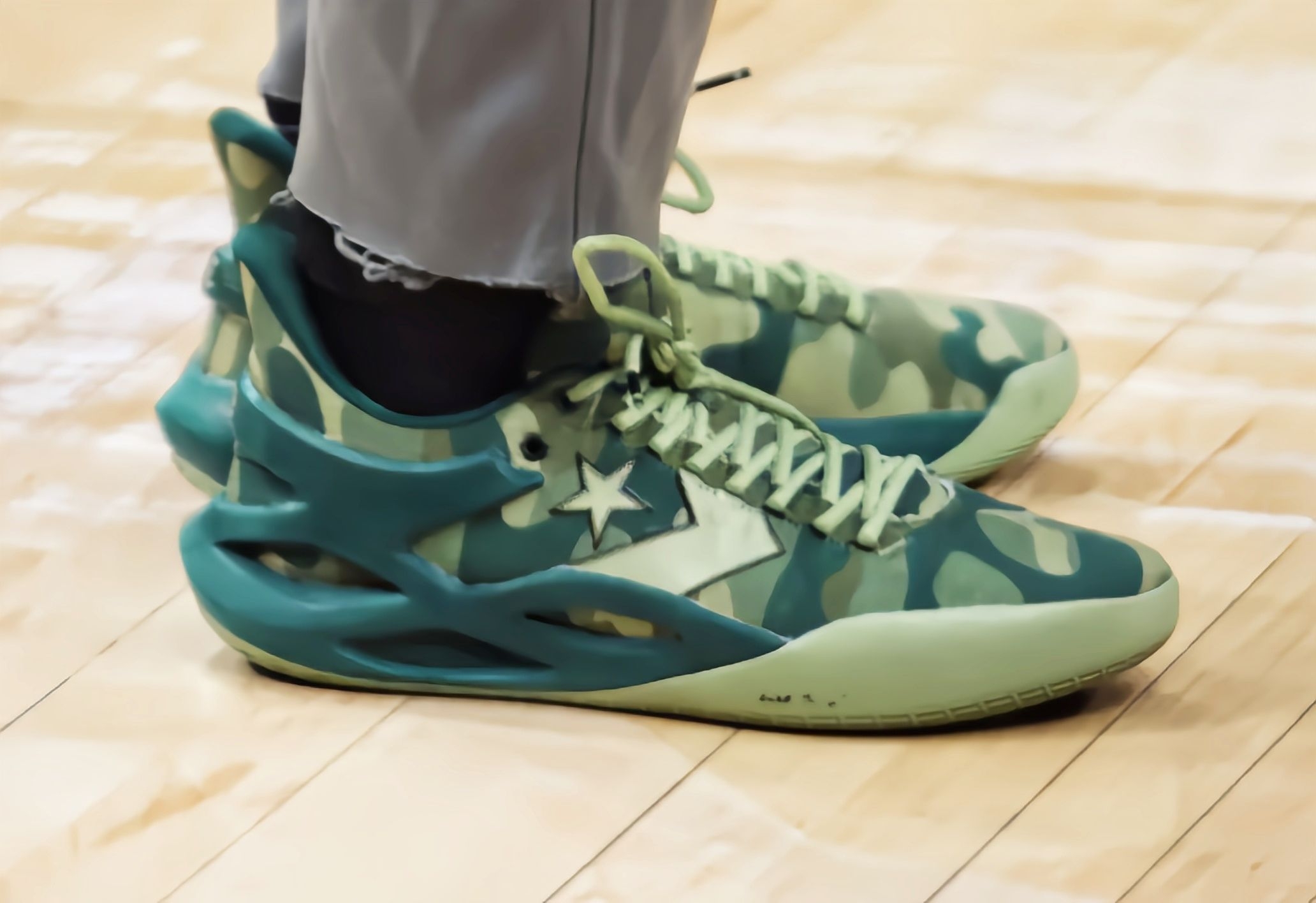 绿凯的比赛,一眼就盯上了普里查德脚上这双球员版All-Star BB Trilliant,凯尔特人格调的迷彩配色也太戳我了! 和市售版比,球员版的细节质感完全不是一个层级,鞋面迷彩的绿调是定制款,鞋身的星标和镂空骨架设计在赛场灯光下特别亮眼,而且球员版的鞋楦明显更贴合脚型,想来是为他的赛场移动专门调校过的,看他今天突破、传球时的脚步,这双鞋的支撑感应该拉满了。 说回比赛本身,普里查德今天替...